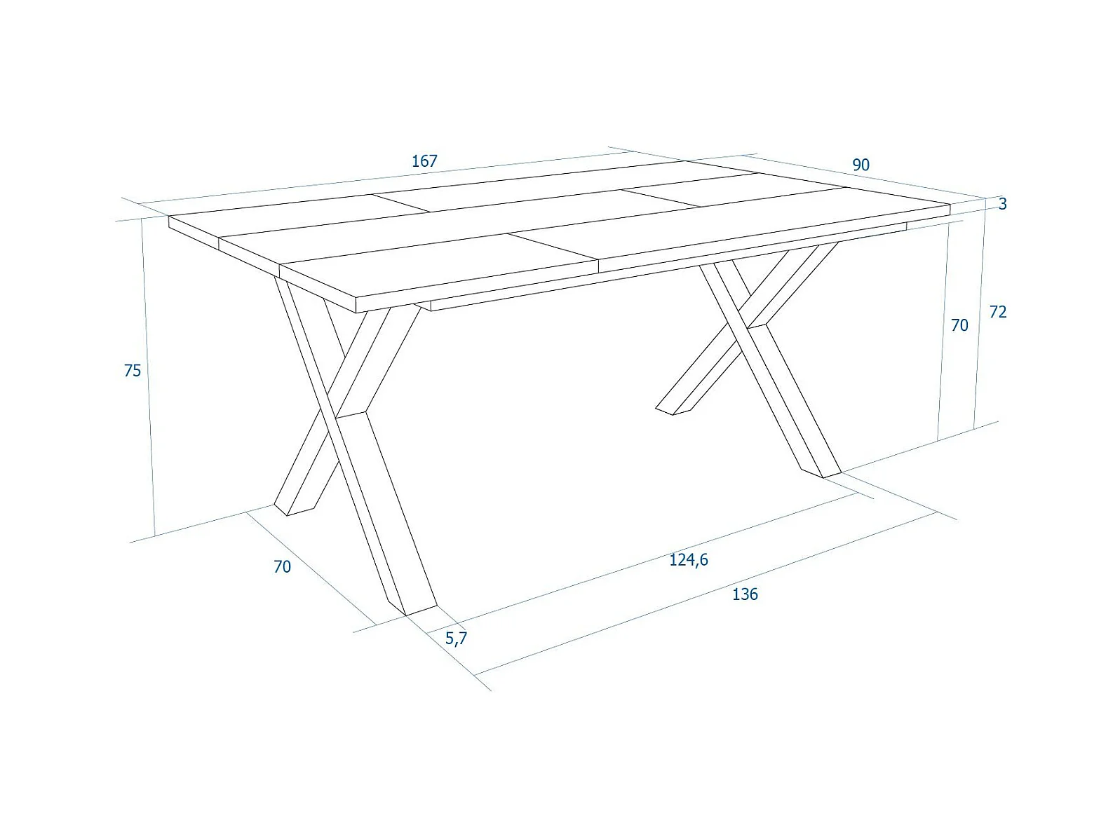 Table à manger, 167x90x75cm, Pour 8 personnes, Pieds en bois, Chêne