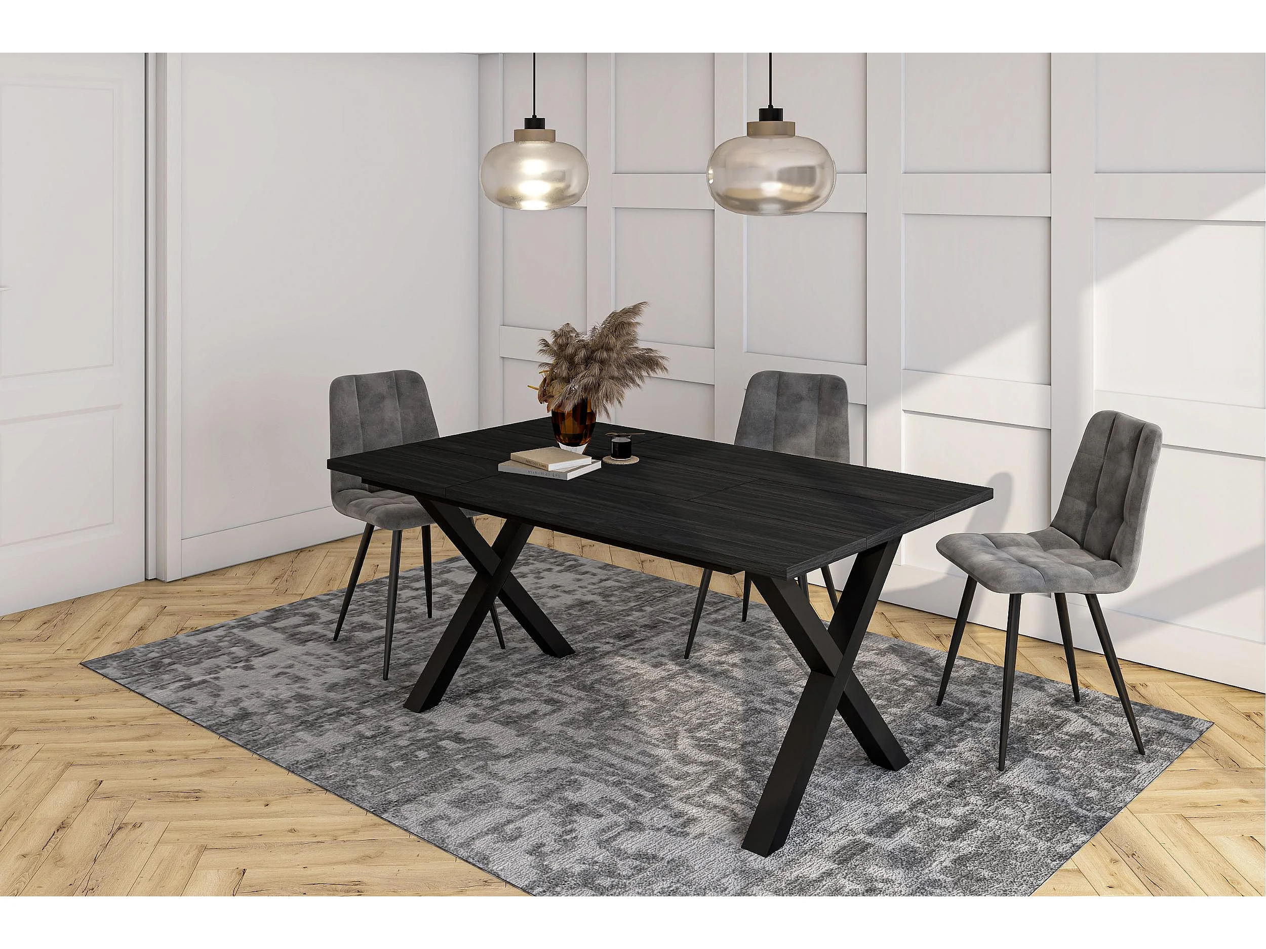 Table à manger, 167x90x74cm, Pour 8 personnes, Meubles de Salon, Noir