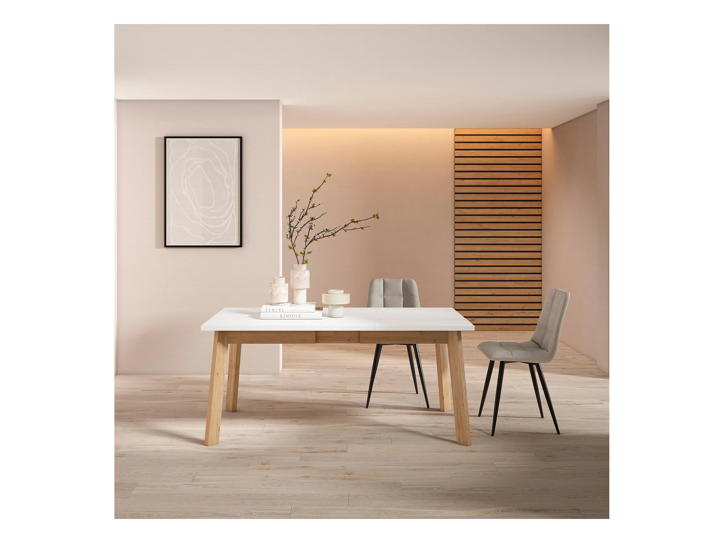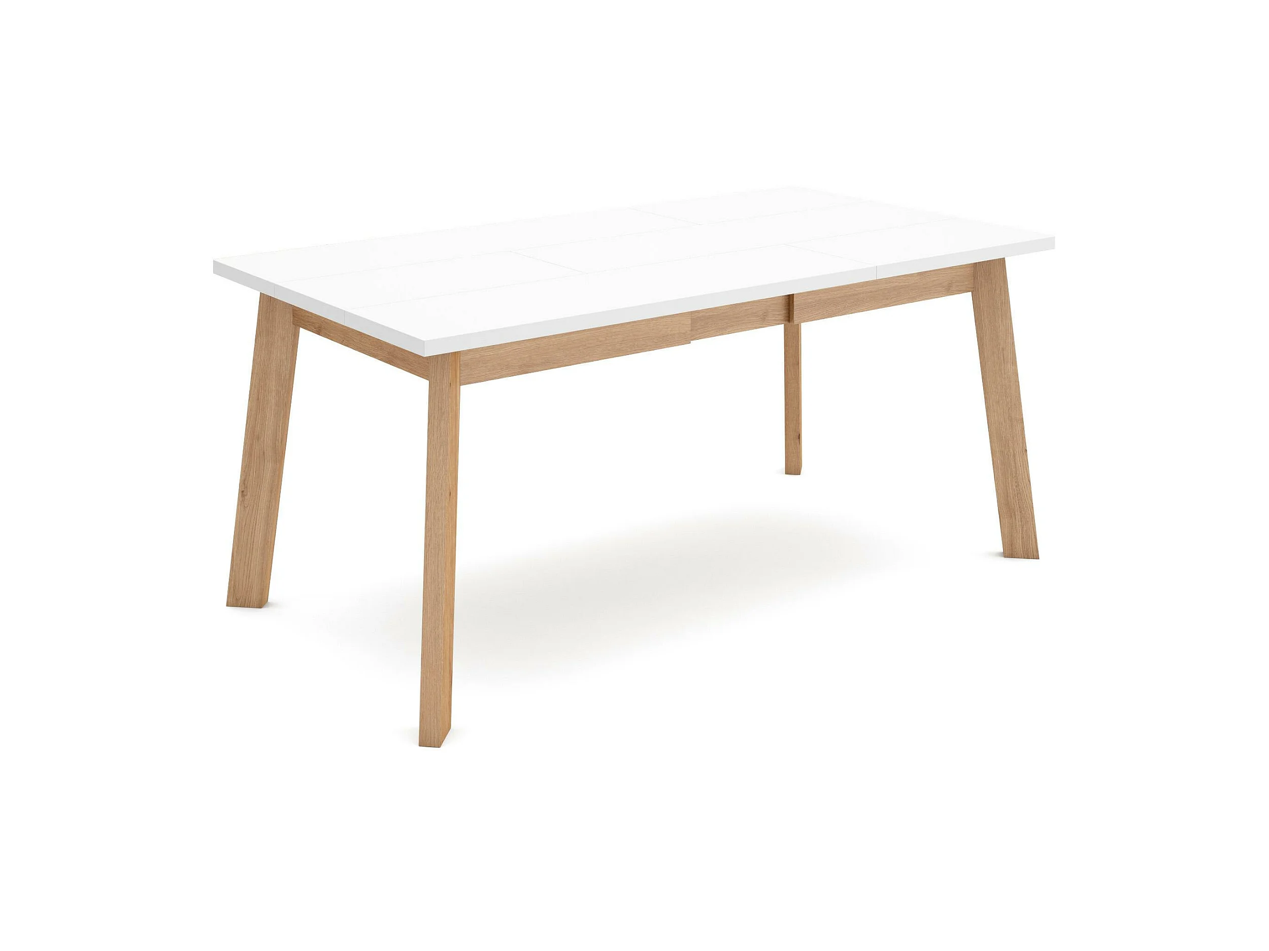 Table à manger, 167x90x75cm, Pour 8 personnes, Pieds en bois, Blanc