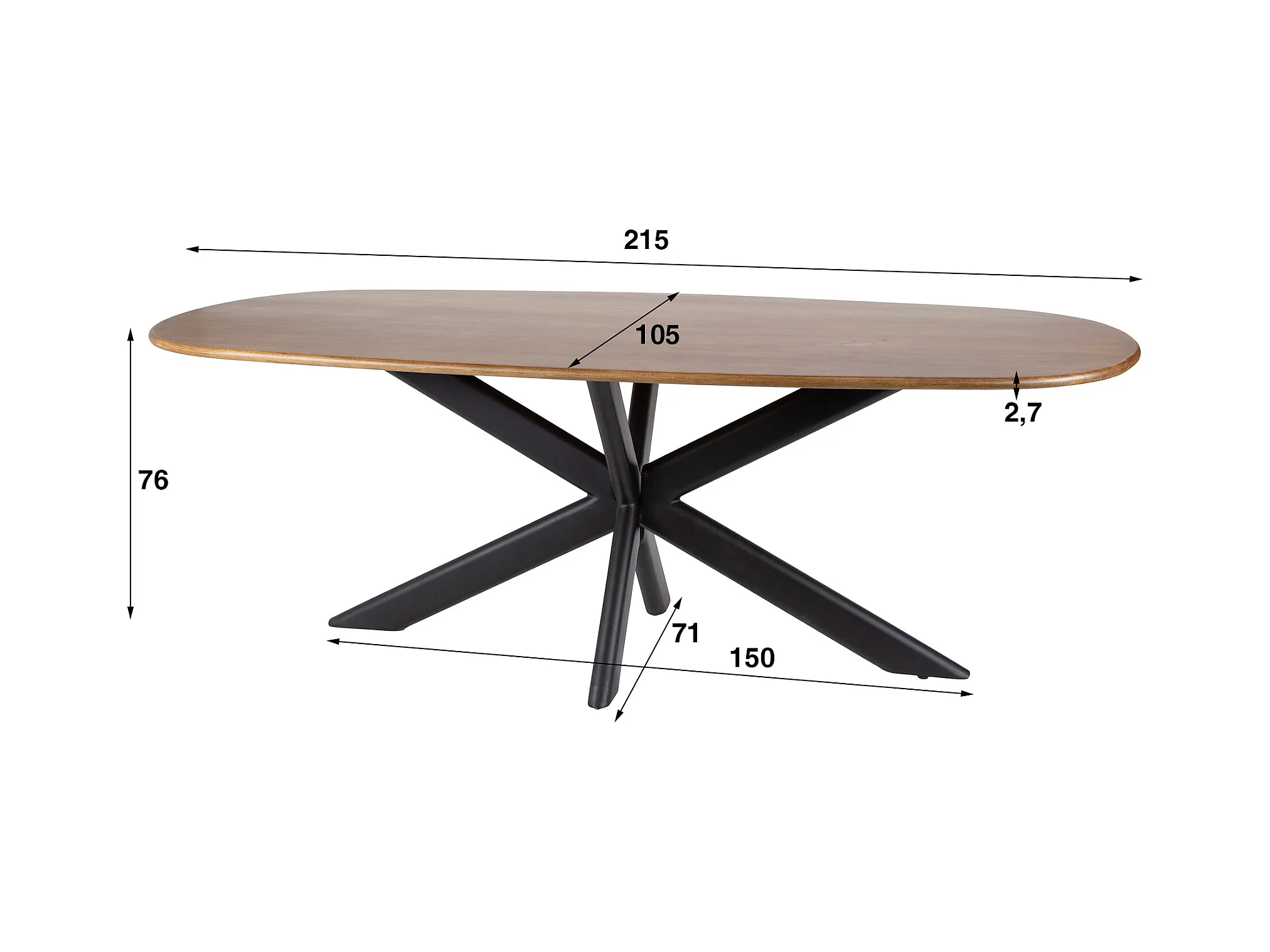 Table à manger James - Naturel - Bois de manguier - 210 cm - Ovale