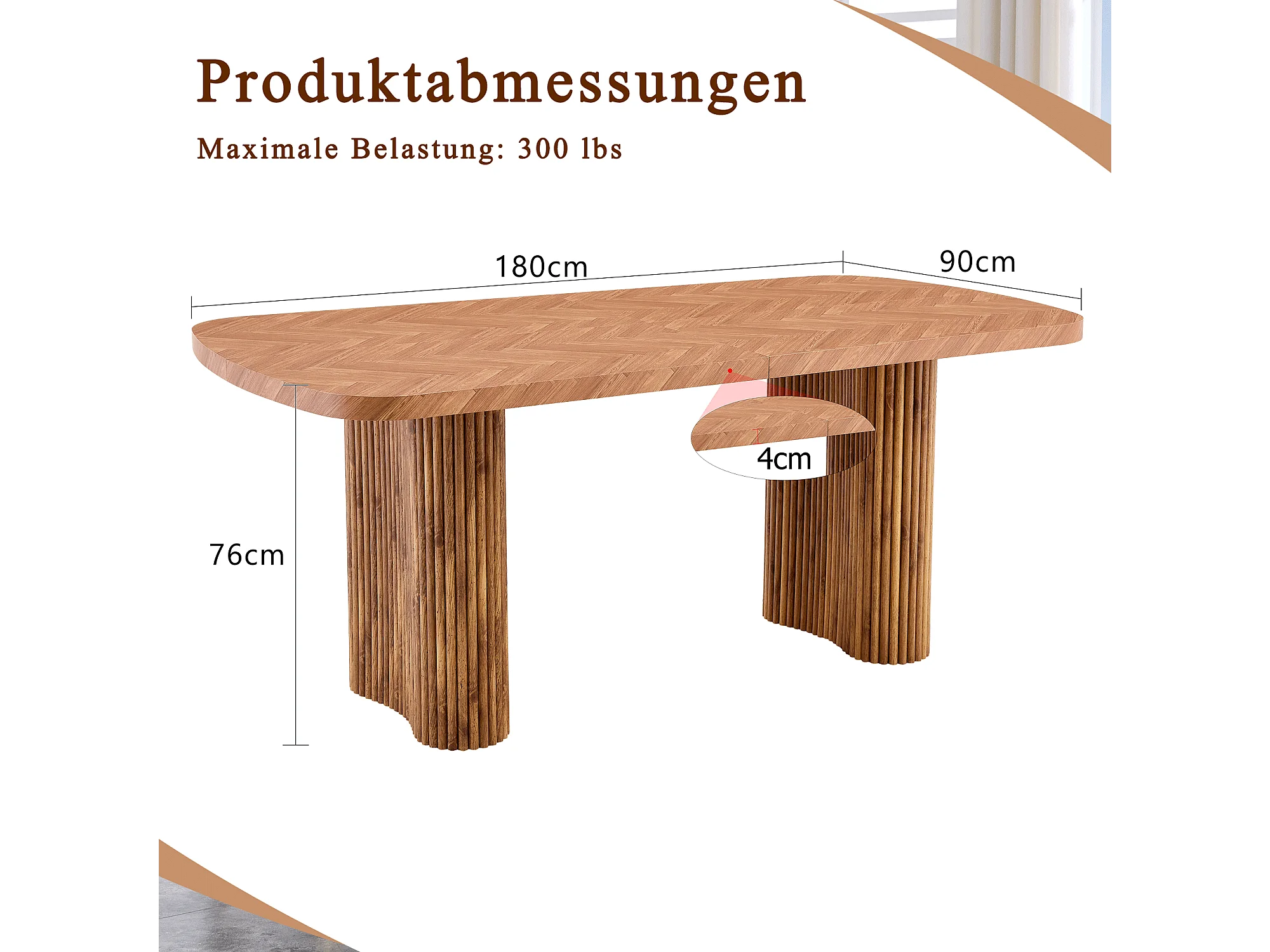 Table à manger 180x90cm pour 4 à 6 personnes - Plateau texturé - Couleur bois