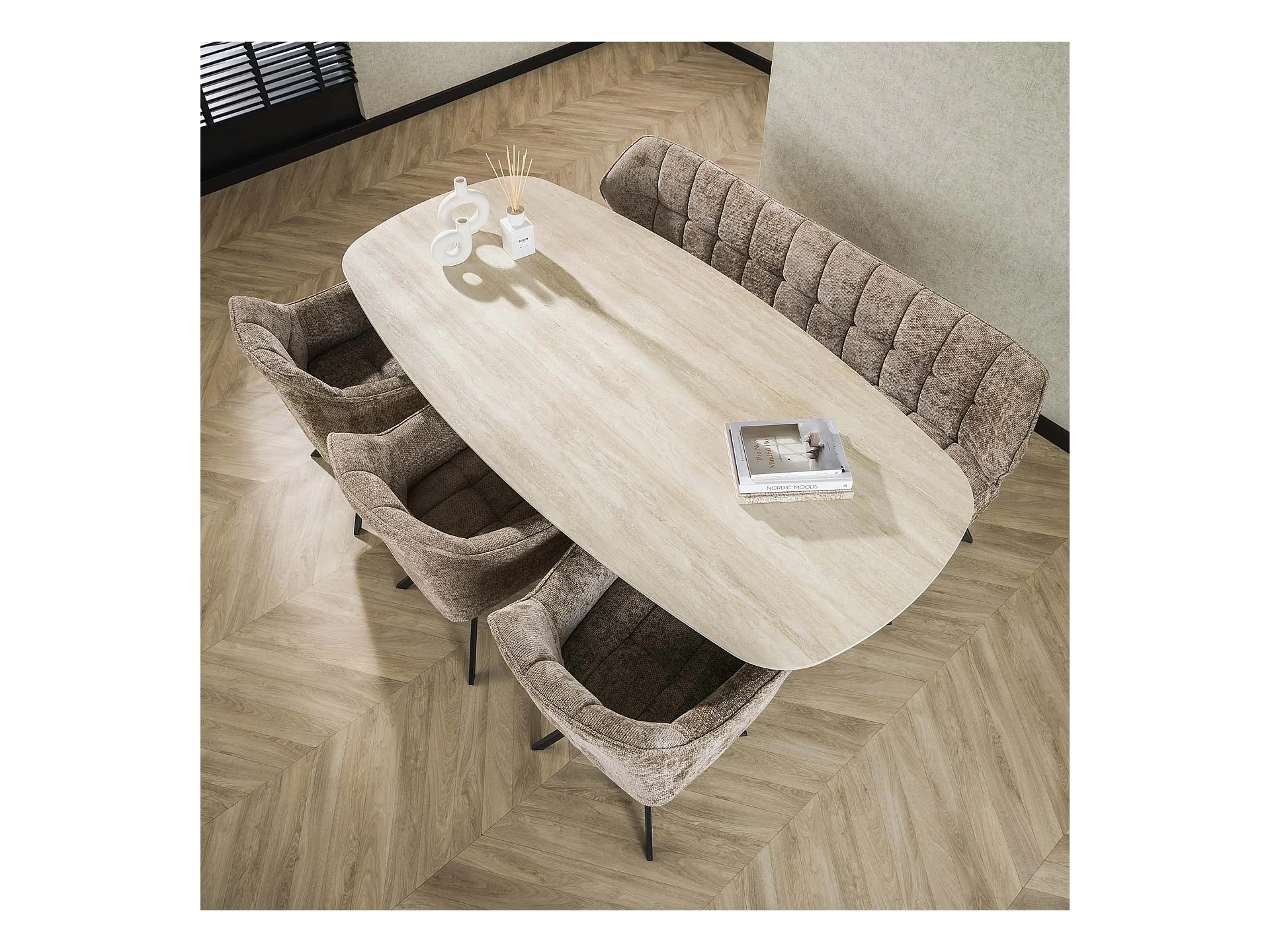 Table à manger 180 cm Ovale Danoise Romano - Travertin 3D Céramique