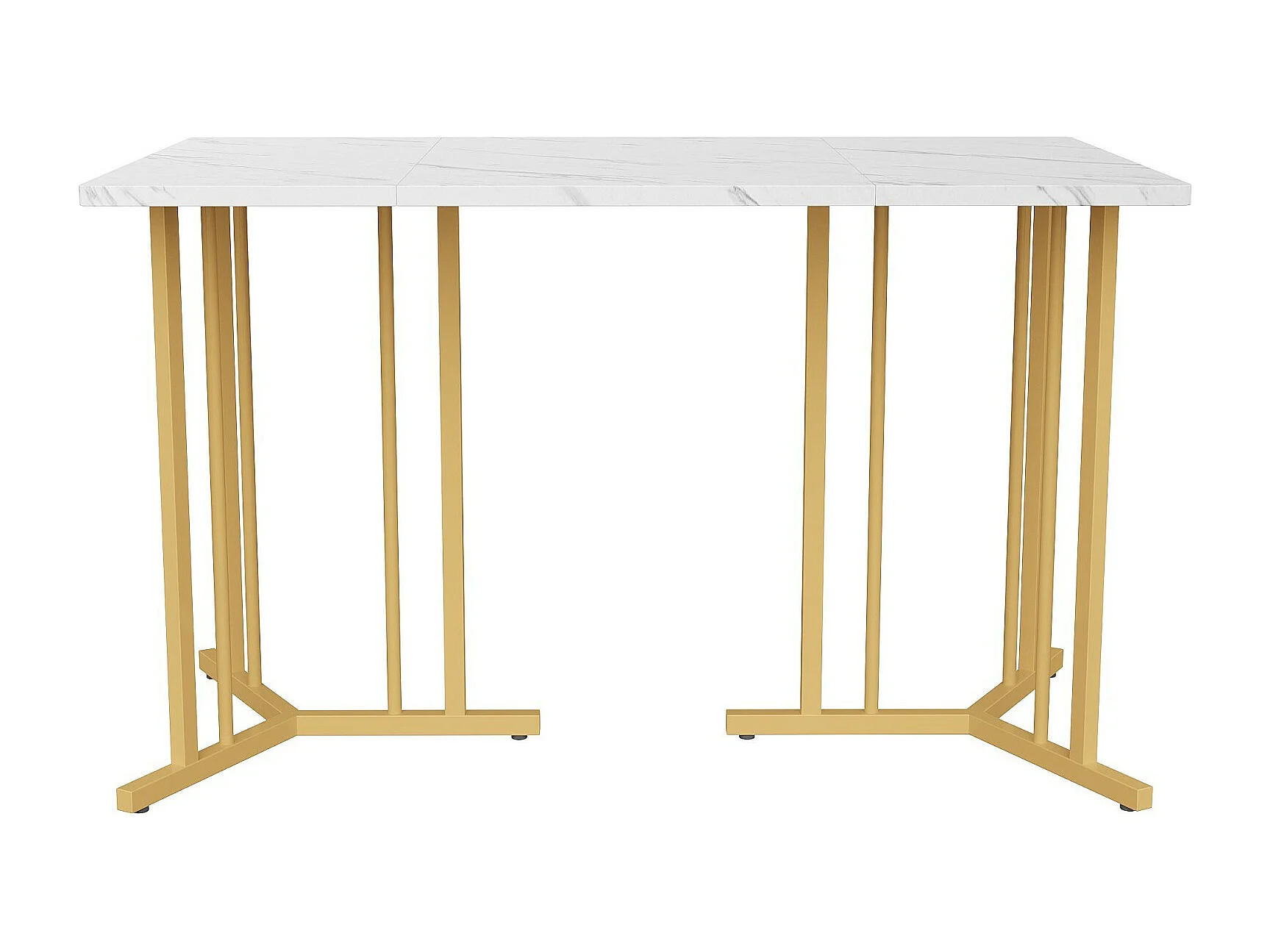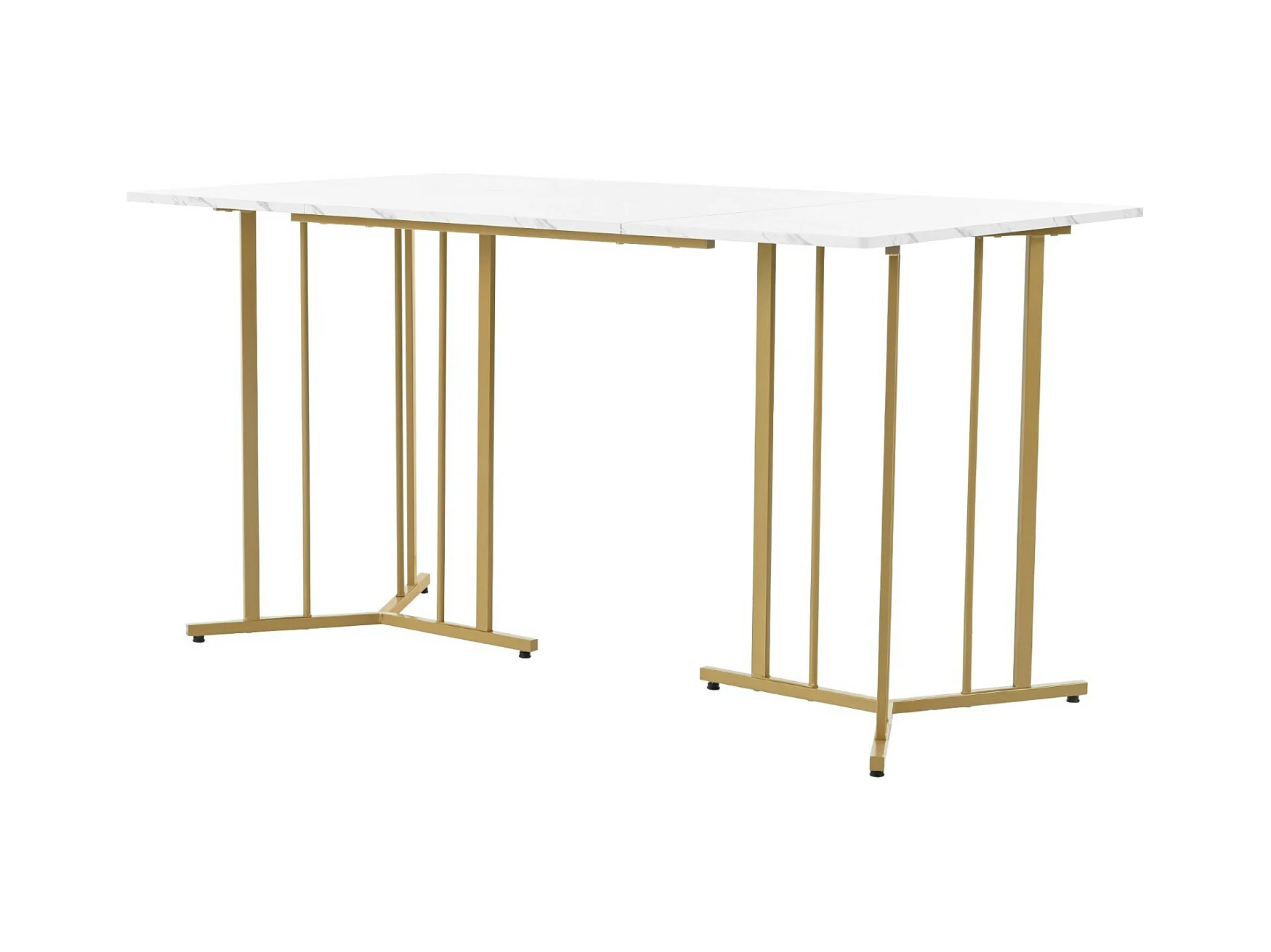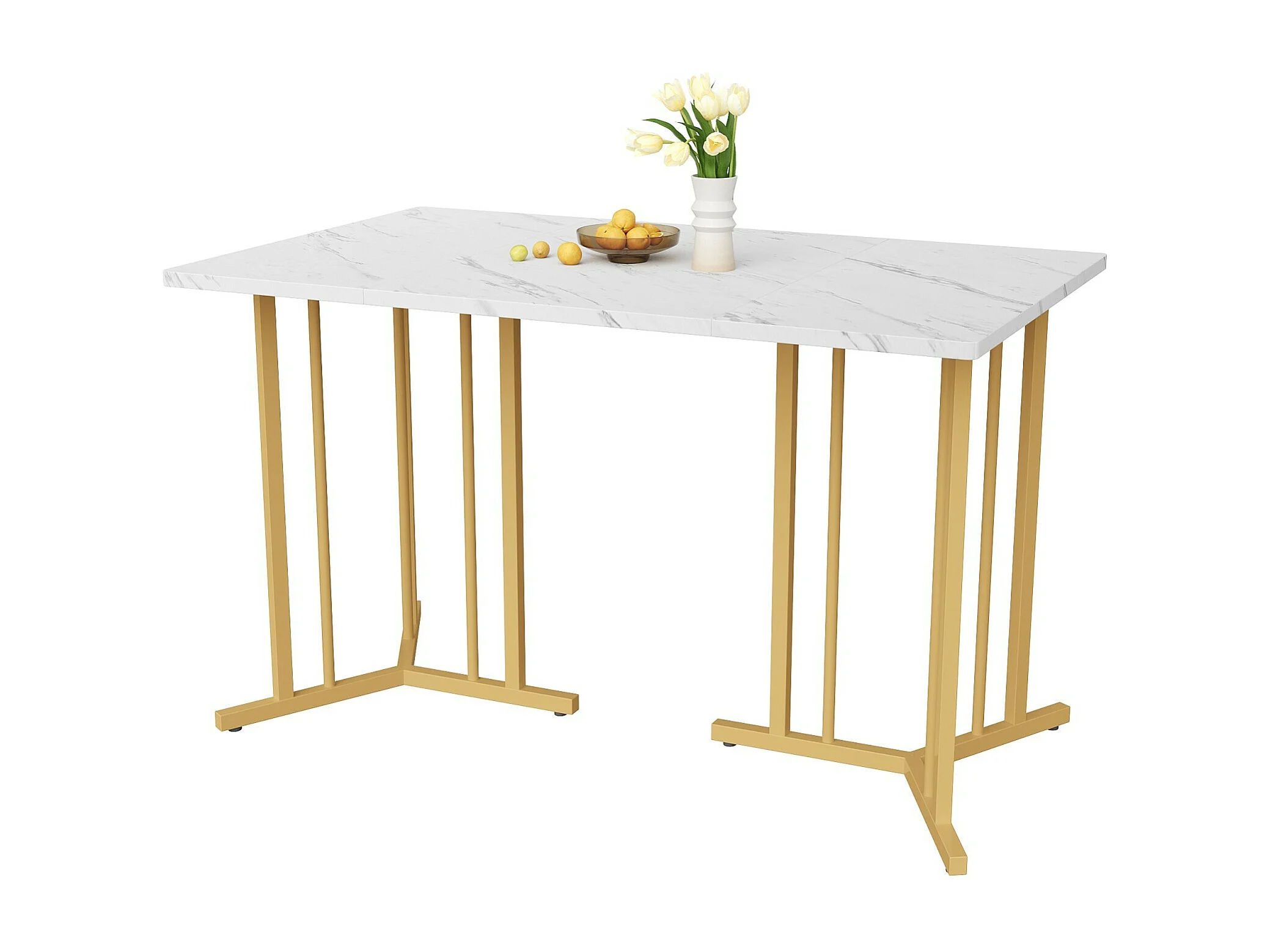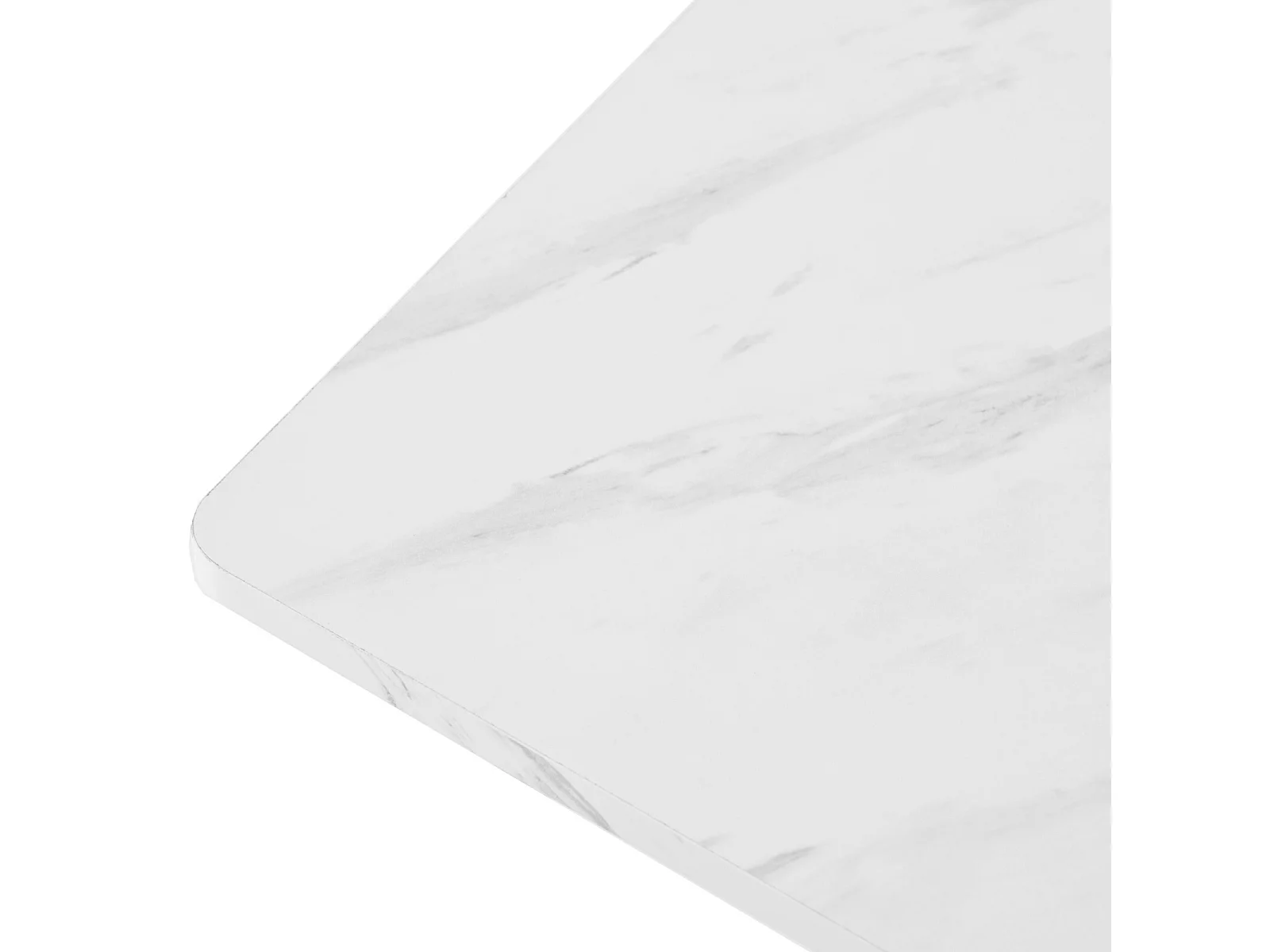 Table à manger 4 personnes en MDF et métal, avec pieds réglables, motif en marbre, 140x80x75cm, Blanc