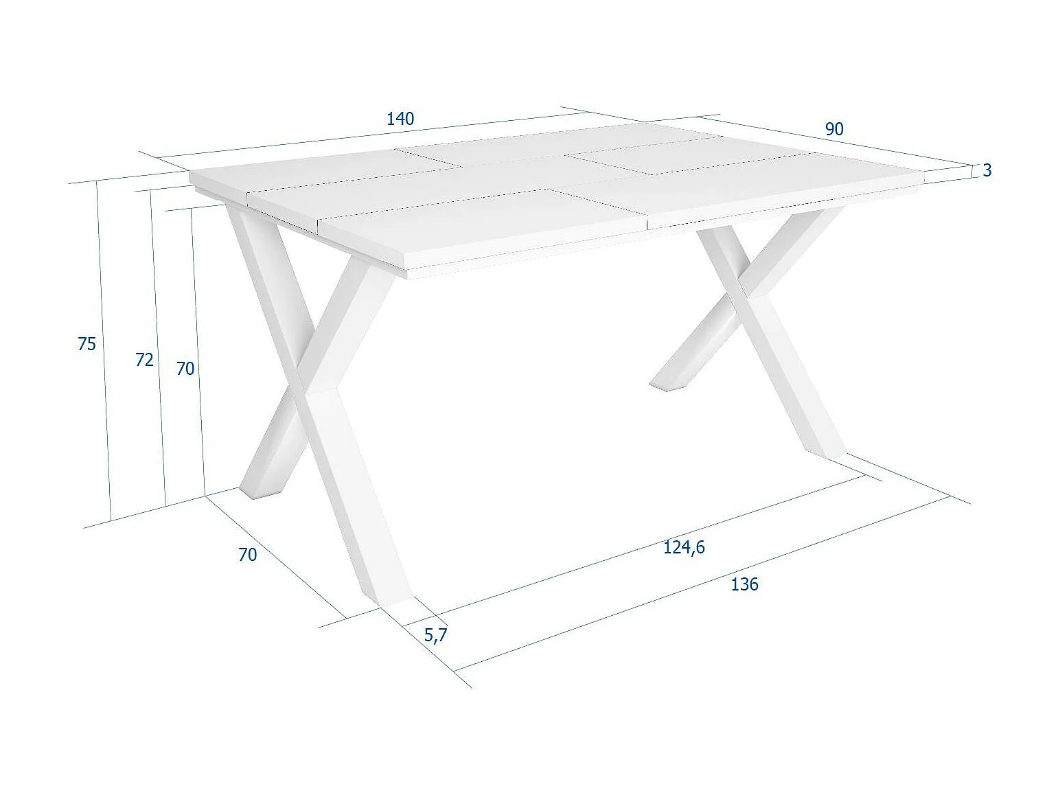 Table à manger, 6 personnes, 140x90x75cm, Robuste et stable grâce à sa structure et aux pieds solides, Blanc, Style industriel