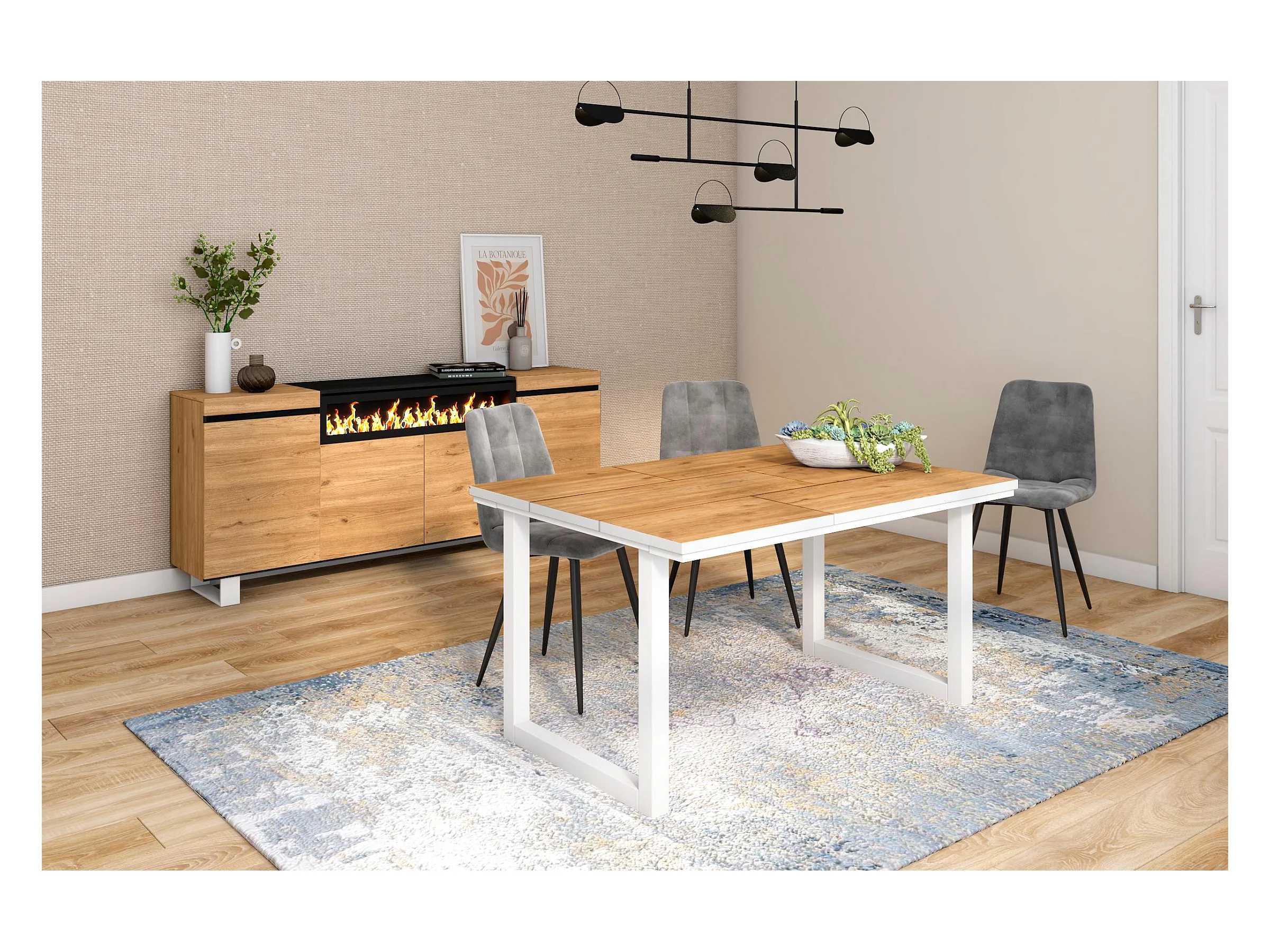 Table à manger, 6 personnes, 140, Robust, structure stable, pieds solides, Chêne et blanc
