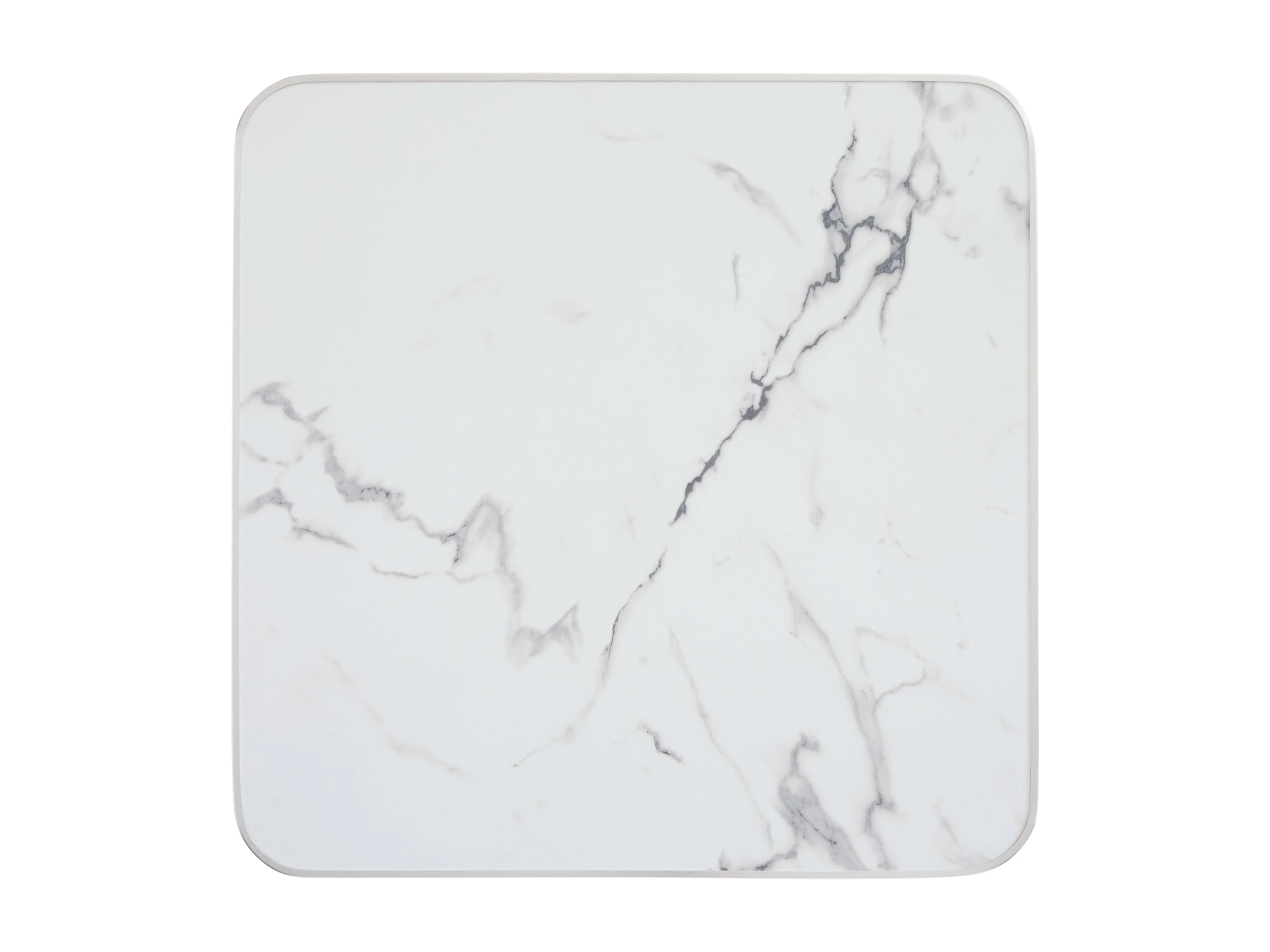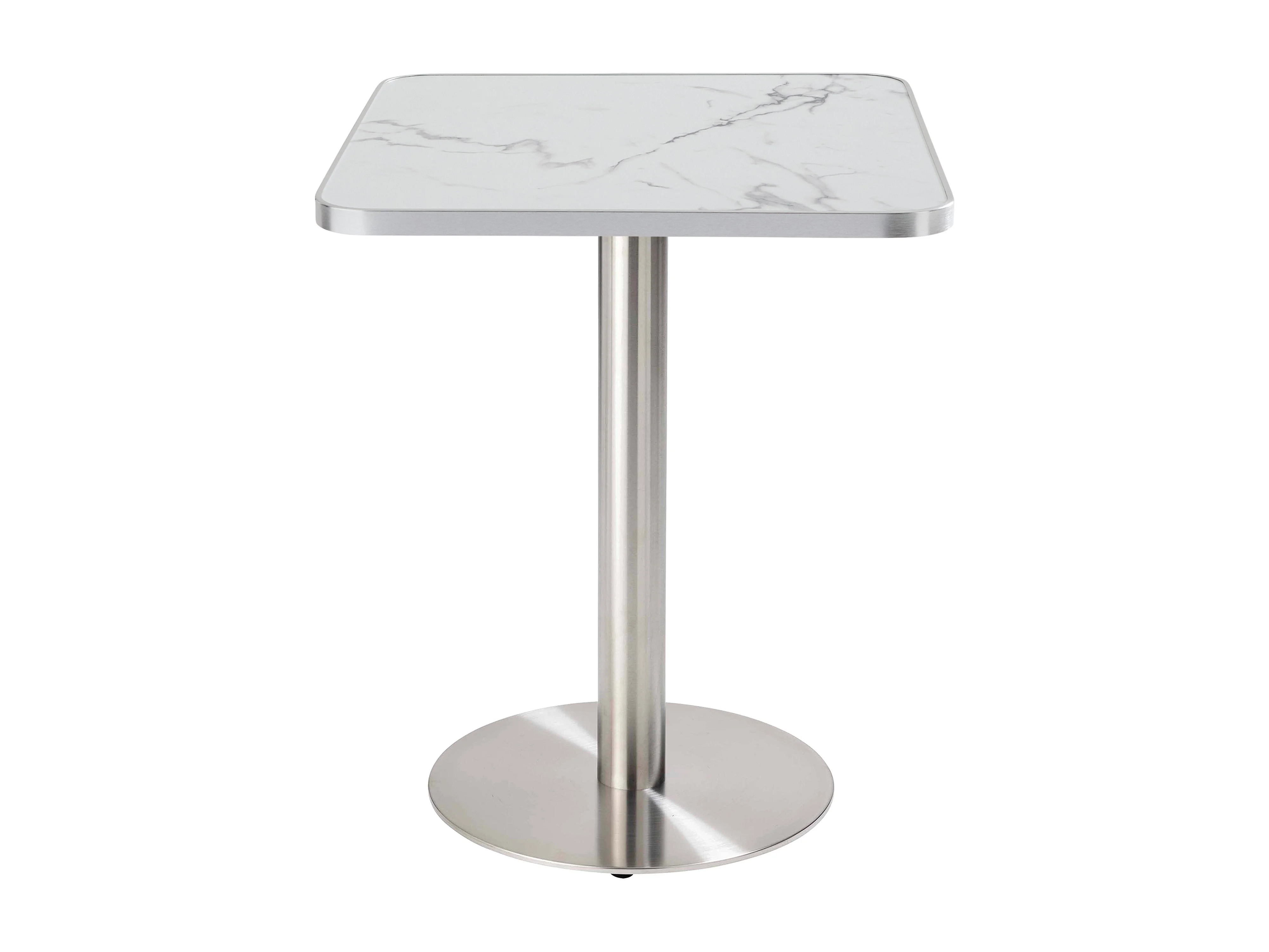 Table à manger 60 x 60cm pied argent et revêtement marbre blanc/argent