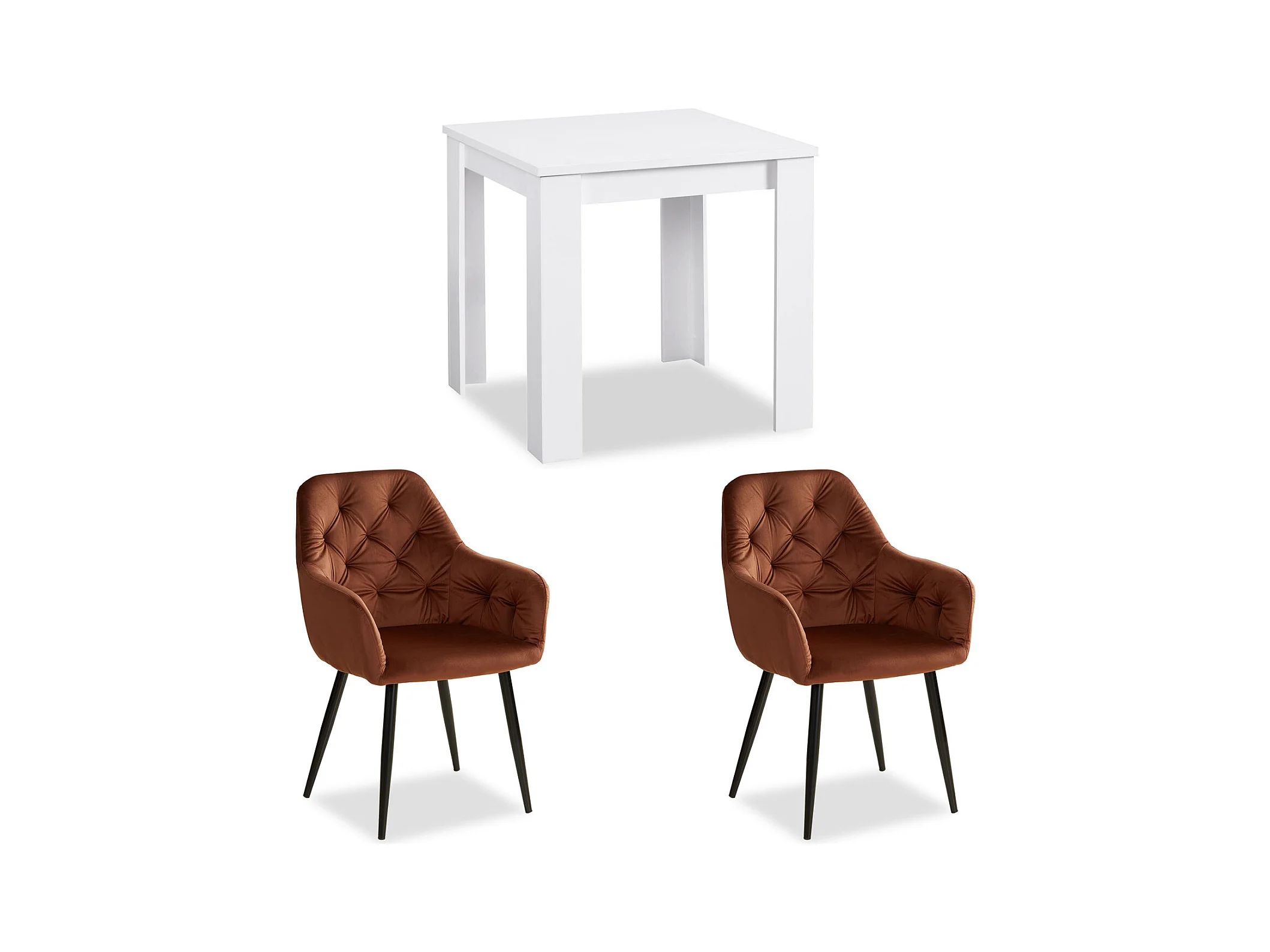 Table à Manger 80x80 cm blanche avec Chaises de Salle à Manger en Velours marron