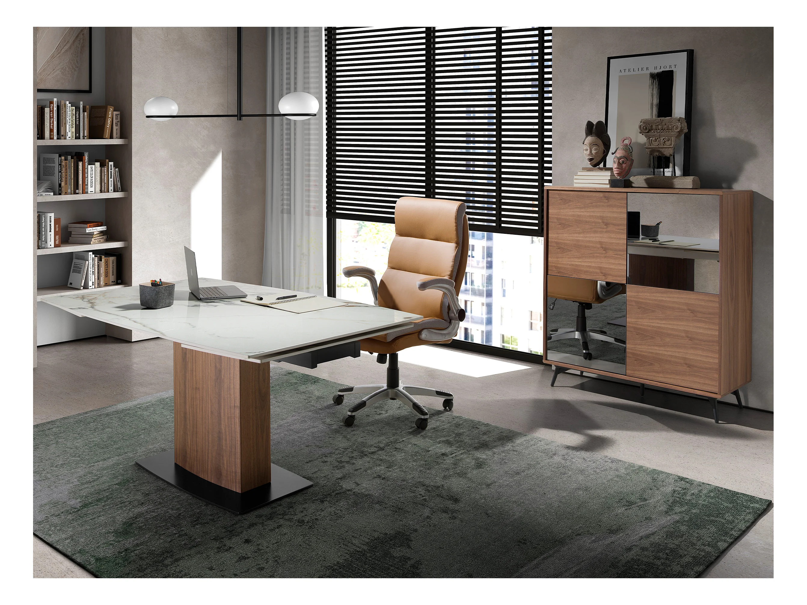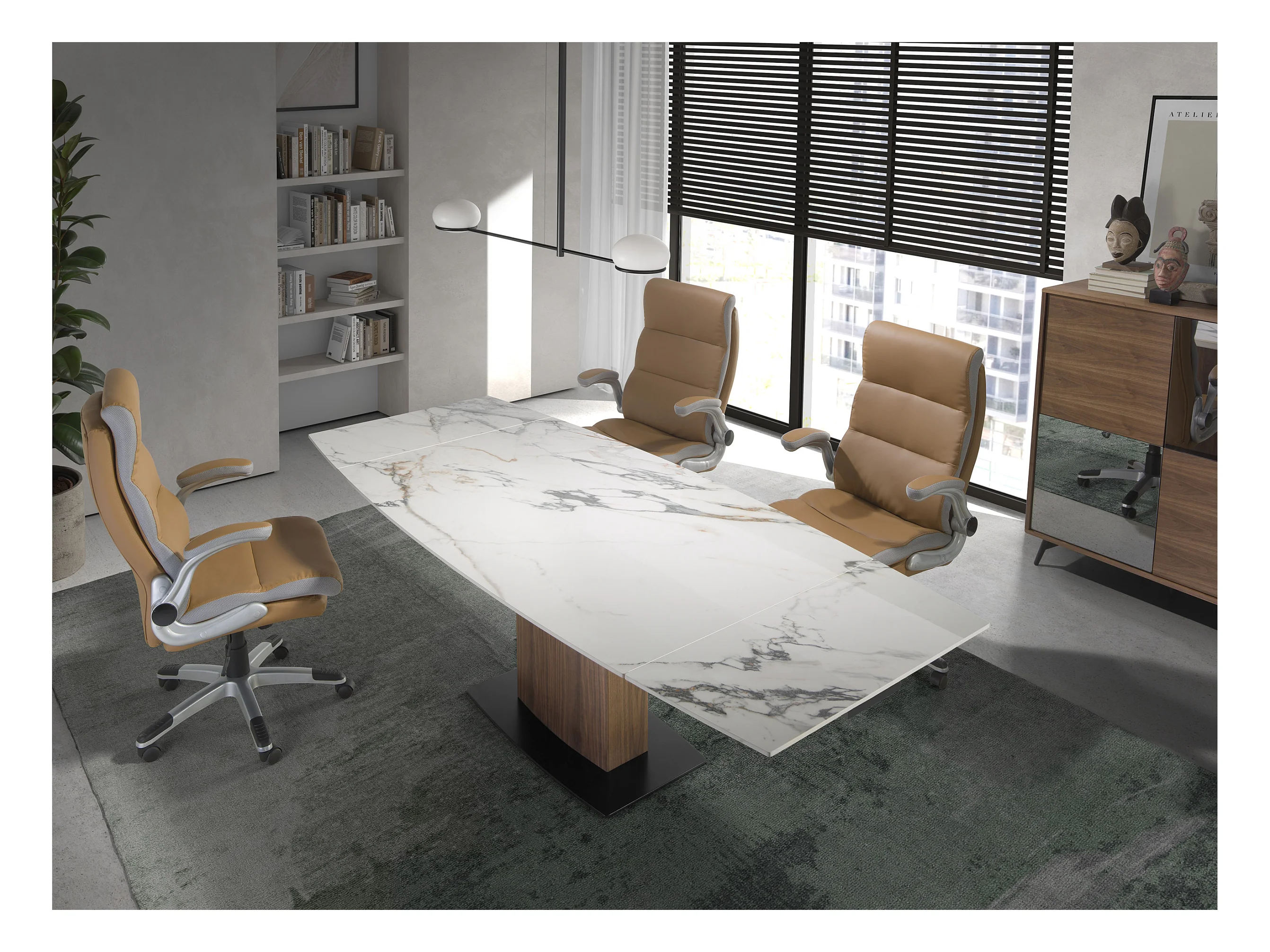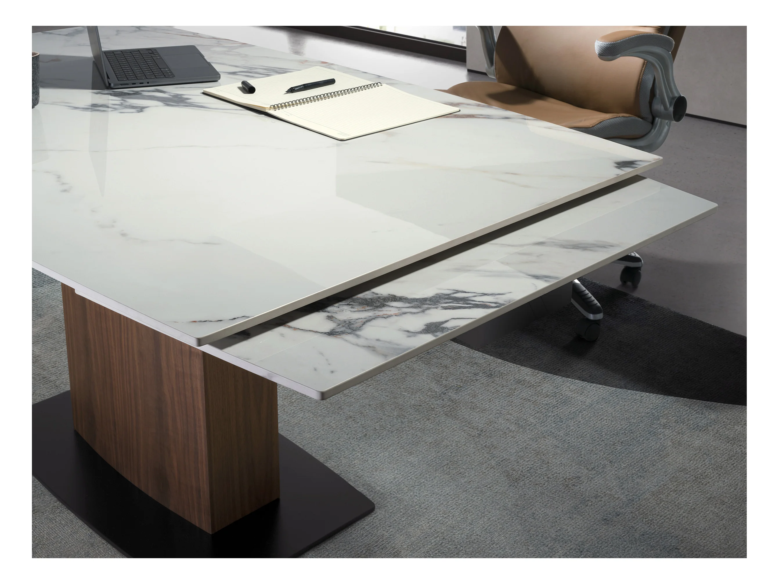 Table de salle à manger ovale à rallonge en marbre de porcelaine et tonneau en noyer 1149 ANGEL CERDA