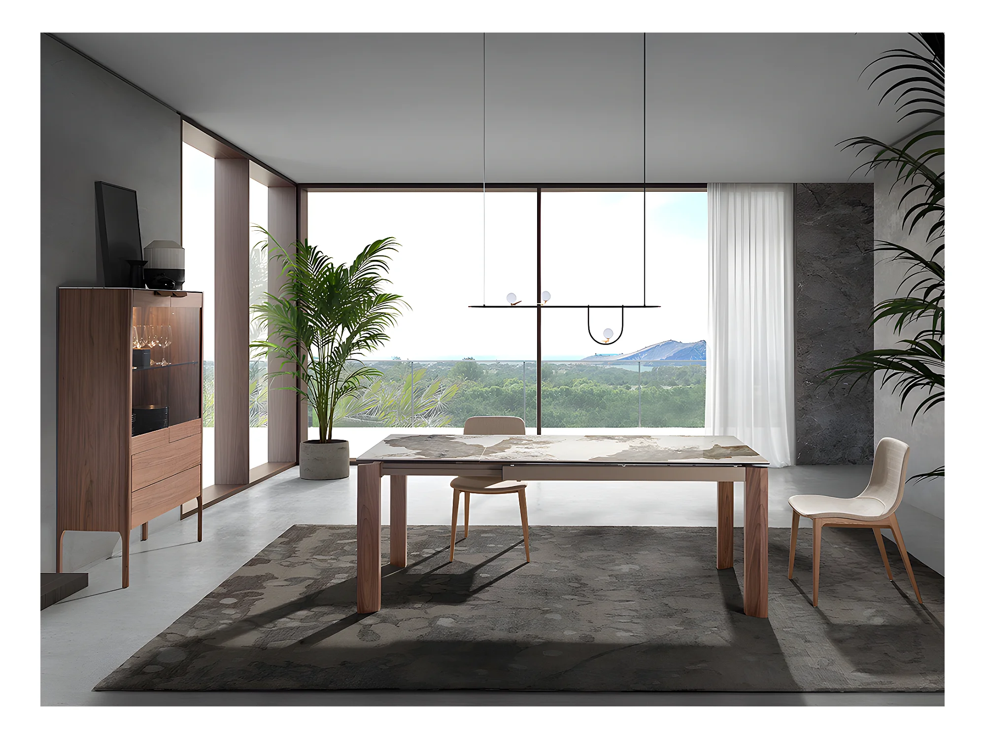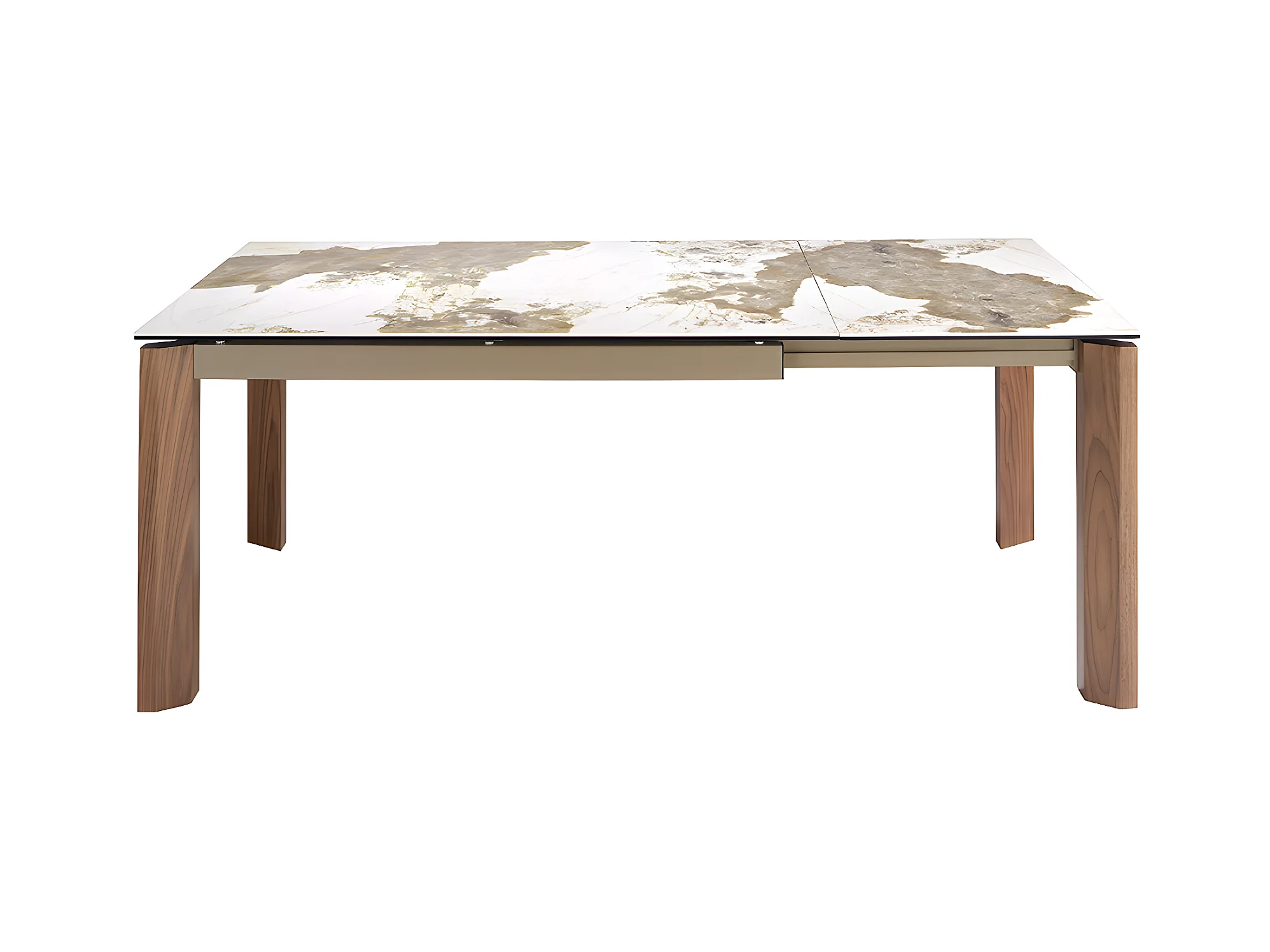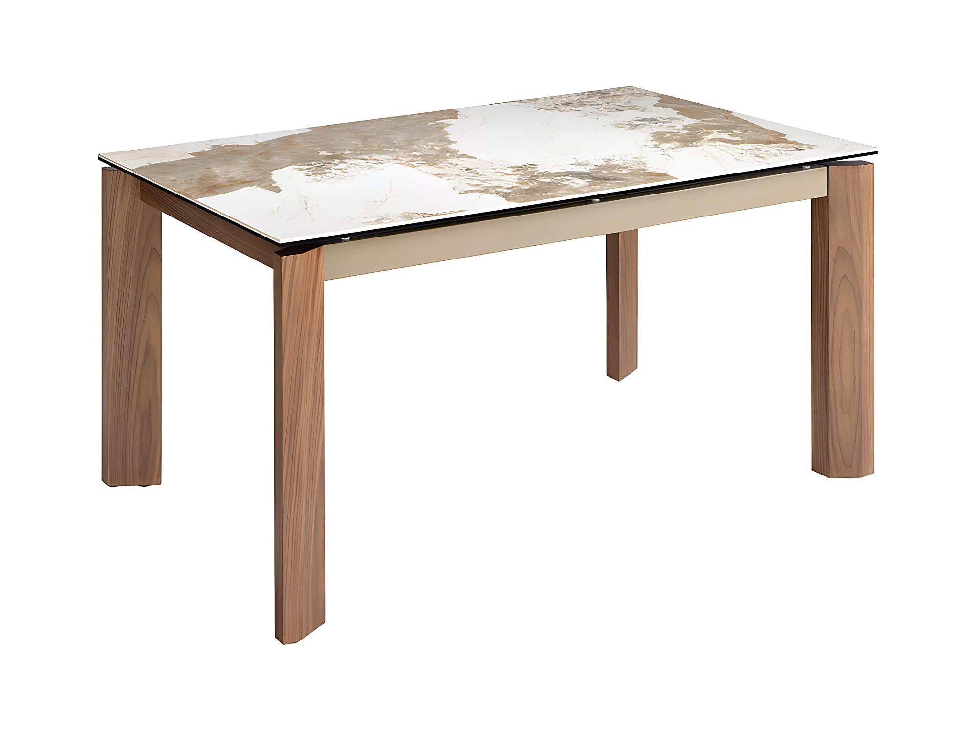 Table à manger à rallonge rectangulaire marbre porcelaine et noyer 1118 ANGEL CERDA