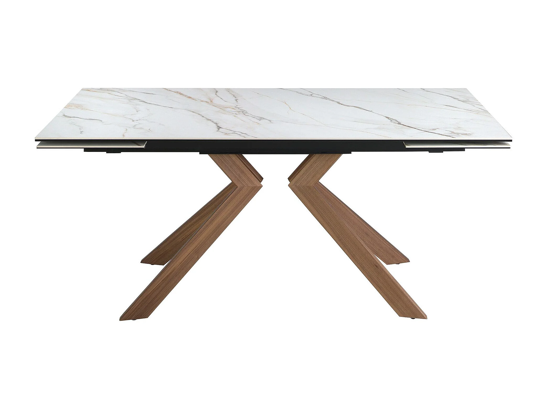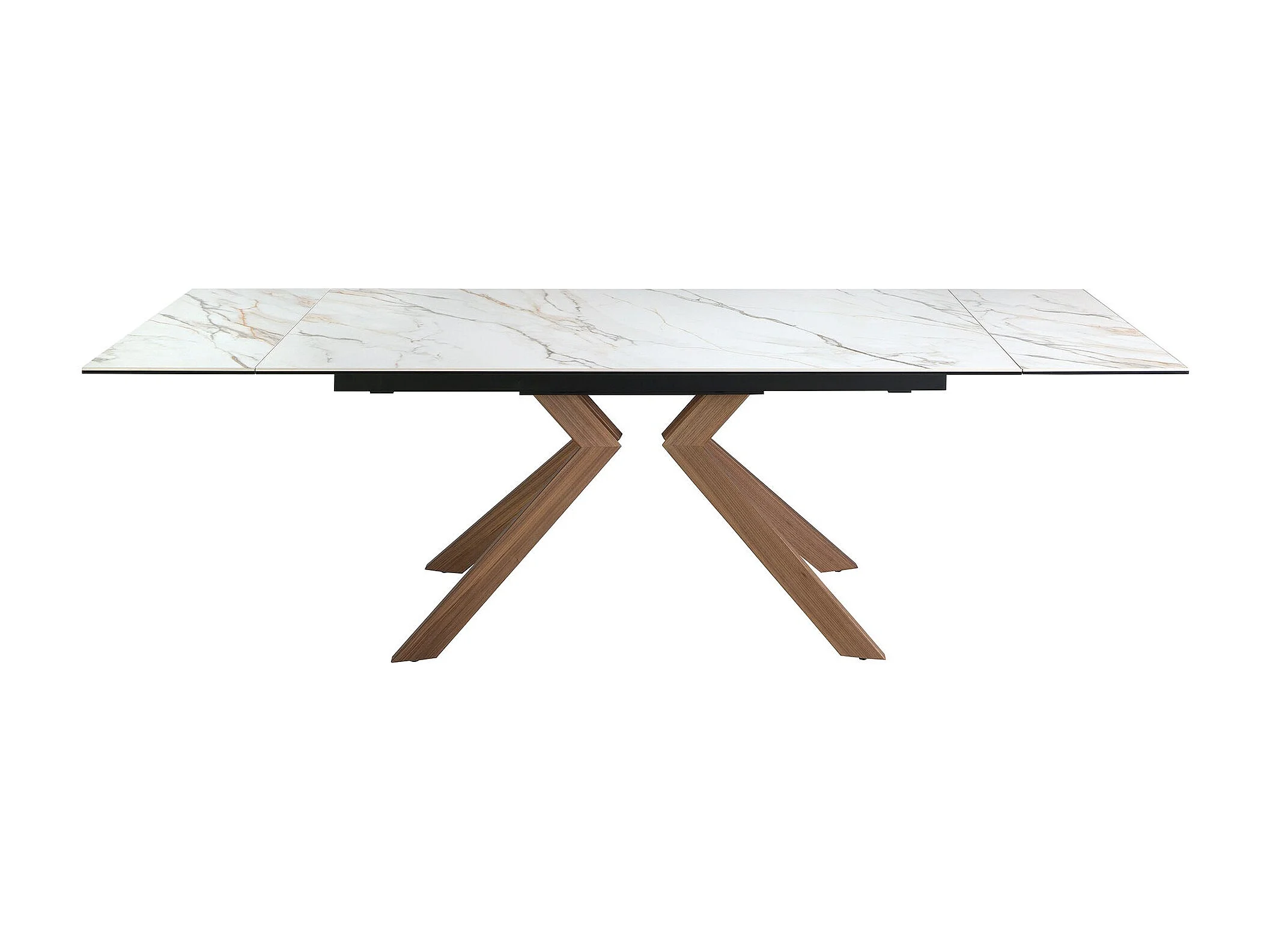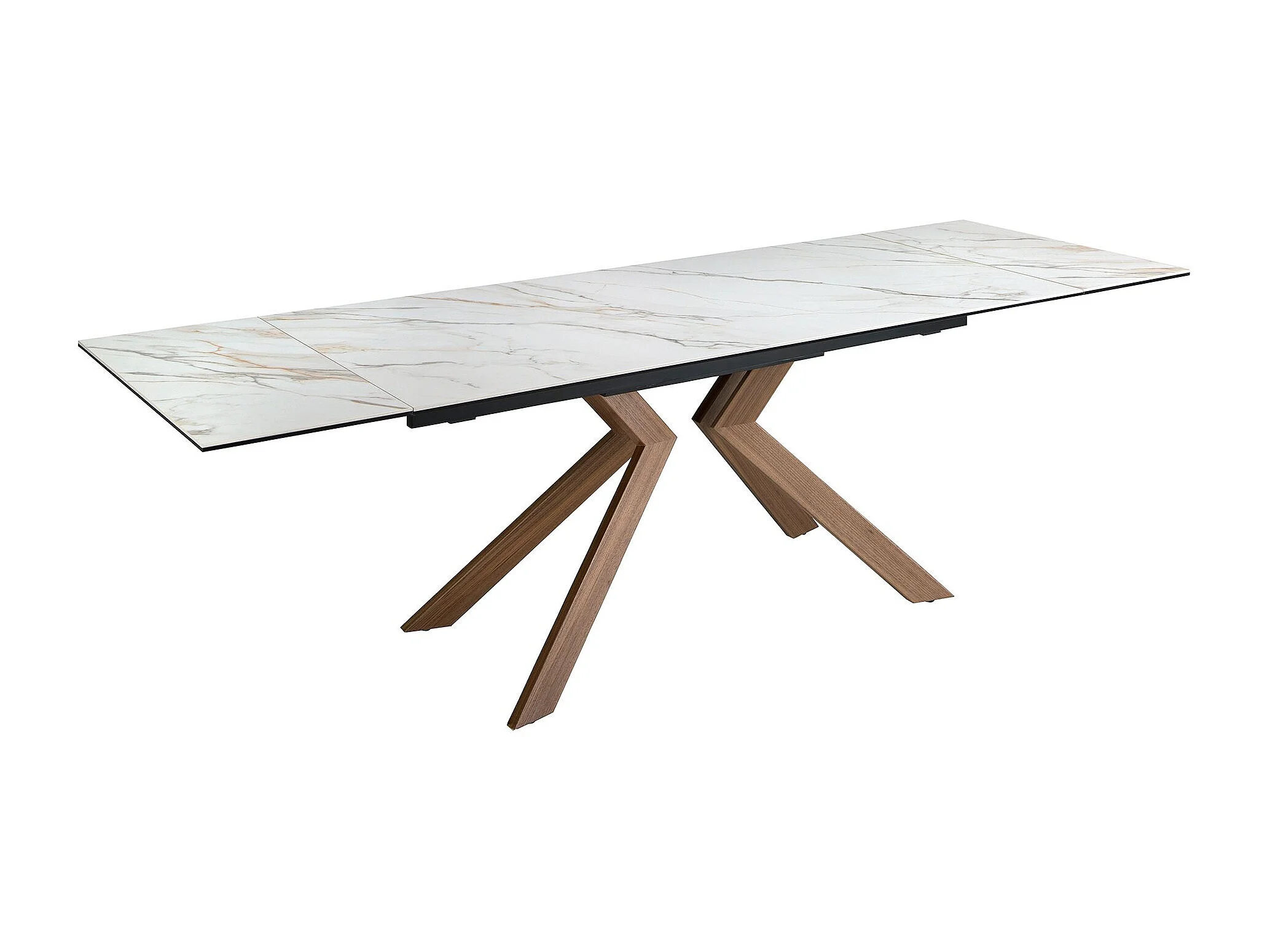 Table de salle à manger rectangulaire à rallonge en marbre porcelaine et acier effet noyer 1120 ANGEL CERDA