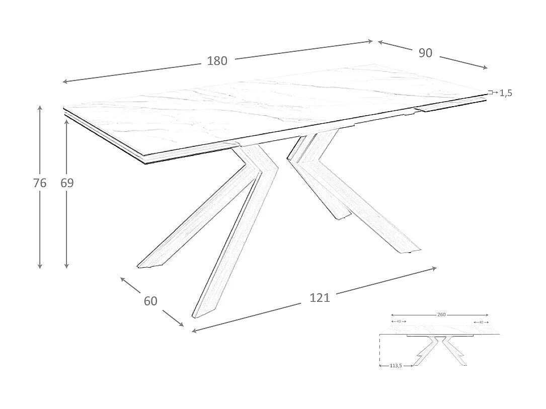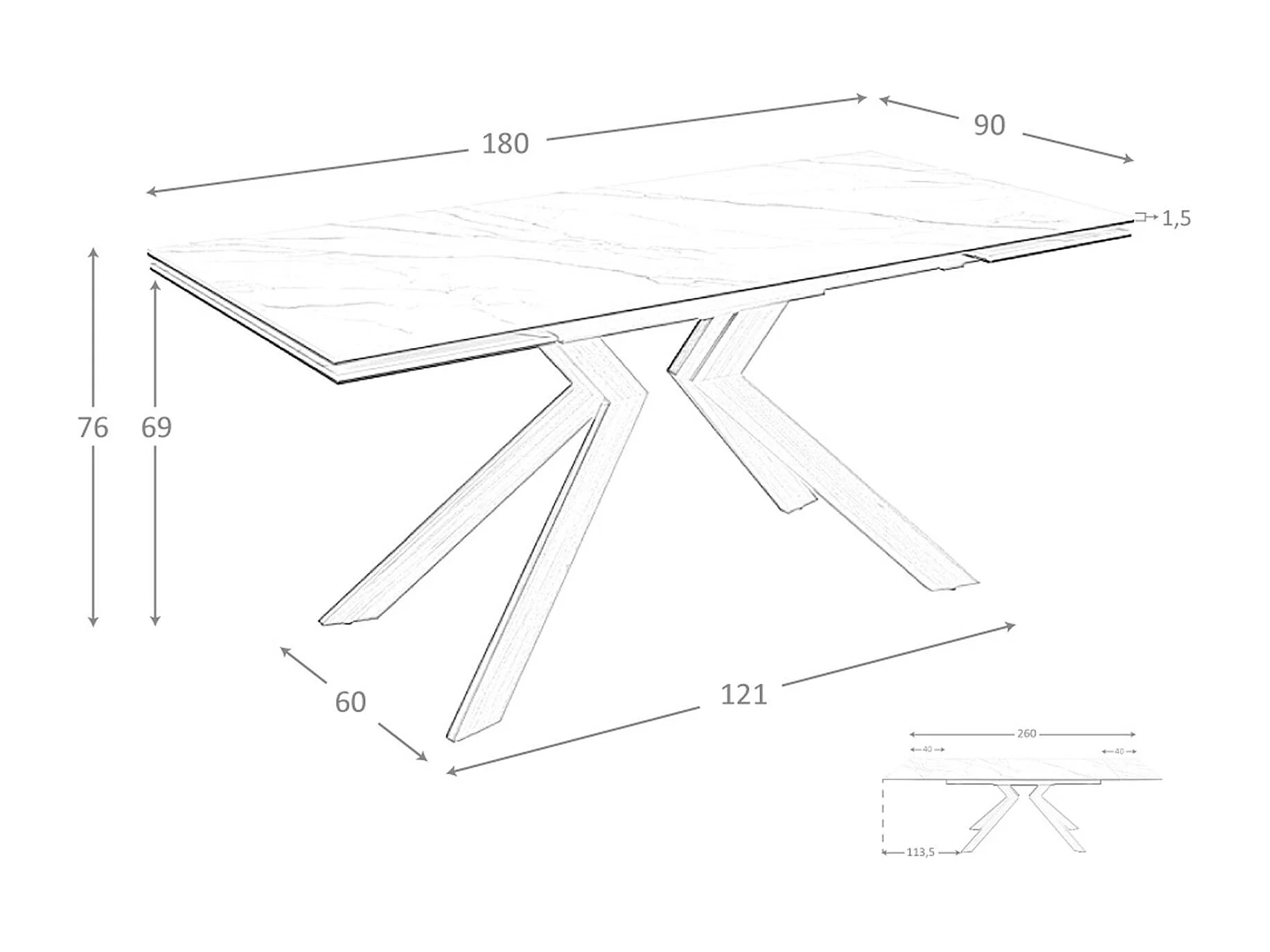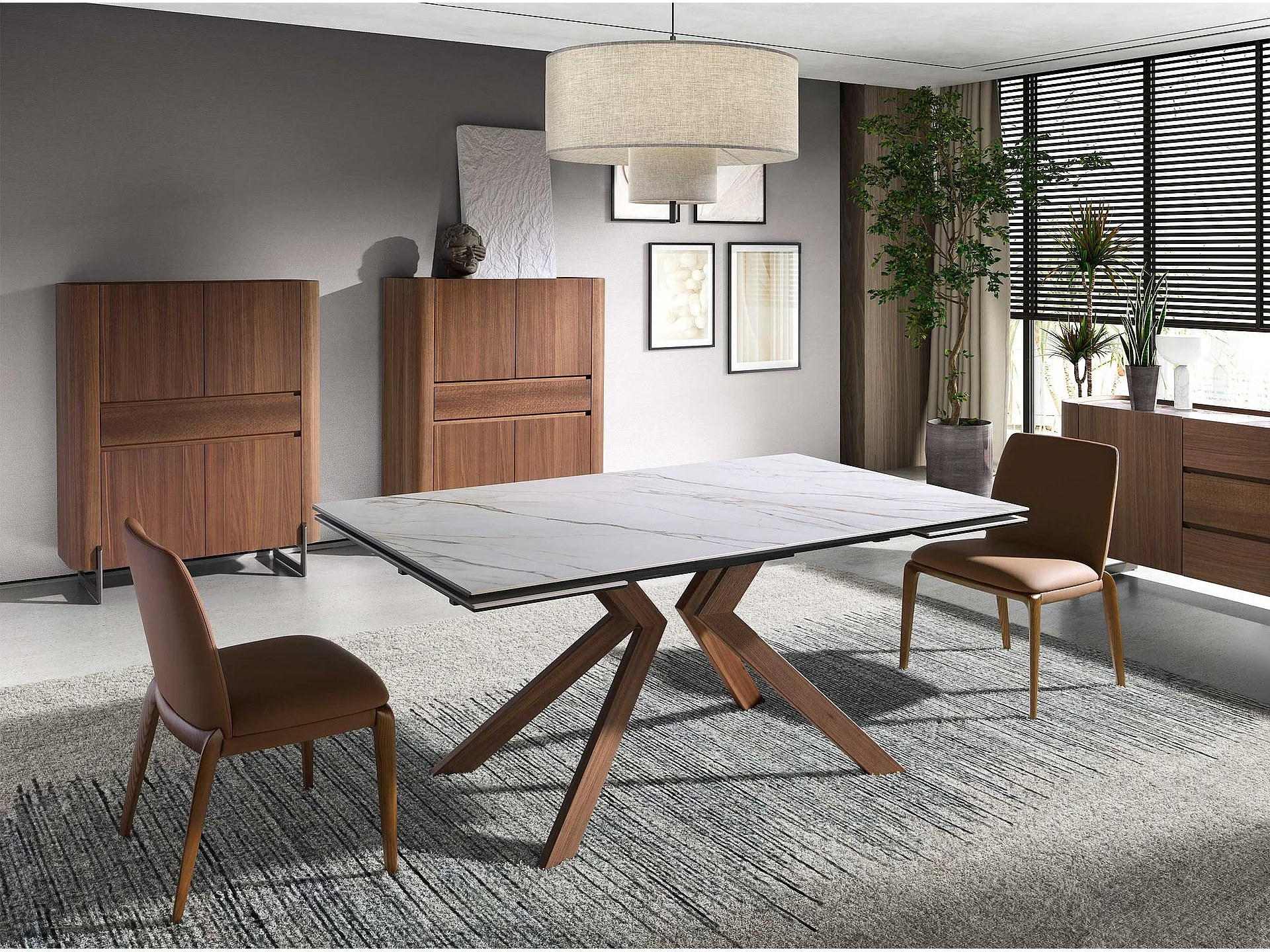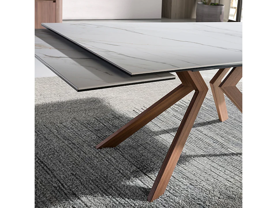 Table de salle à manger rectangulaire à rallonge en marbre porcelaine et acier effet noyer 1120 ANGEL CERDA