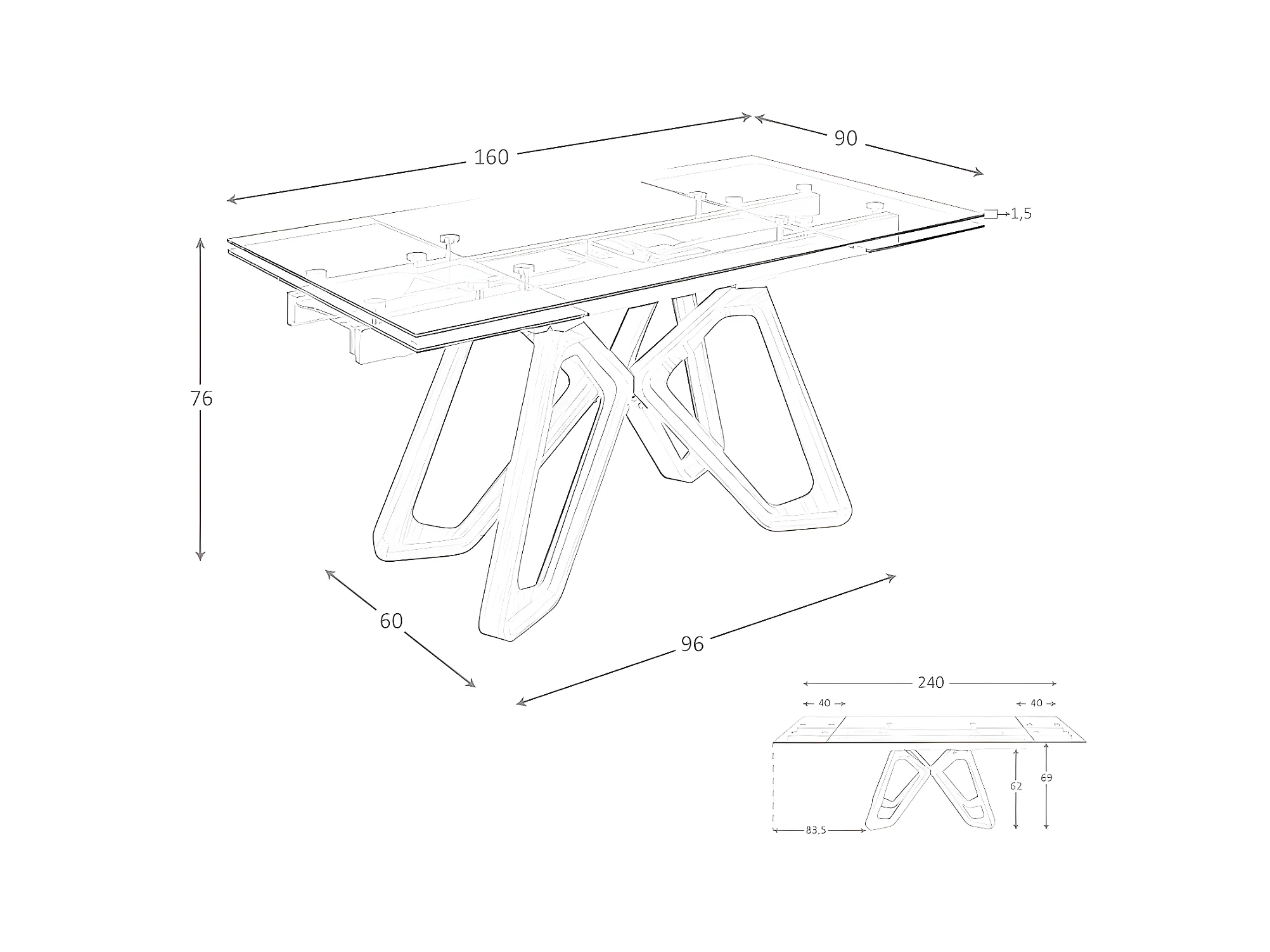 Table extensible rectangle