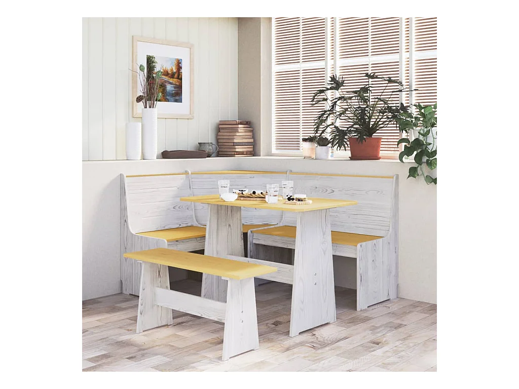 Table à manger avec banc Marron miel et blanc Pin solide GHR43644