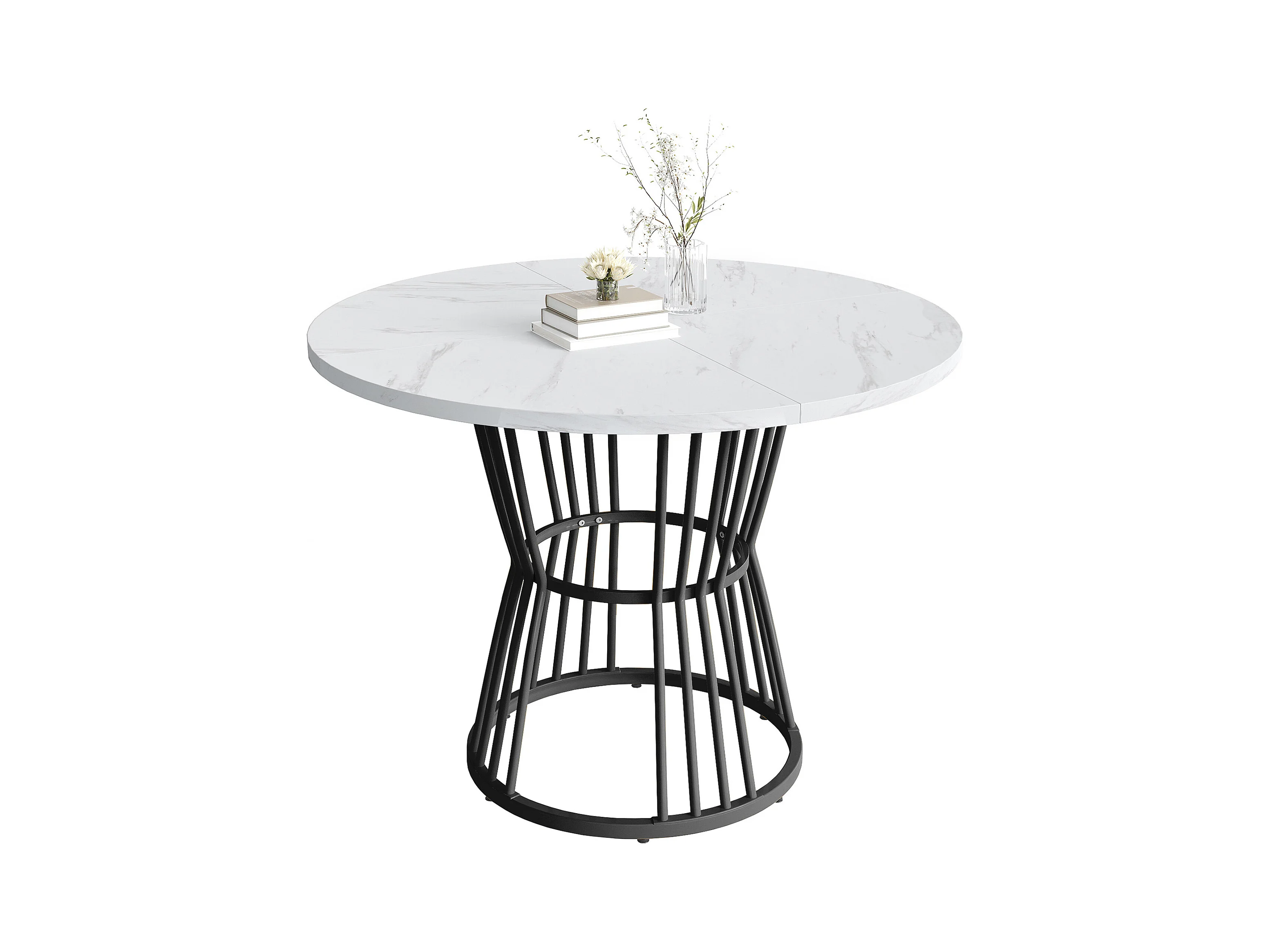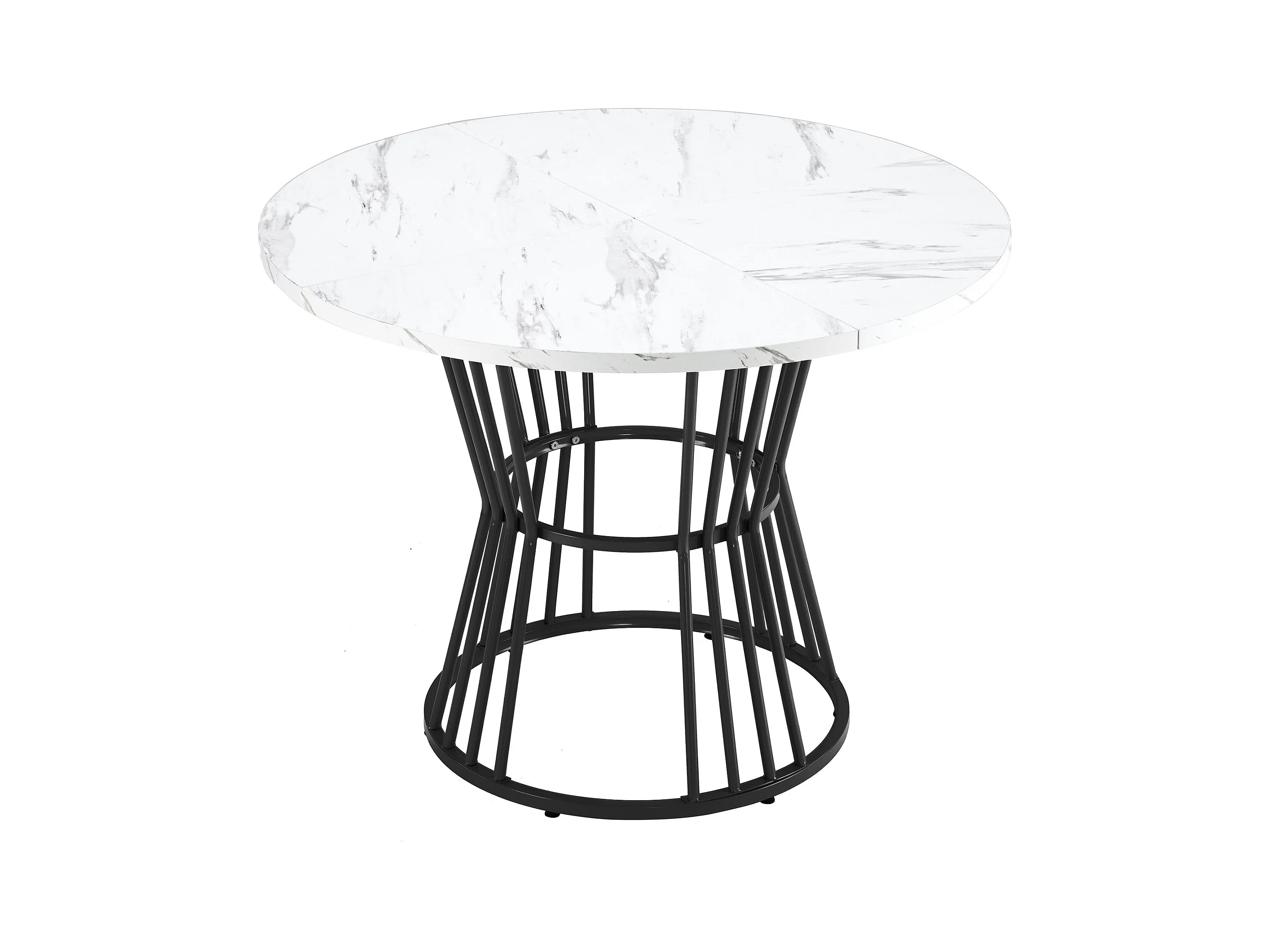Table à manger ronde 100x100x76cm avec plateau en placage marbre blanc, cadre en métal noir réglable