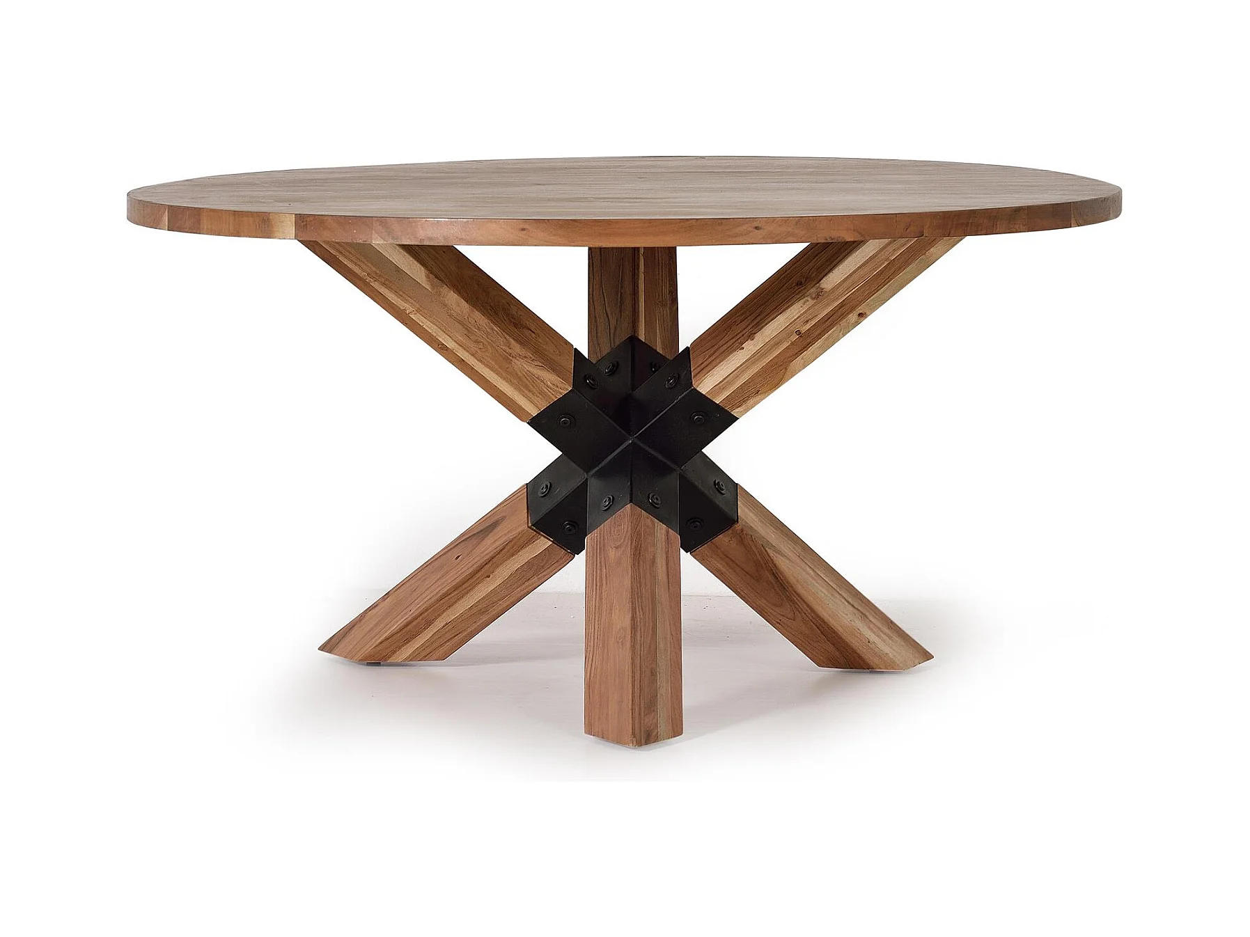 Table à manger ronde bois chêne clair et pieds croisée métalliques noir mat Helzani 137cm