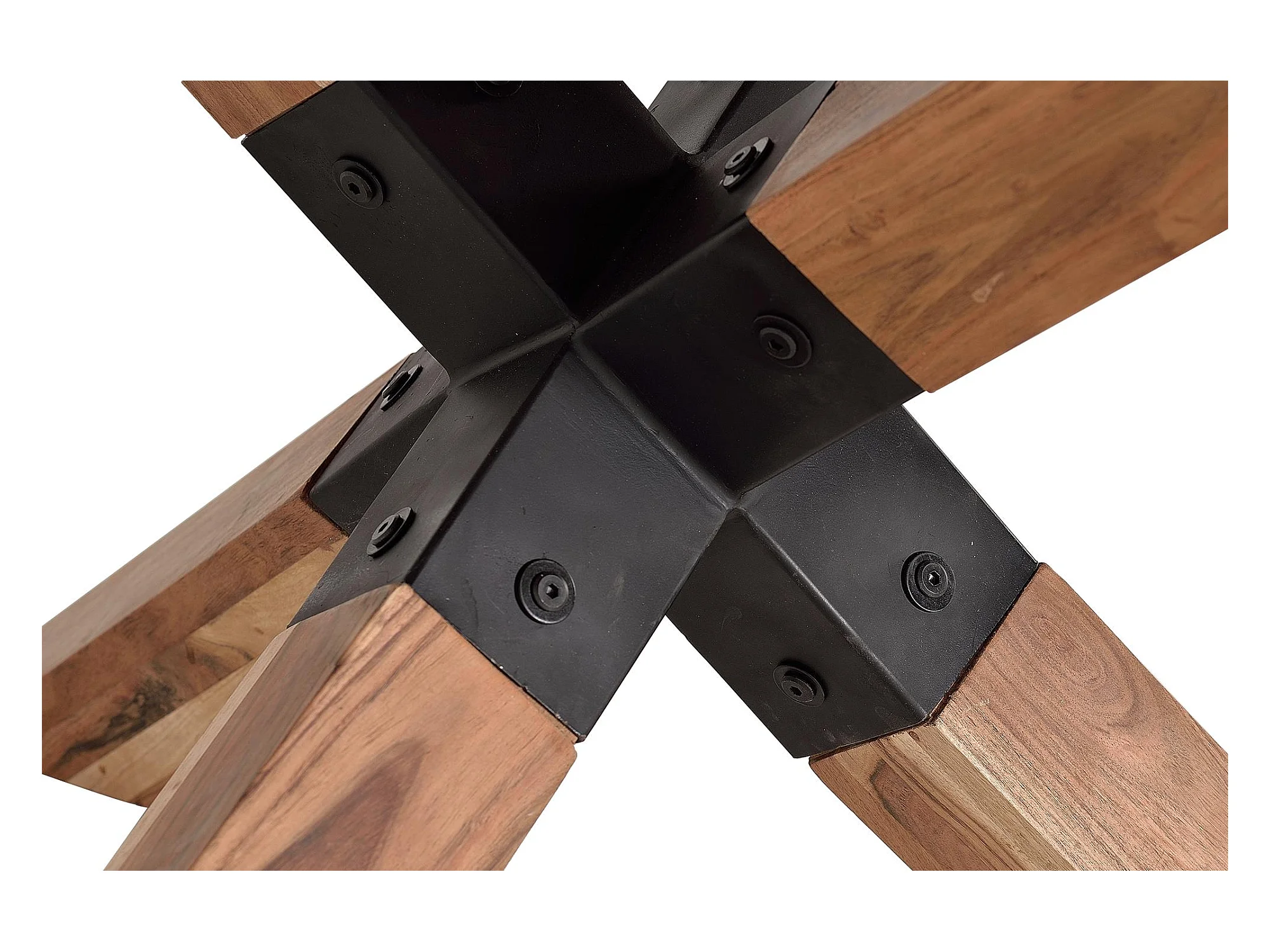Table à manger en bois d'acacia naturel et pieds en métal noir