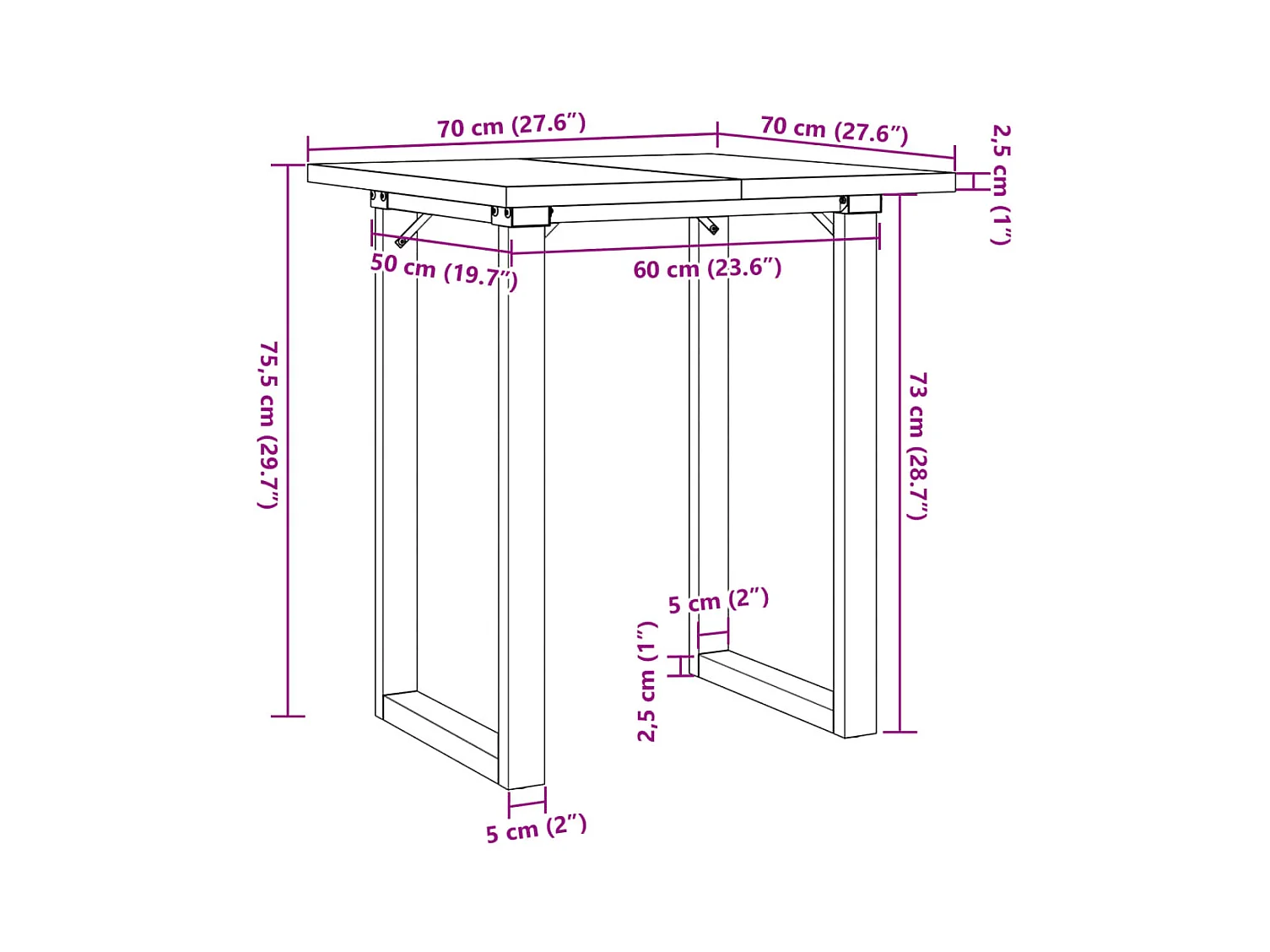 Table à manger cadre en O 70x70x75 cm bois de pin massif acier