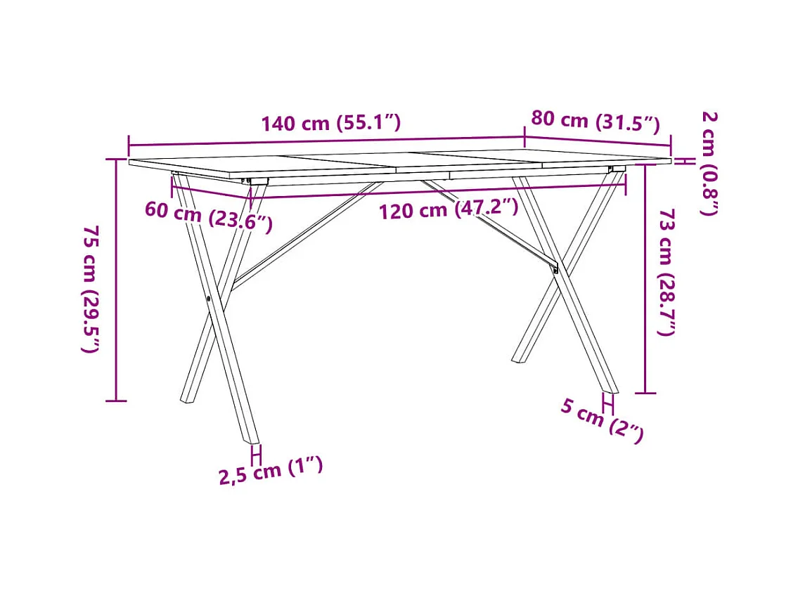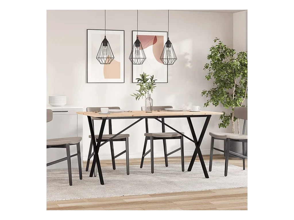 Table à manger cadre en X 140x80x75 cm bois de pin massif fonte
