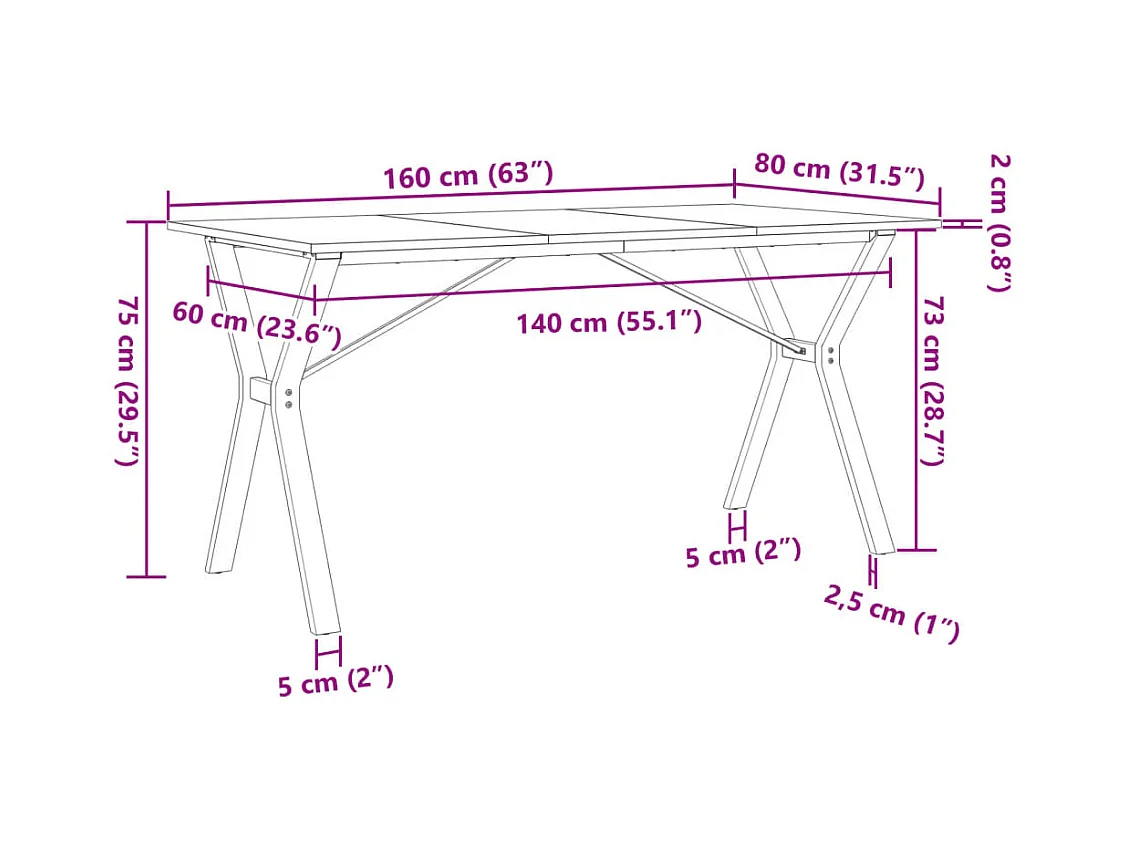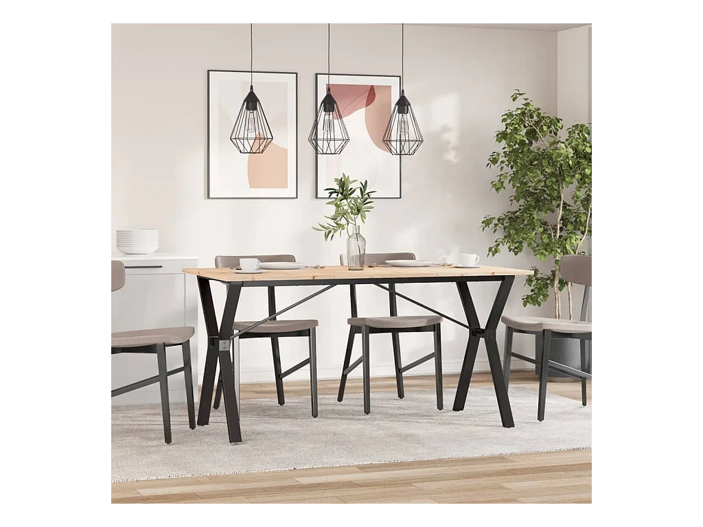 Table à manger cadre en X 160x80x75 cm bois de pin massif fonte