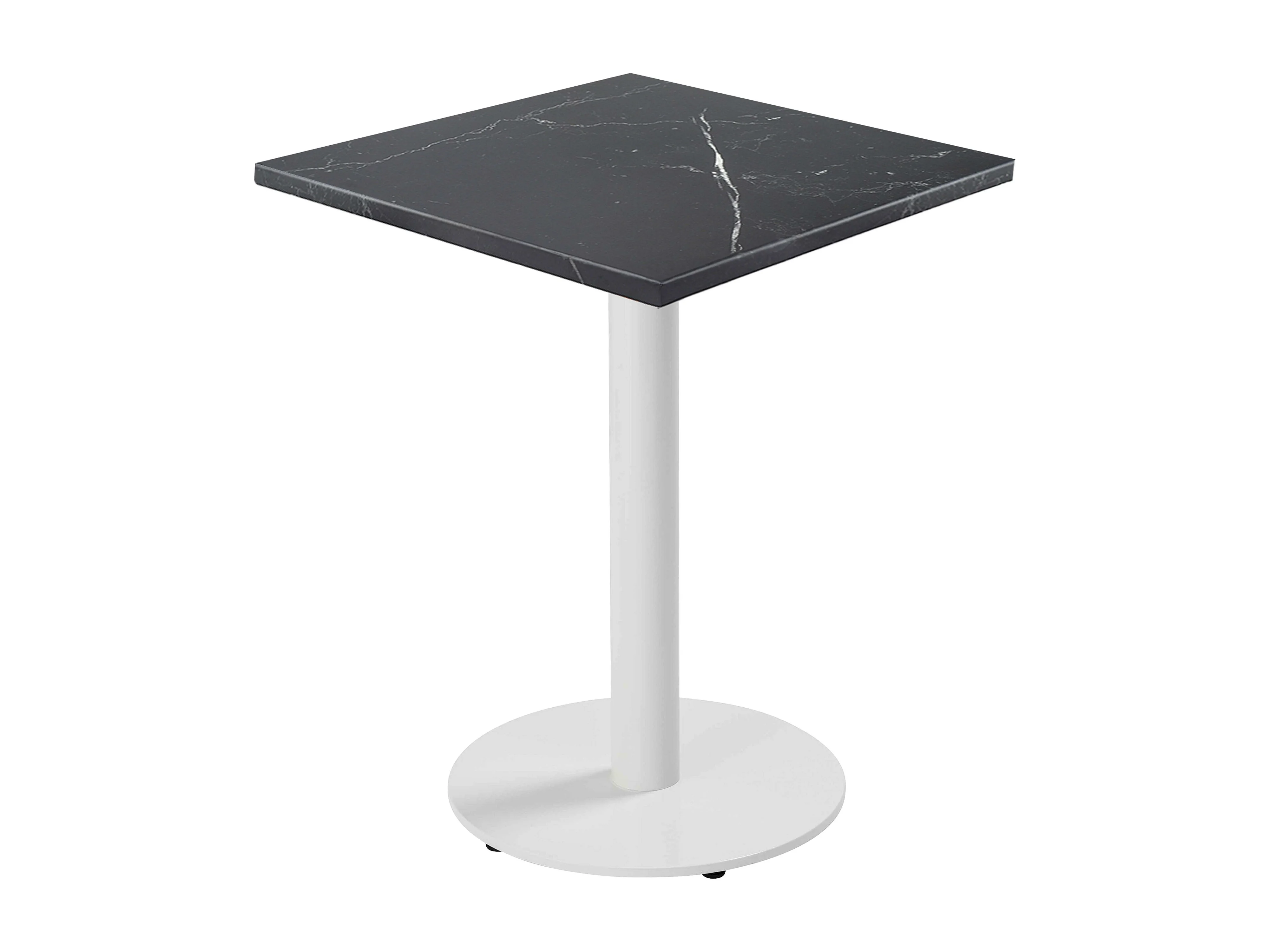 Table haute carrée 60 cm pied blanc et revêtement marbre noir