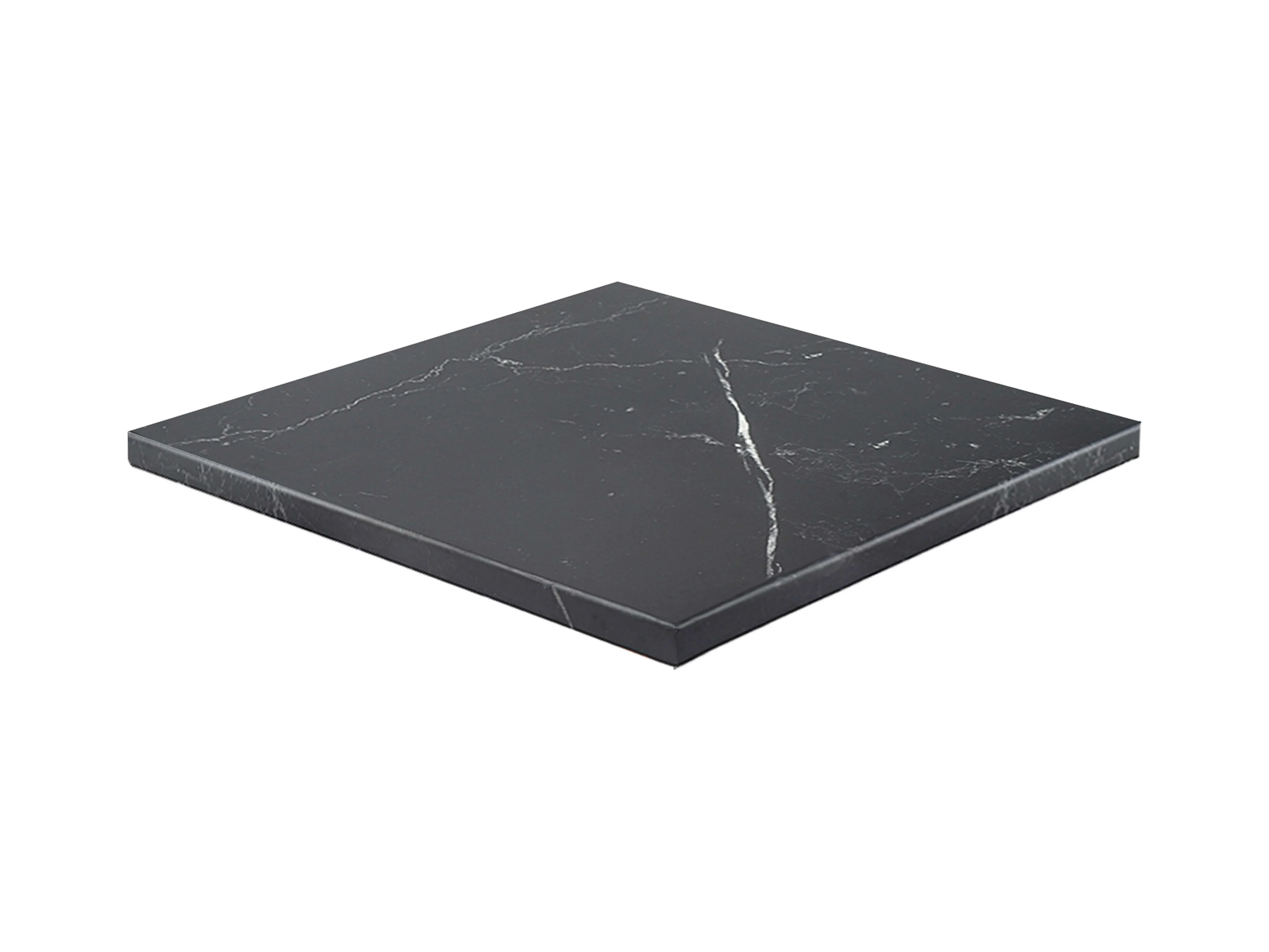 Table à manger carrée 60 cm pied noir et revêtement marbre noir