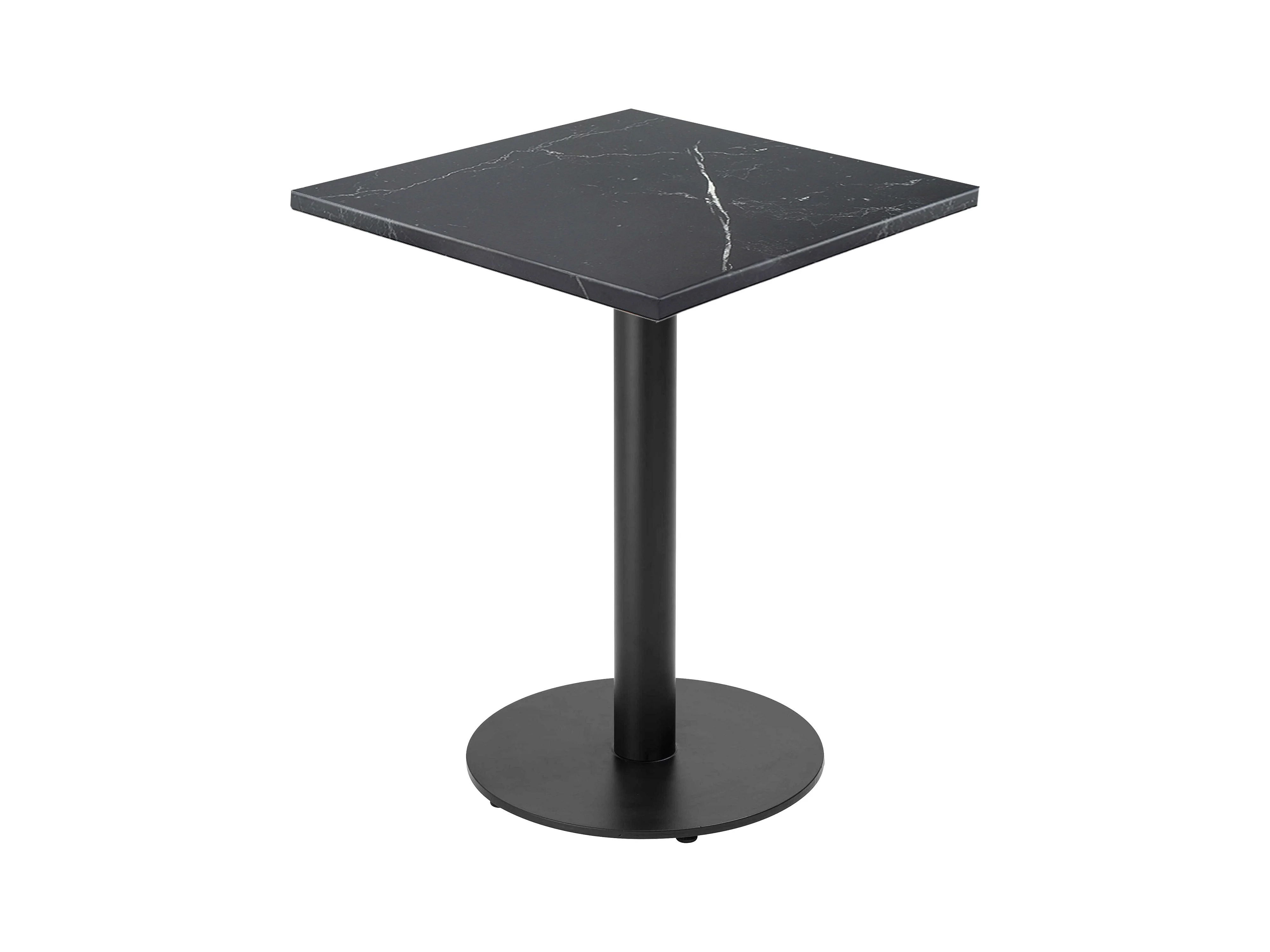 Table haute carrée 60 cm pied noir et revêtement marbre noir