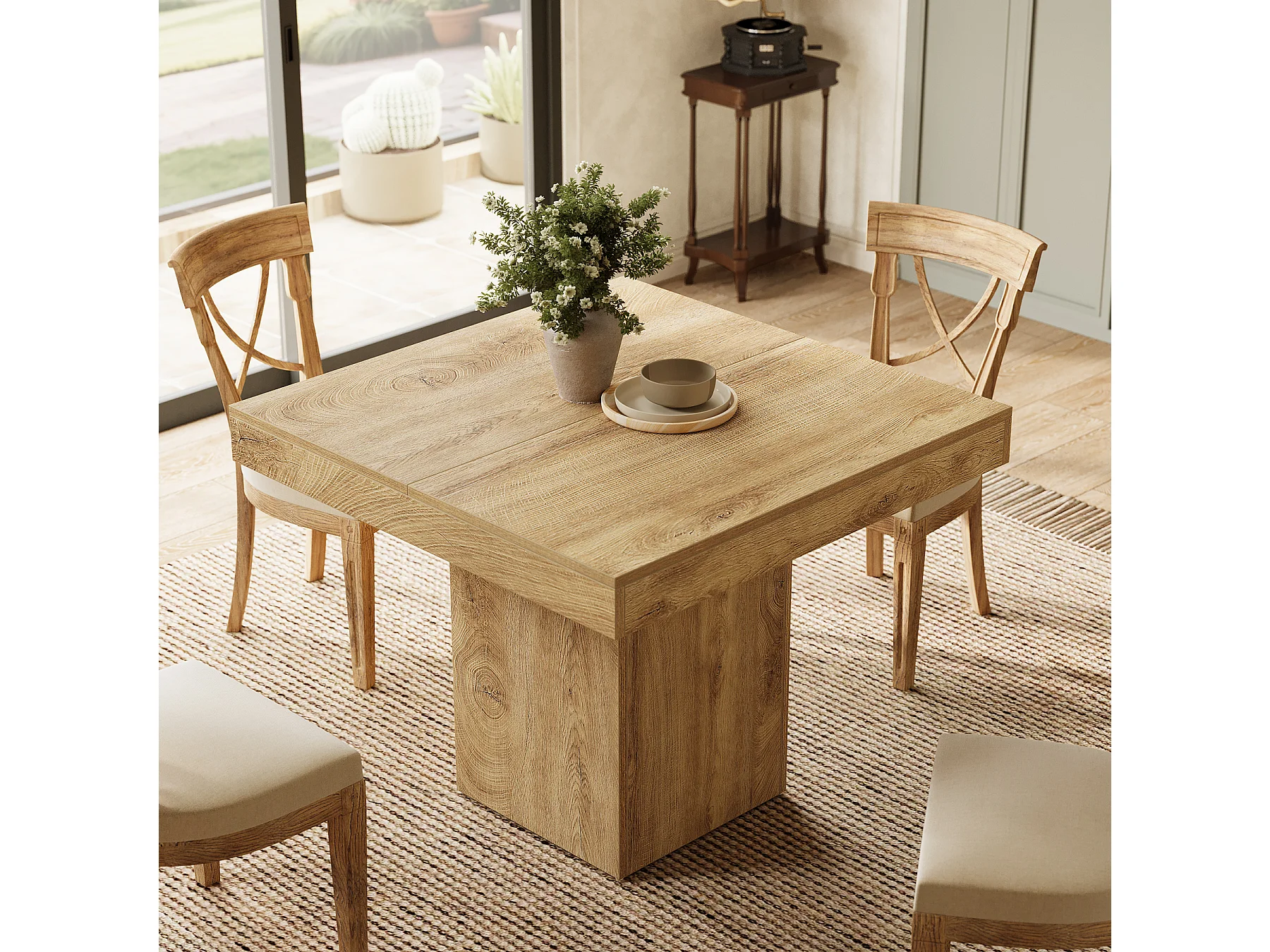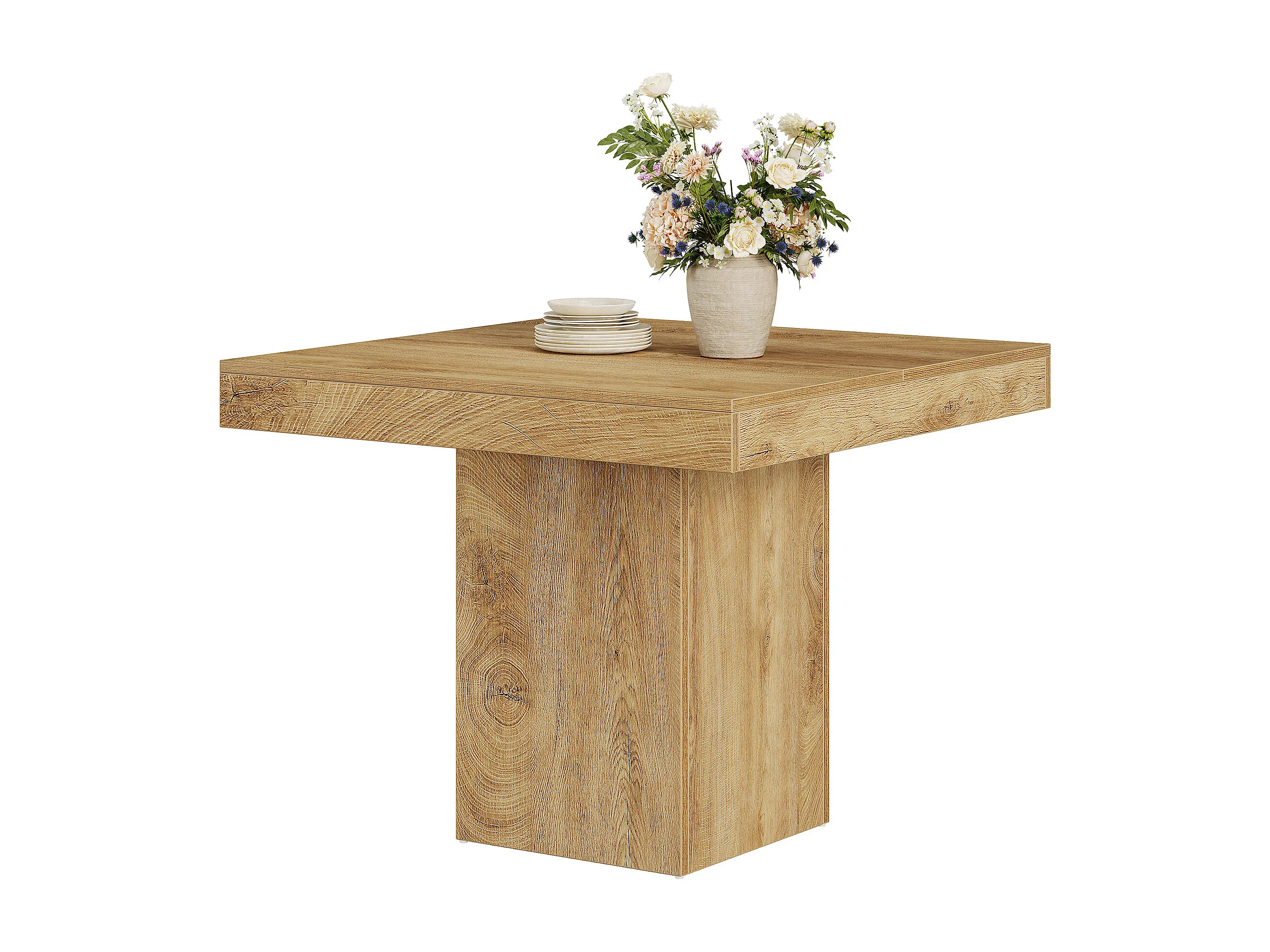 Table à manger carrée de 100 cm pour 4 personnes, petite table de cuisine de style campagnard avec base à piédestal robuste