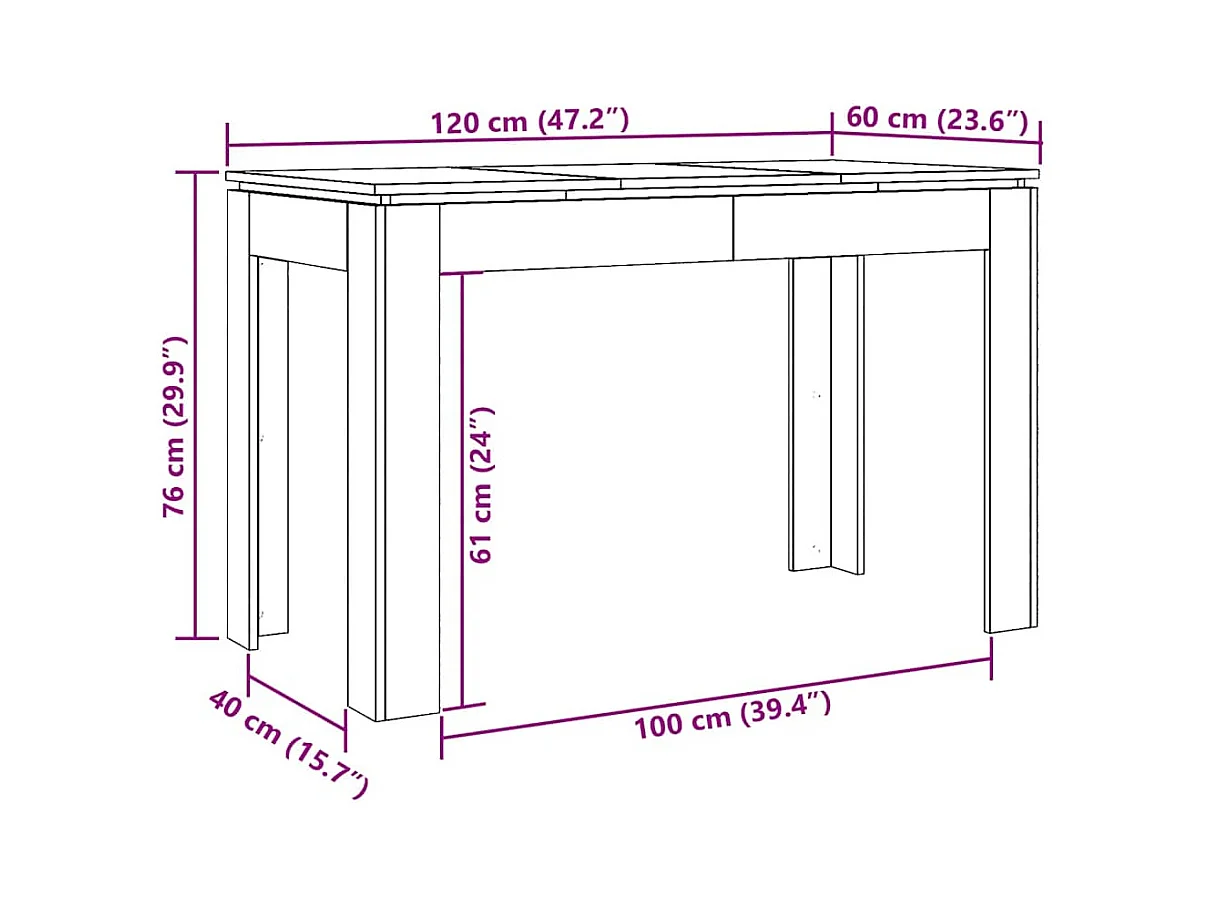Table de salle à manger Chêne sonoma 120 x 60 x 76 cm Aggloméré