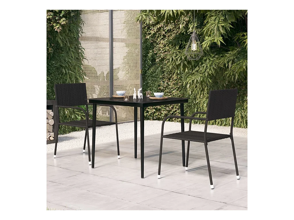 Table à manger de jardin Noir 80x80x74 cm Acier et verre GHR31500
