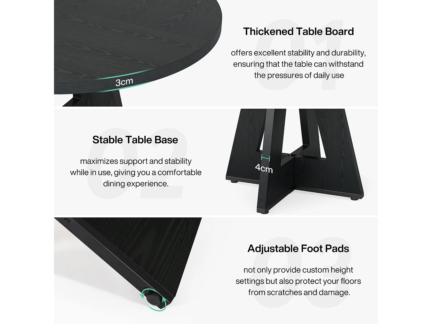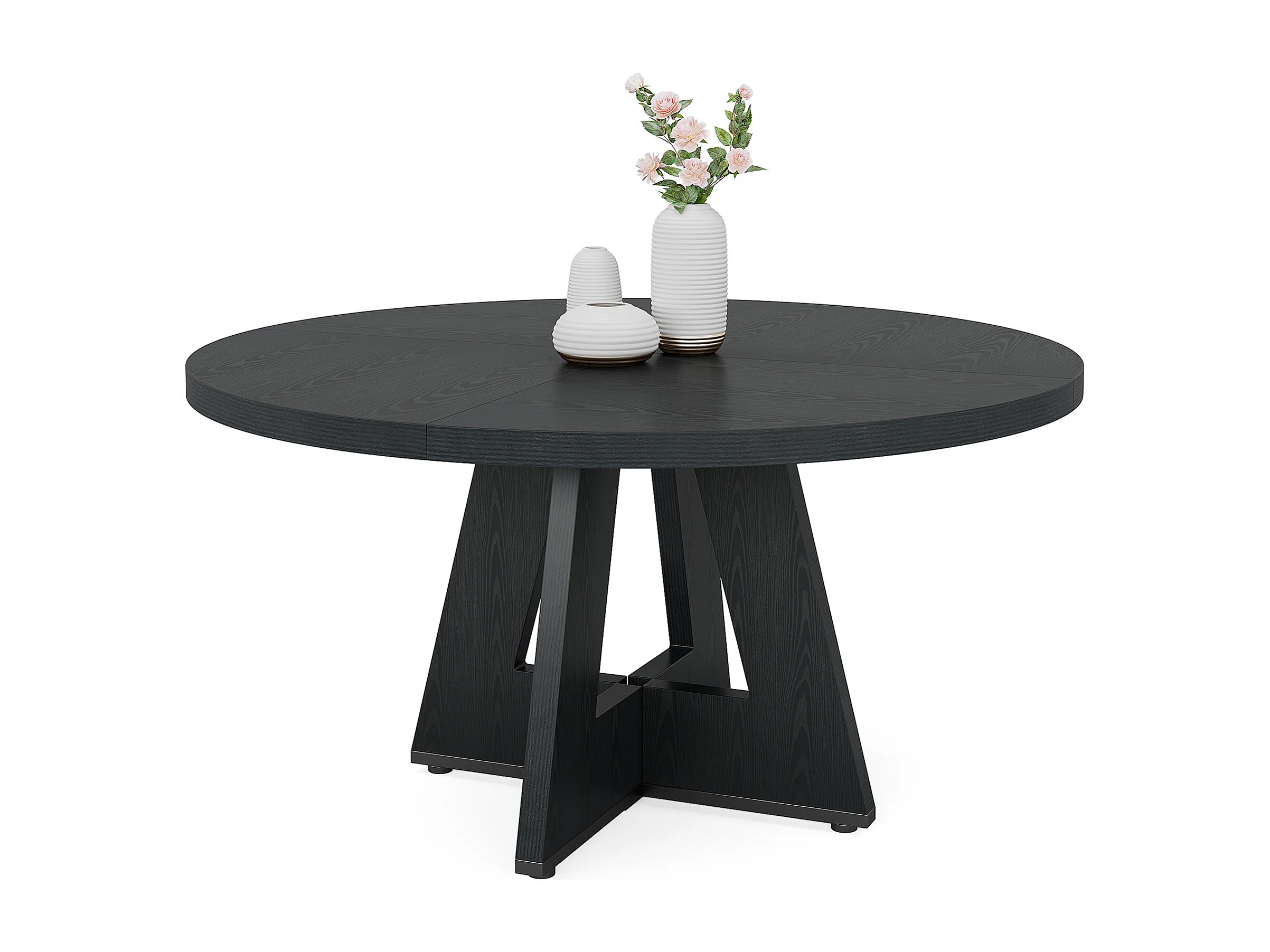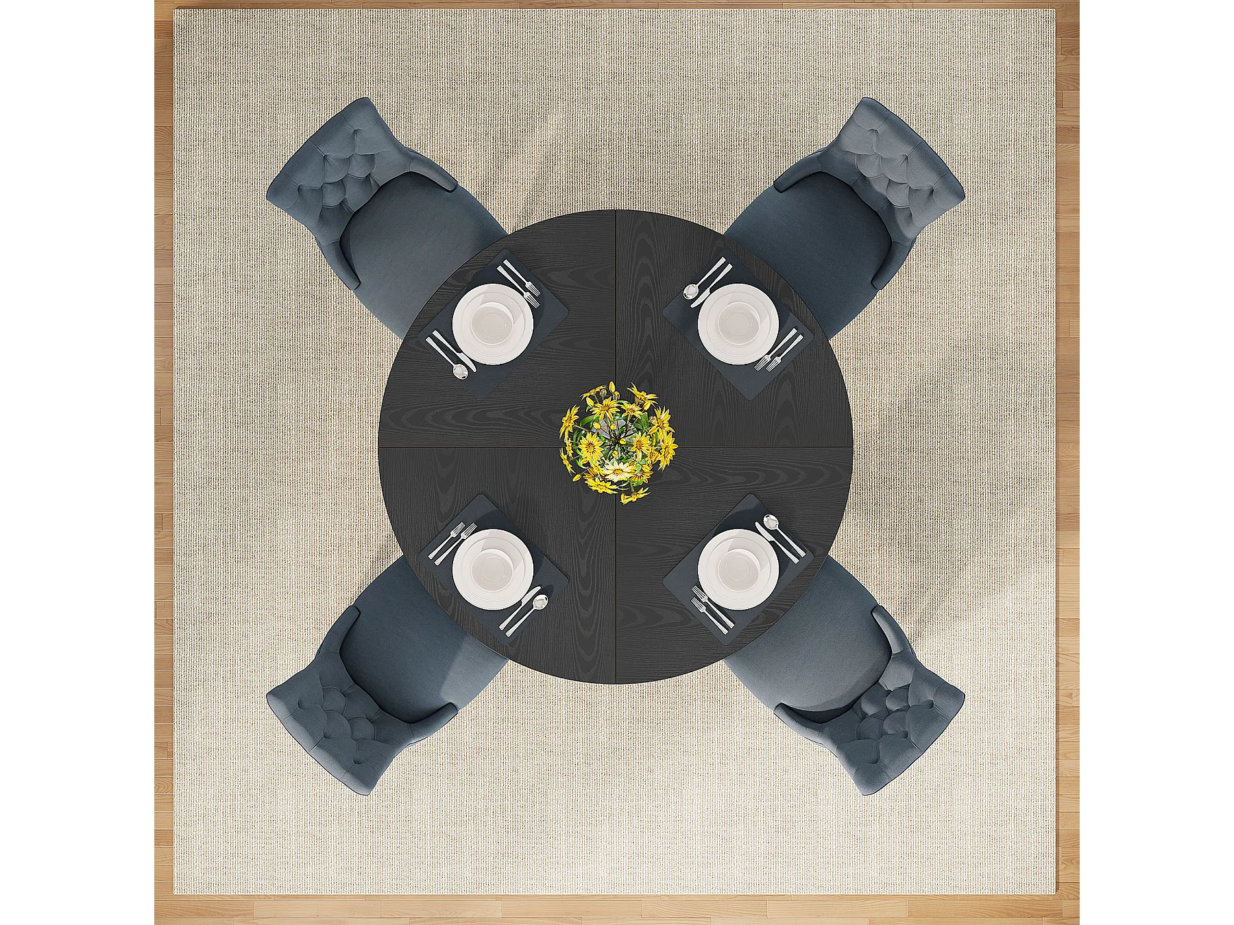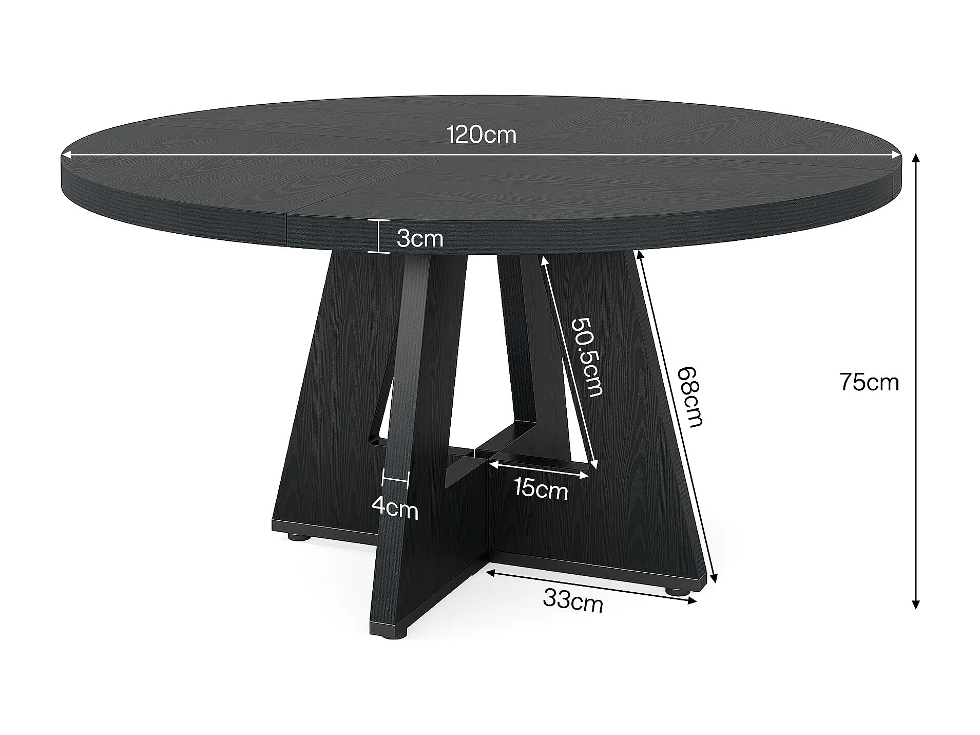 Table à manger de style campagnard, table ronde de 120 cm pour 4 personnes, table de salle à manger noire
