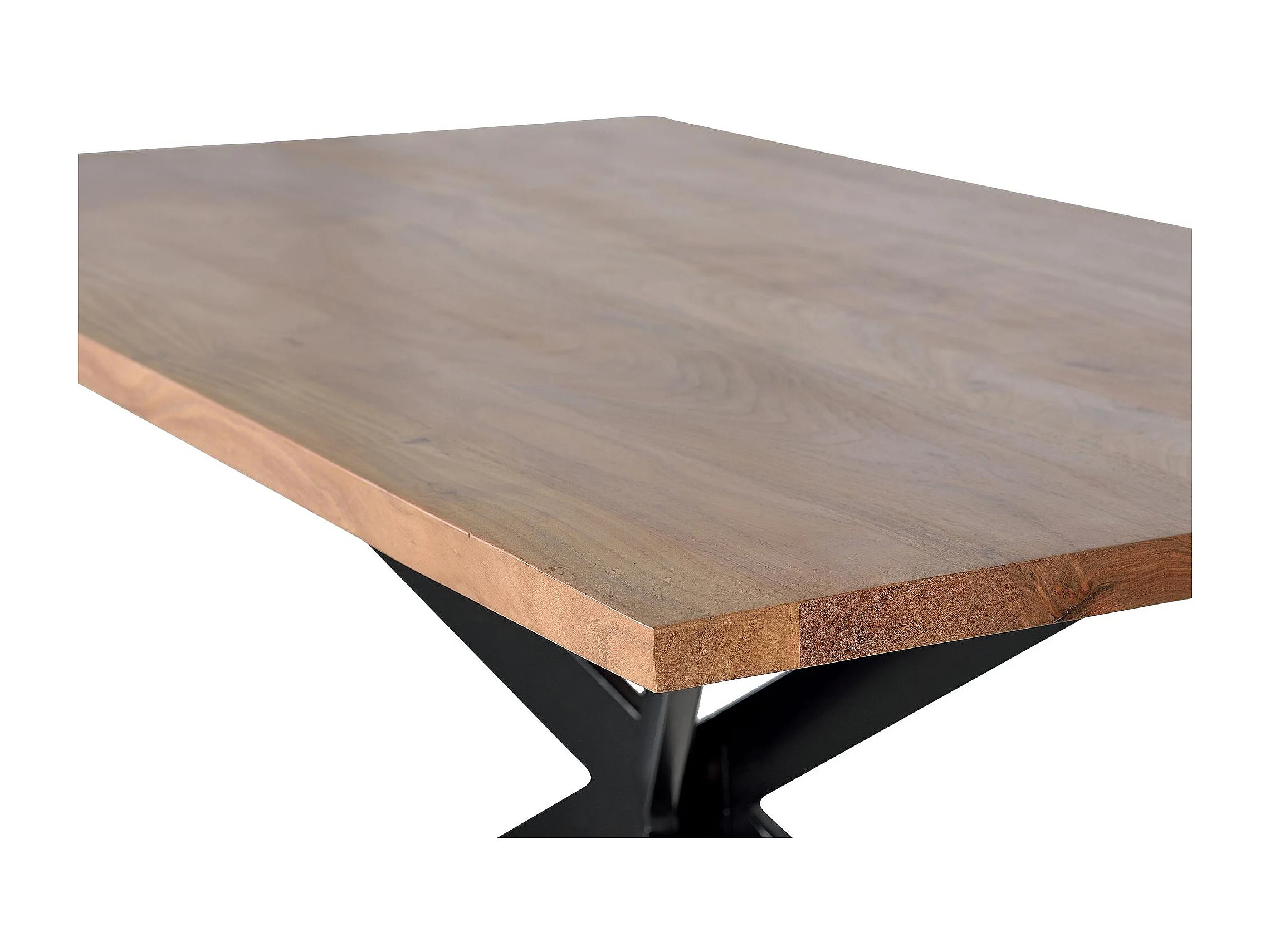 Table à manger en bois d'acacia naturel et pieds en métal noir