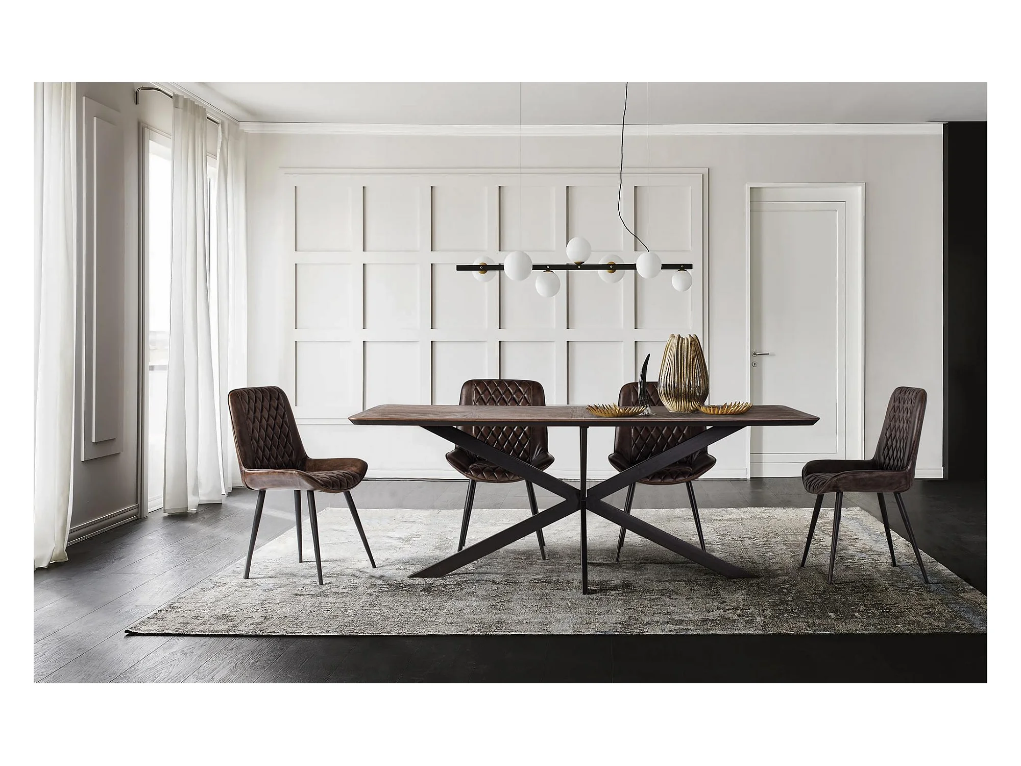 Table à manger rectangulaire bois foncé et pieds métal anthracite Bidy 180cm