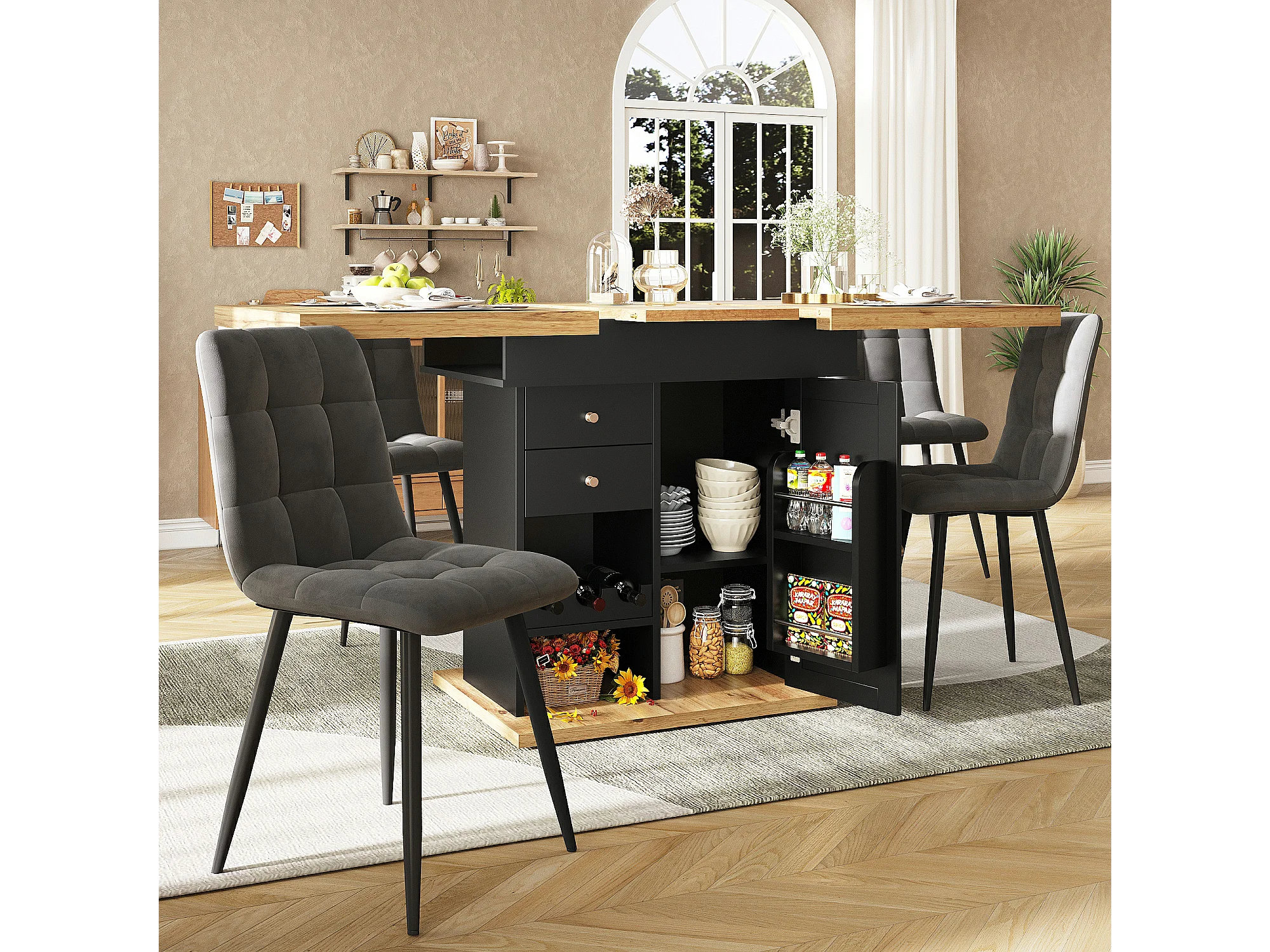 Table à manger extensible 110-140×80cm - 4-6 personnes - avec 1 porte et 2 tiroirs - avec casier à vin et étagère à épices - Noir