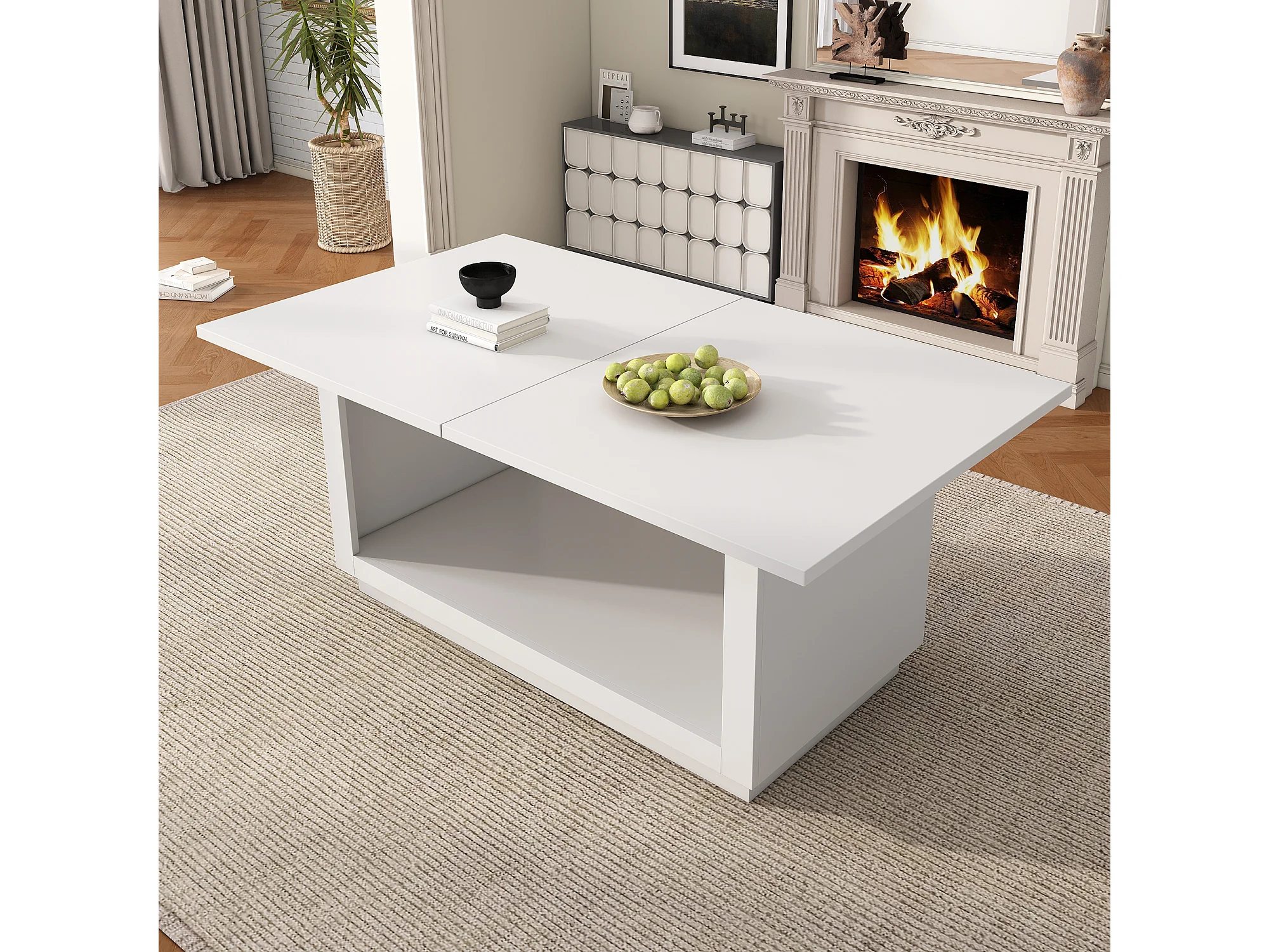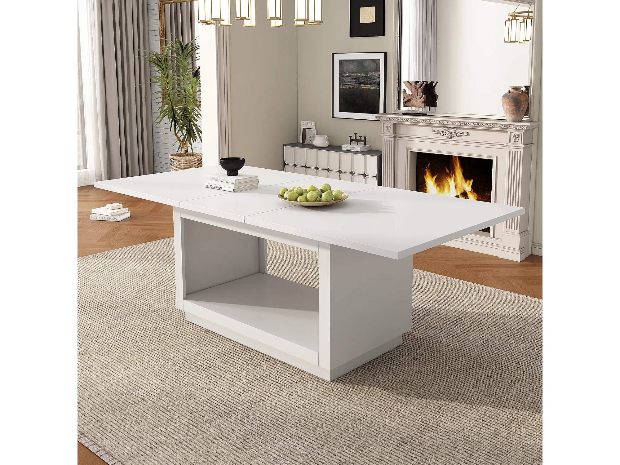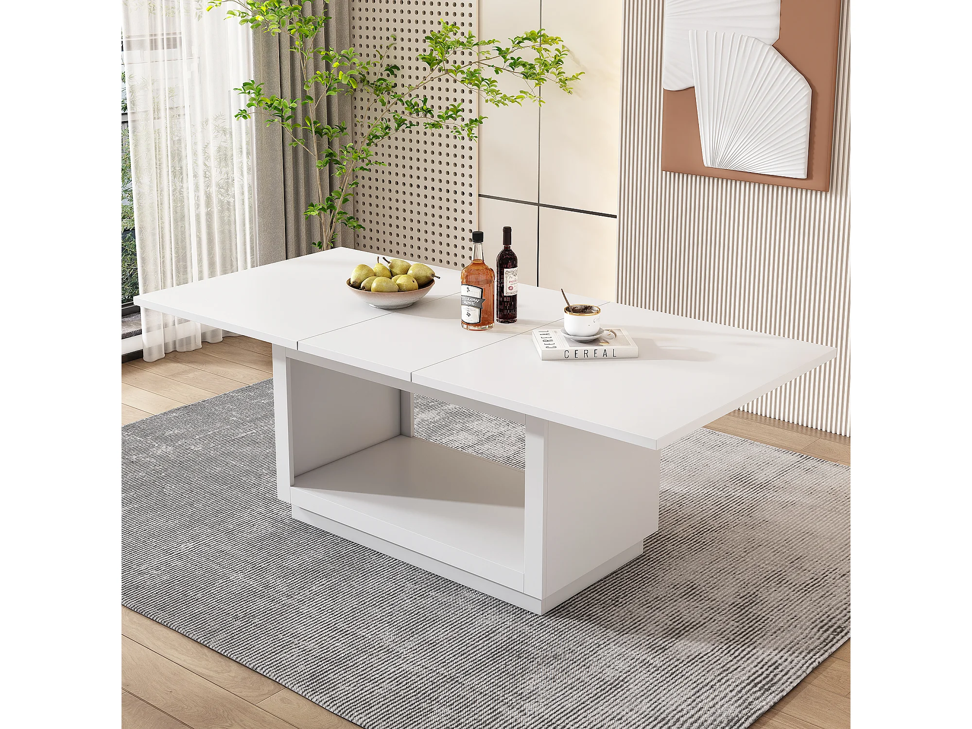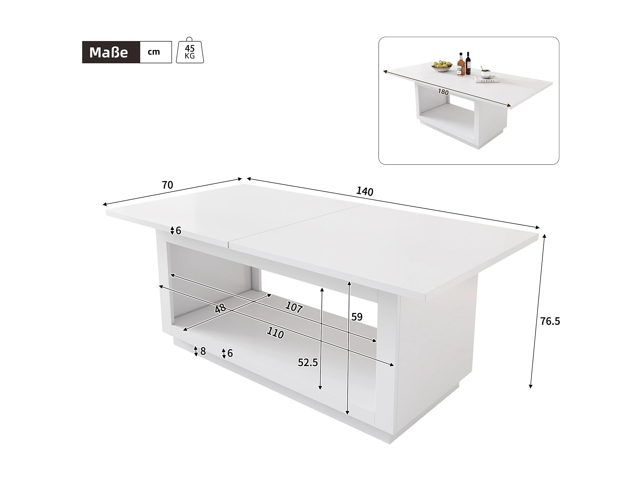 Table à manger extensible 140-180x70x76.5cm - avec rangement en dessous - style moderne - Blanc
