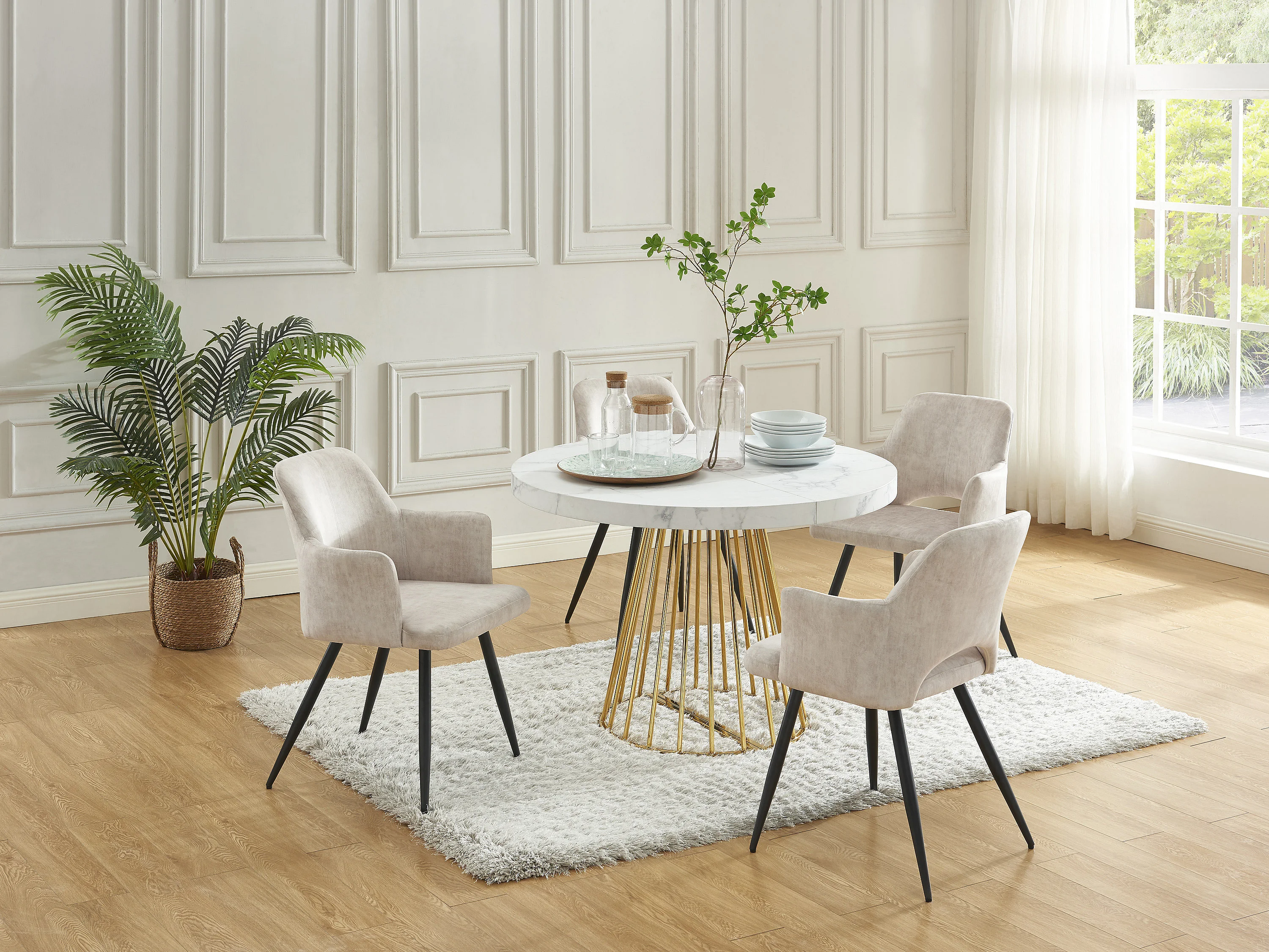 Table à manger extensible 2 à 12 personnes en MDF et acier - Effet marbre blanc et doré - FIRELA
