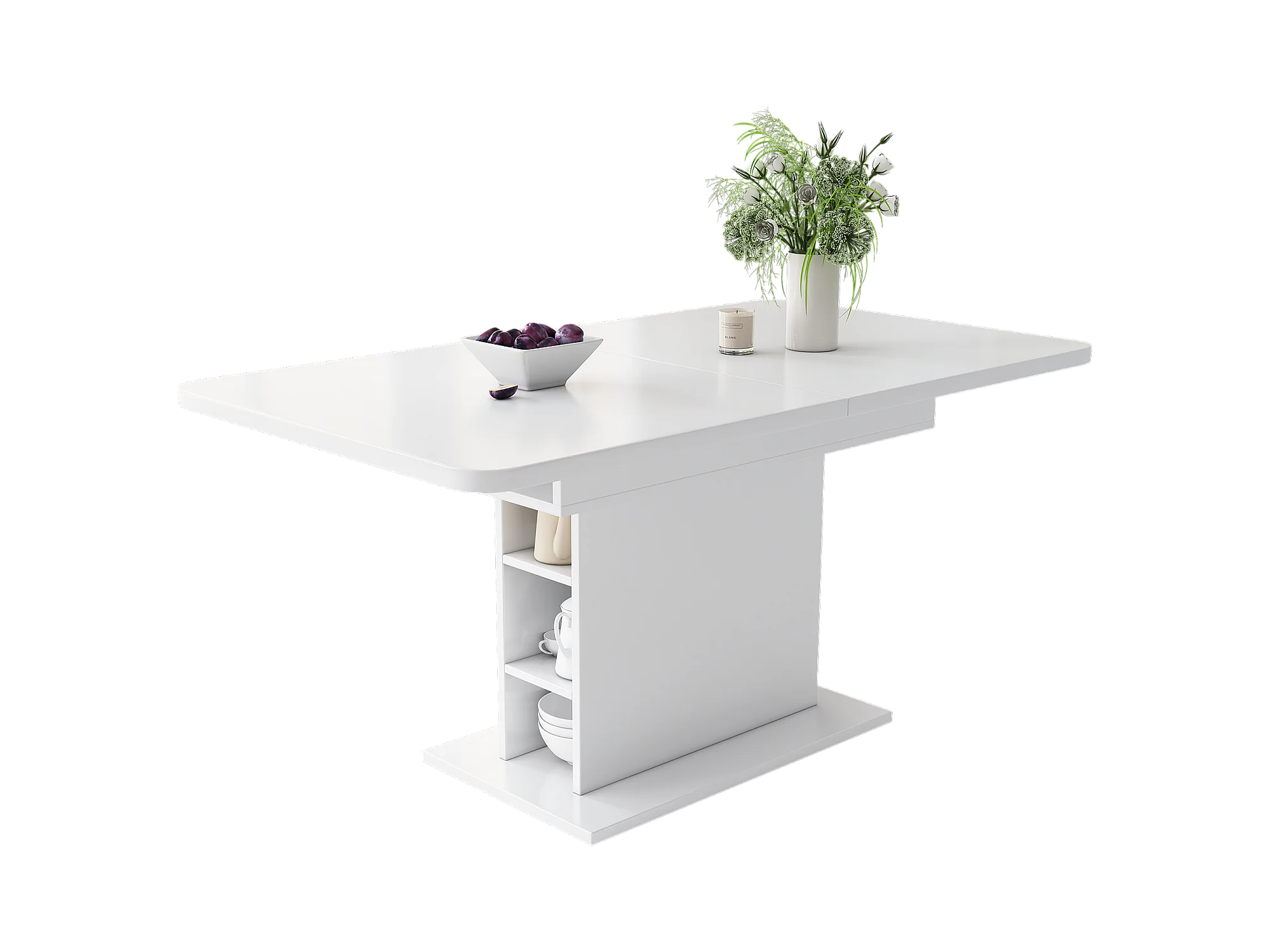 Table à manger extensible 4 à 6 couverts avec rangement - L130xW70xH75cm - Panneau de particules - Blanc