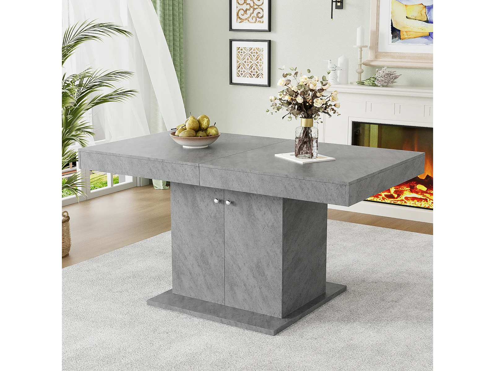 Table à manger extensible - 4 à 8 personnes - avec espace de rangement - panneaux de particules gris - 140/180x80x76cm