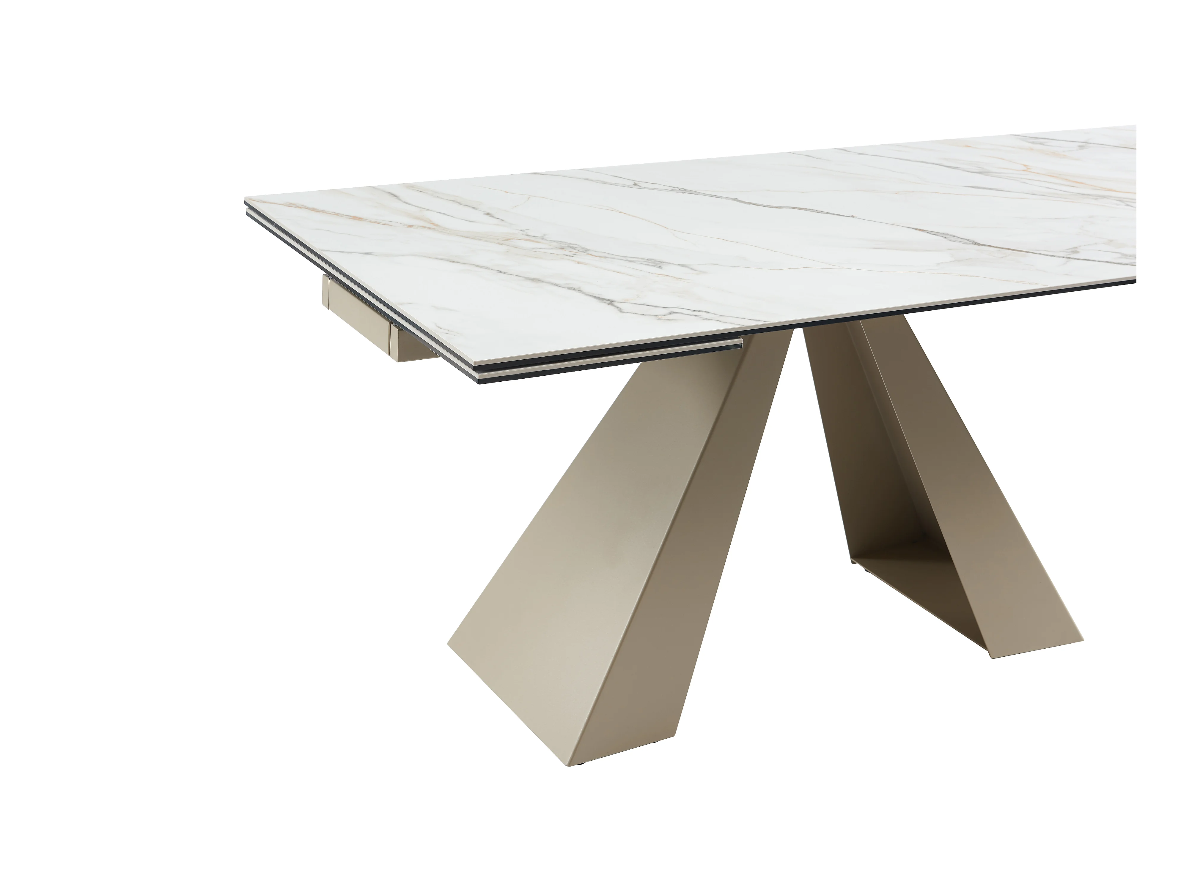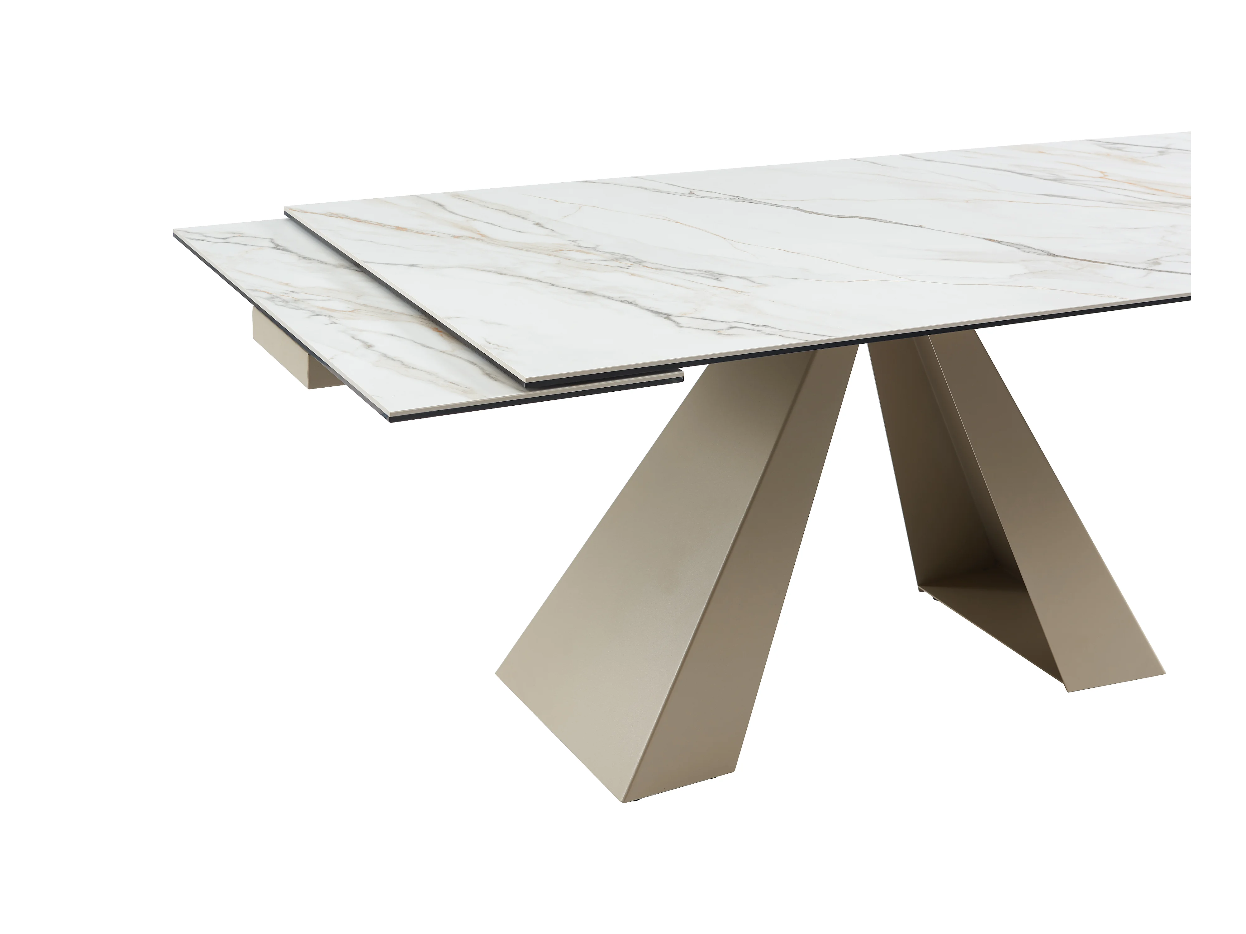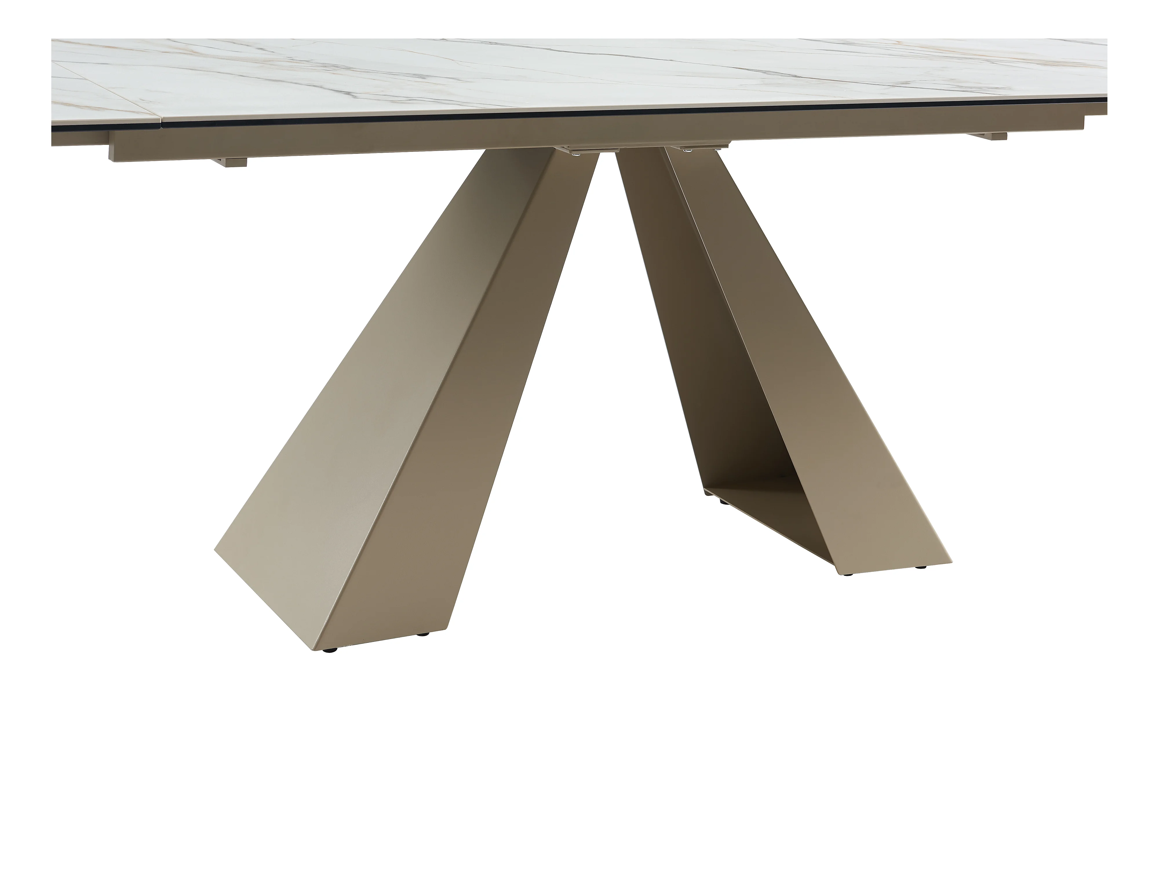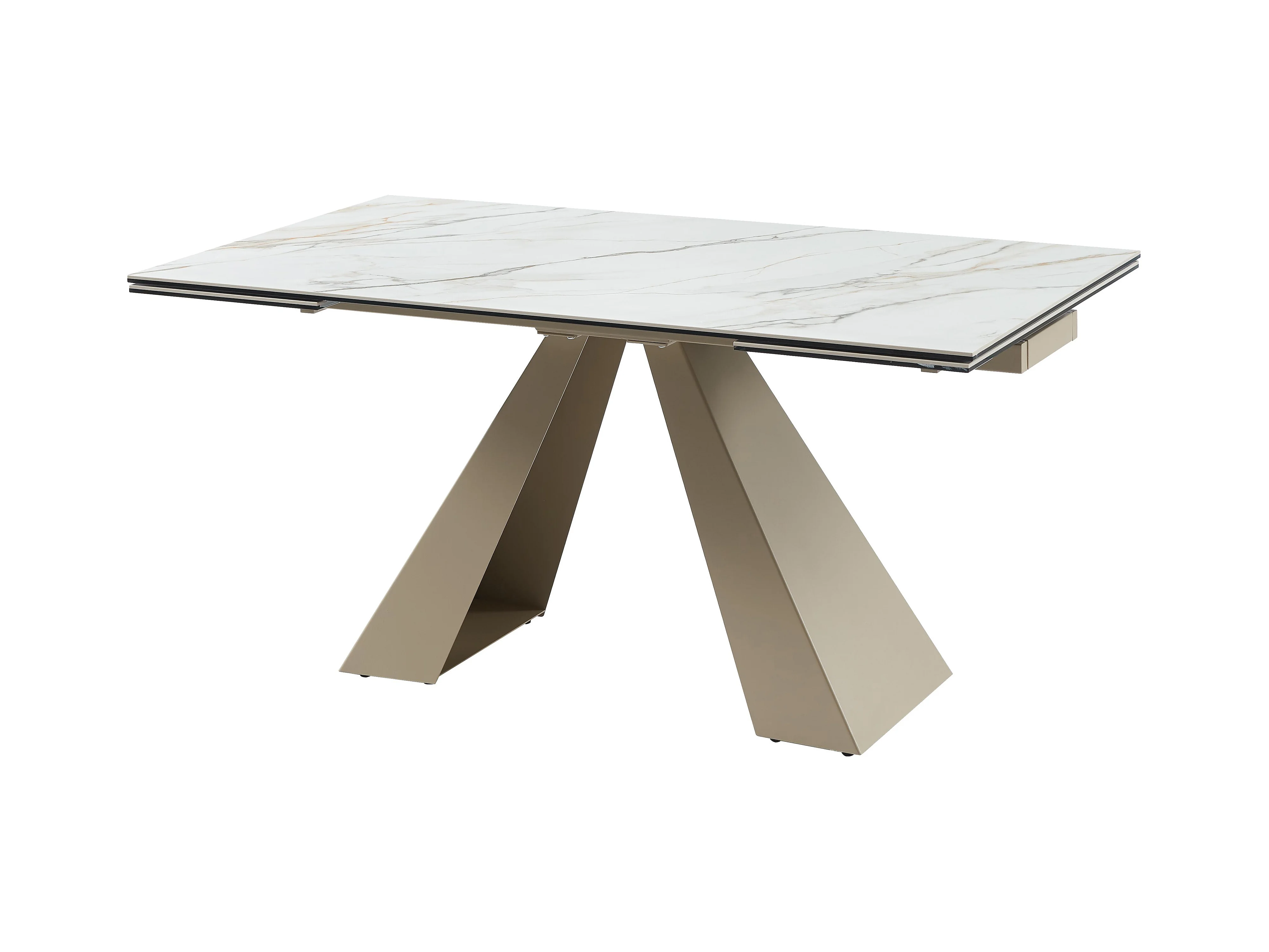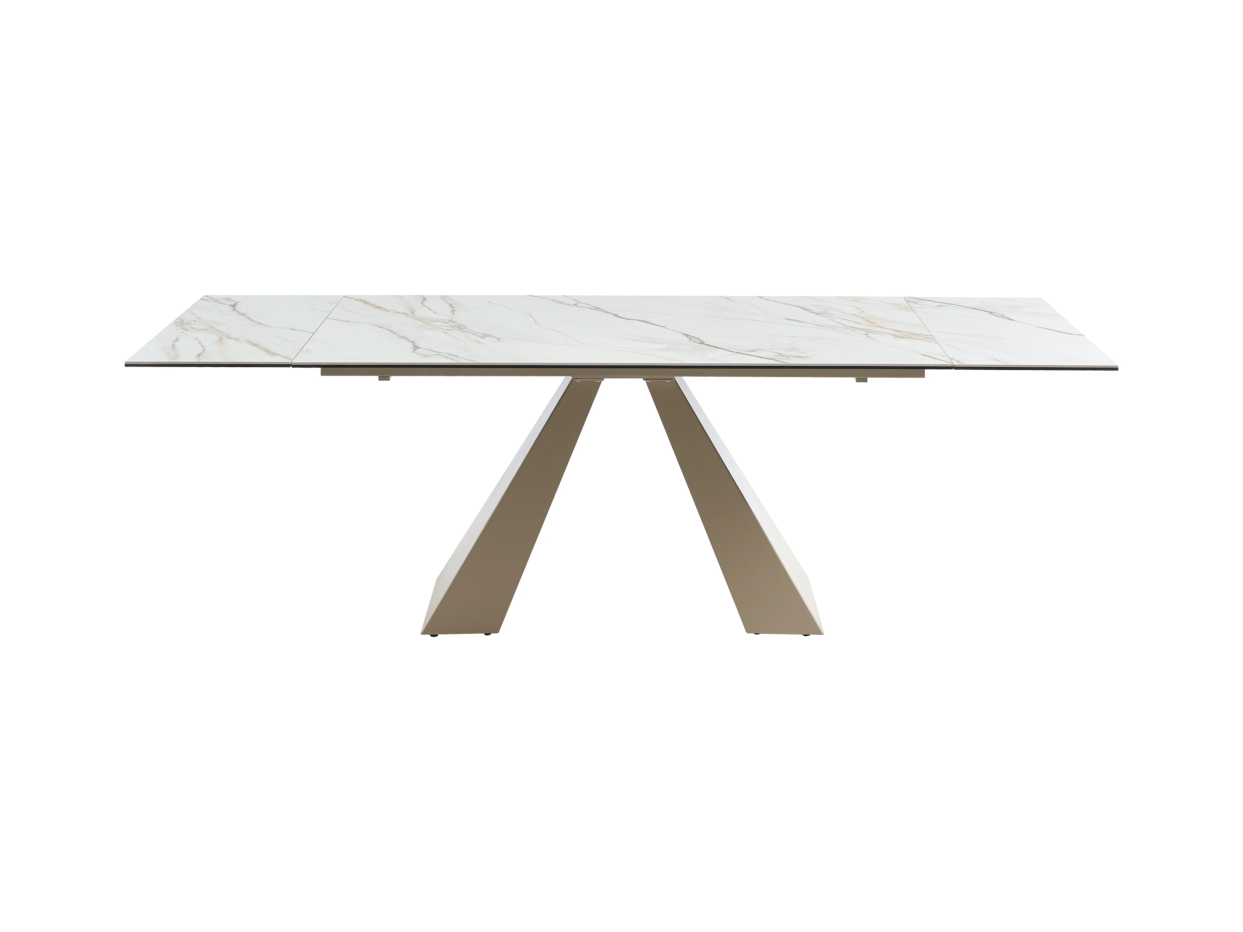 Table à manger extensible 6 à 10 personnes en verre trempé, céramique et métal - Effet marbre blanc et beige - LOZIPA de Maison Céphy