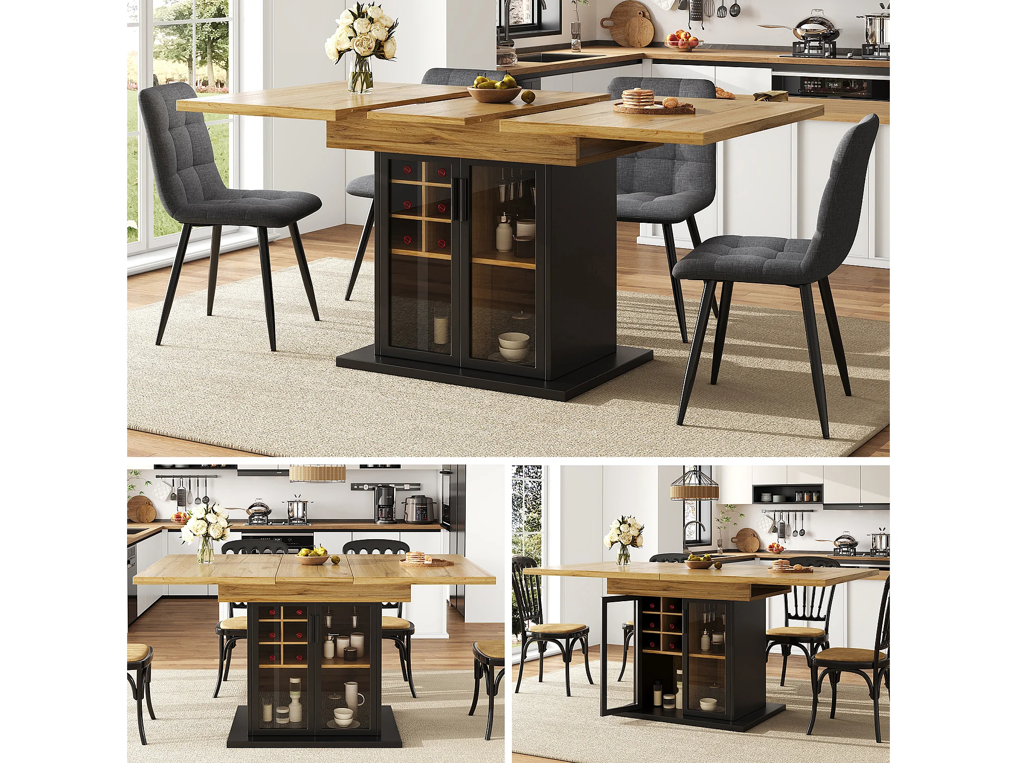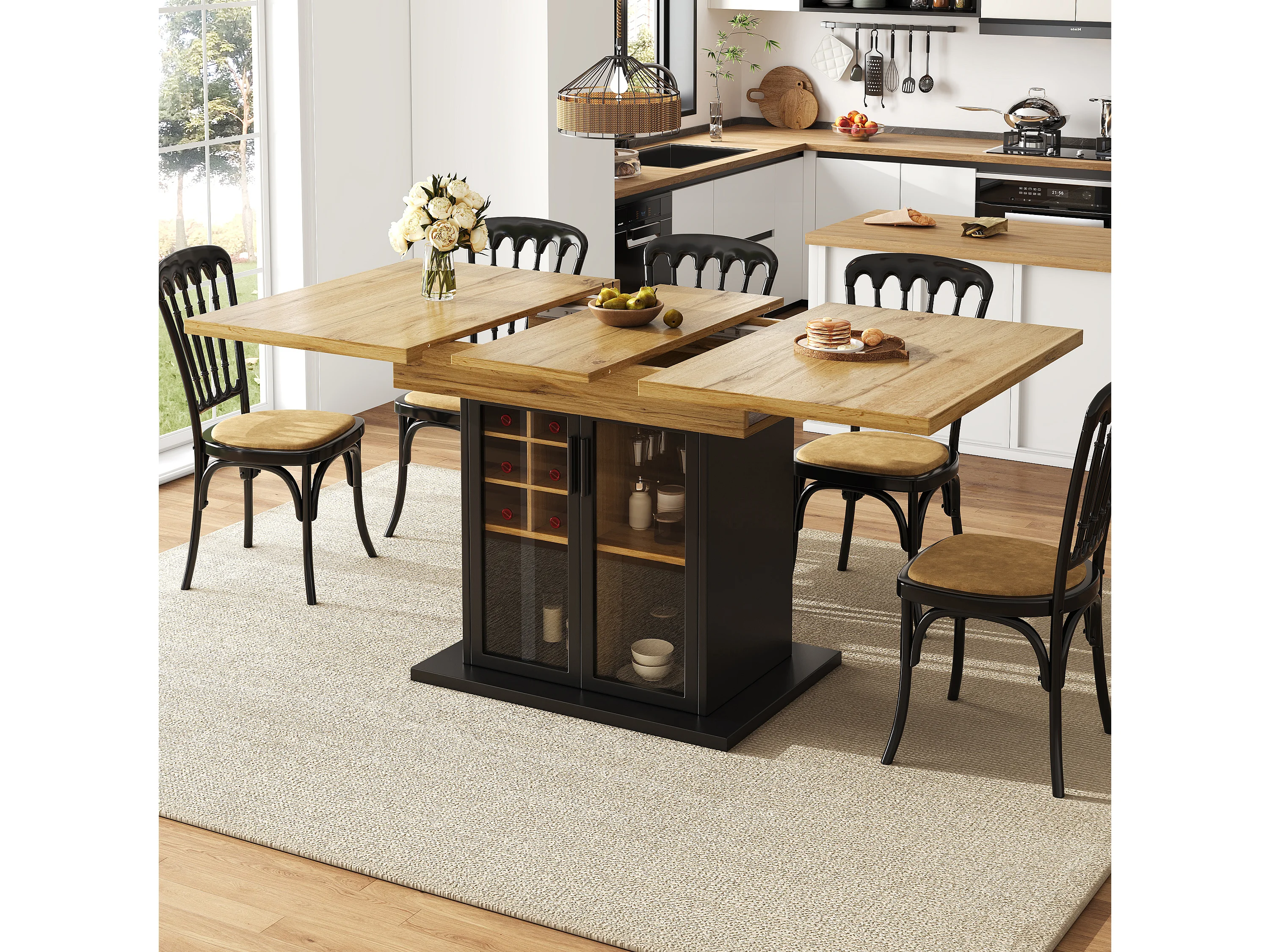 Table à manger extensible 6 places 110/140 x 80 x 76 cm - avec casier à vin + porte en verre - MDF - noir