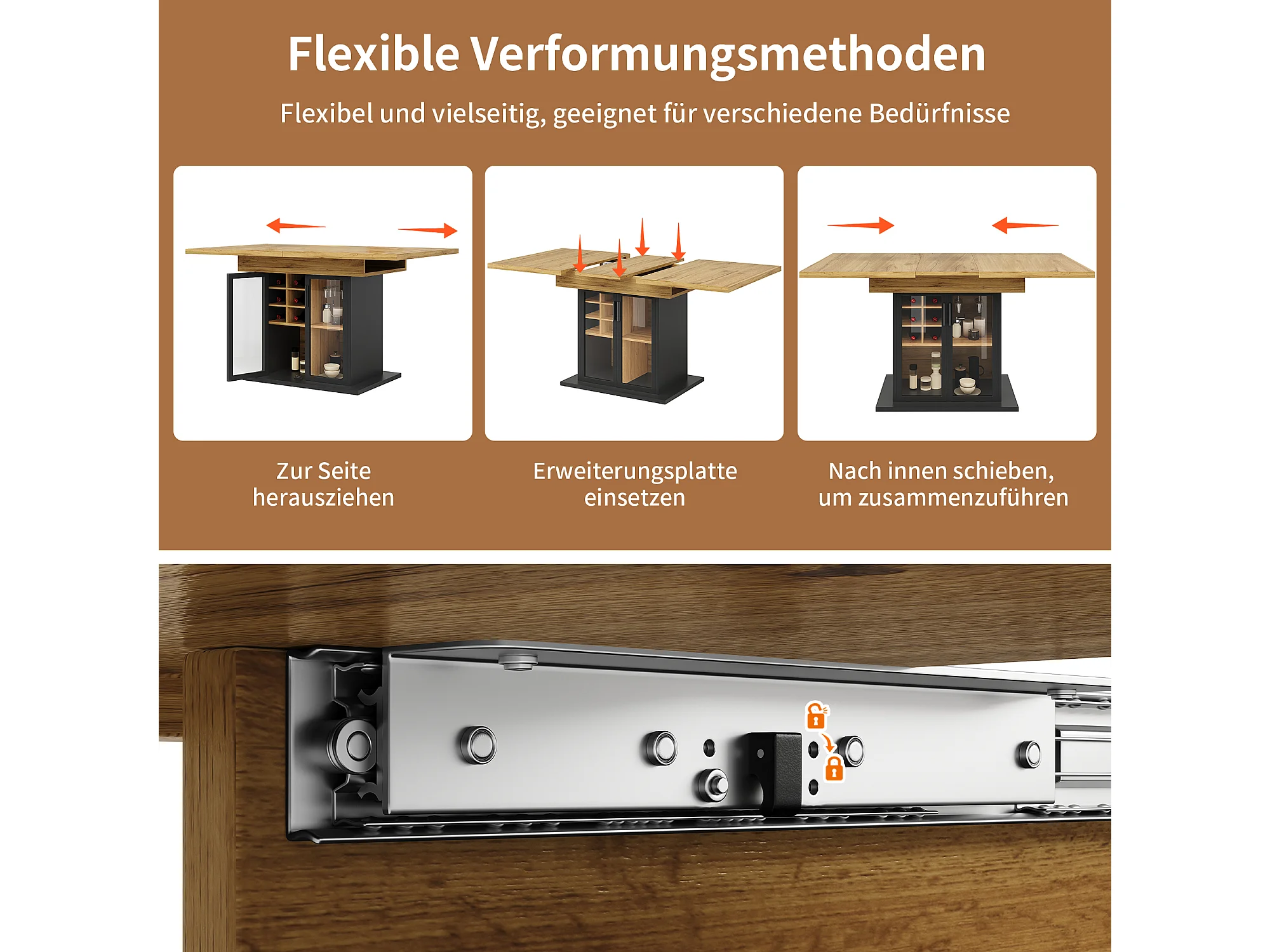 Table à manger extensible 4 à 6 couverts avec 1 porte - 110/140 x 80 x 76 cm - Bois MDF - pour cuisine et salon - Naturel + Noir