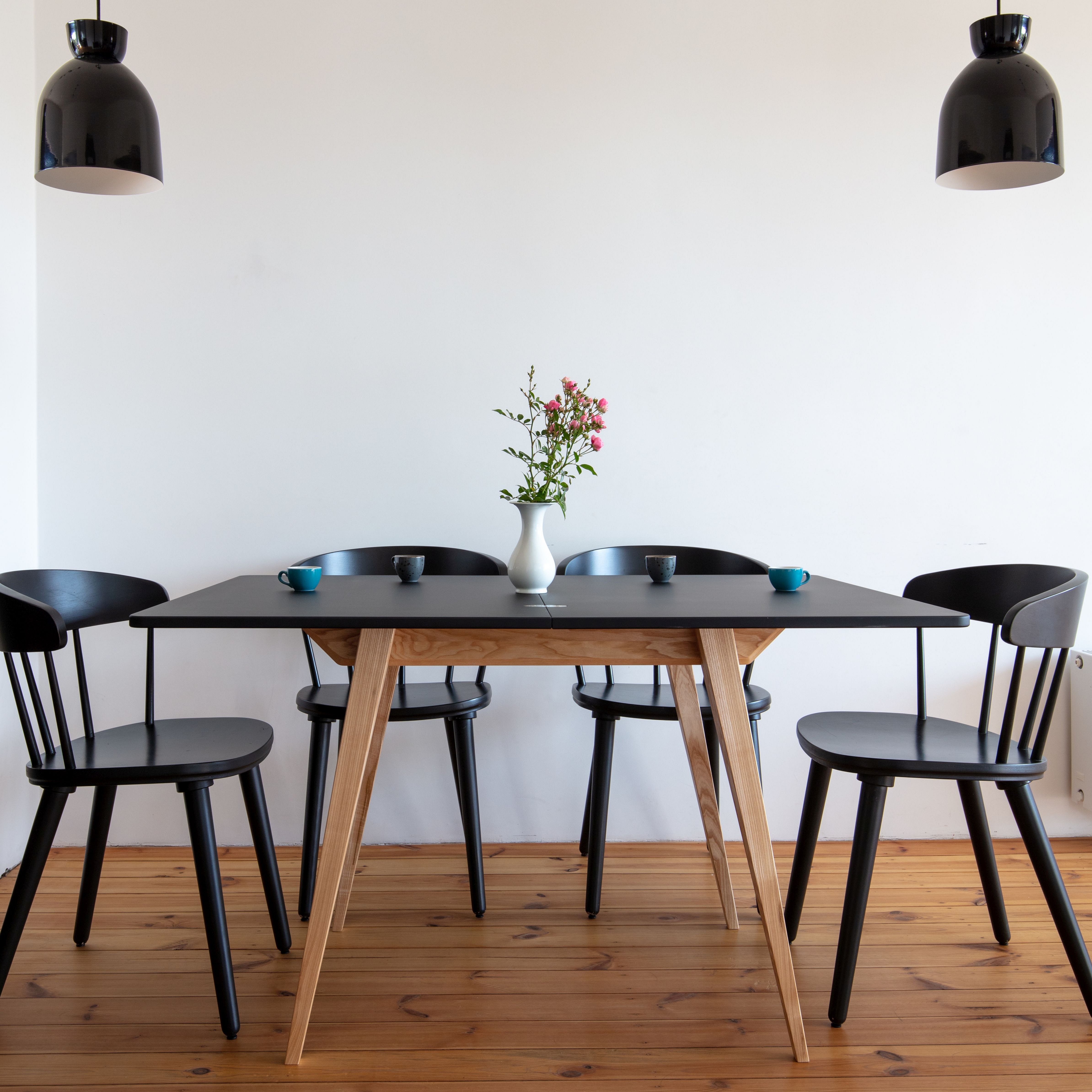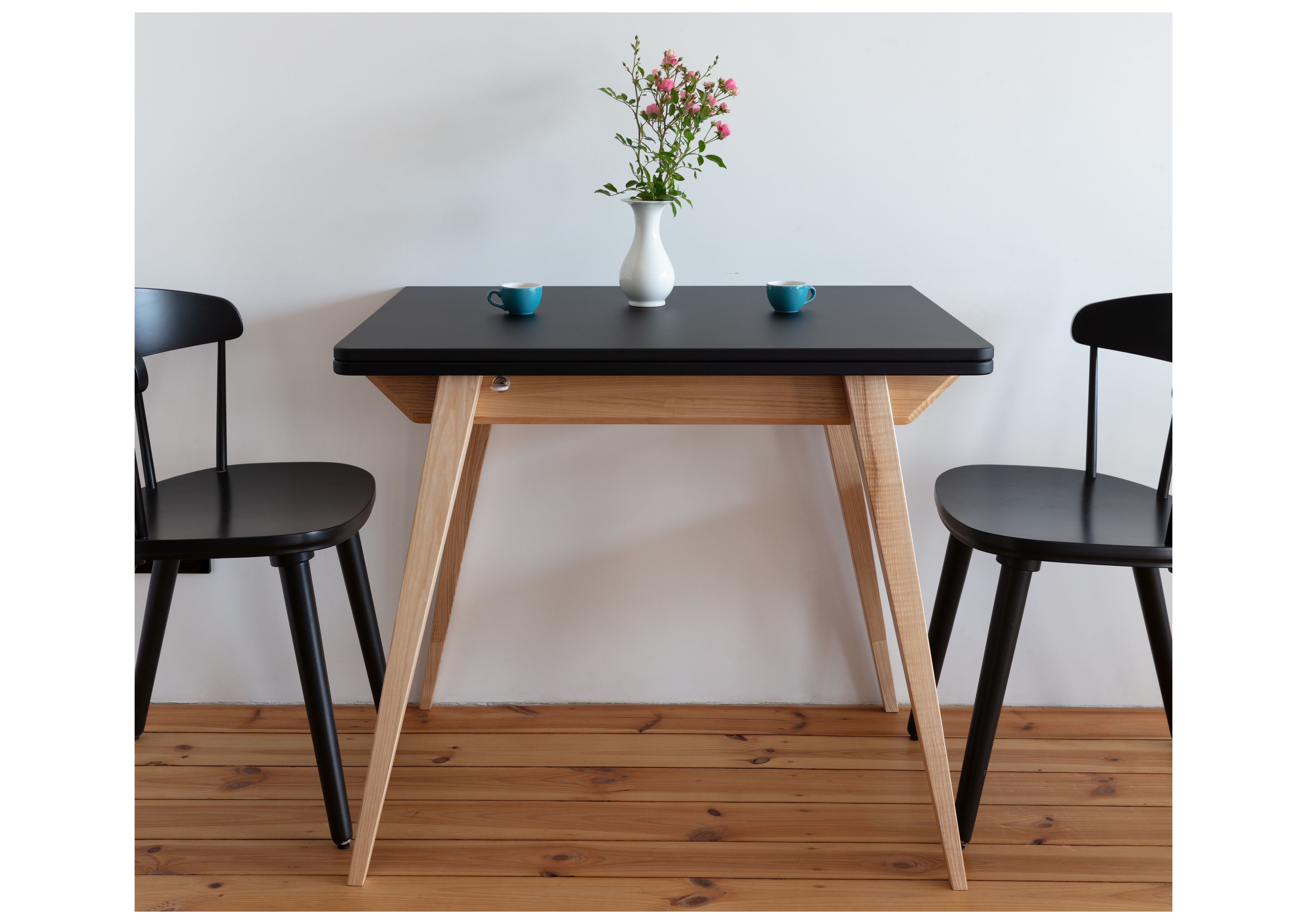 Table à manger escamotable - en MDF - avec rangements - Noir & Naturel