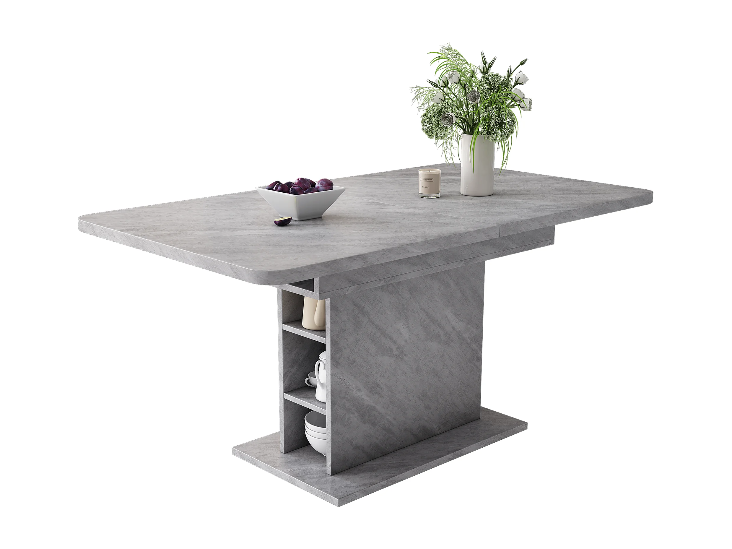 Table à manger extensible, avec rangement, design moderne, bois aggloméré, béton, (L93xP59.5xH9 cm)