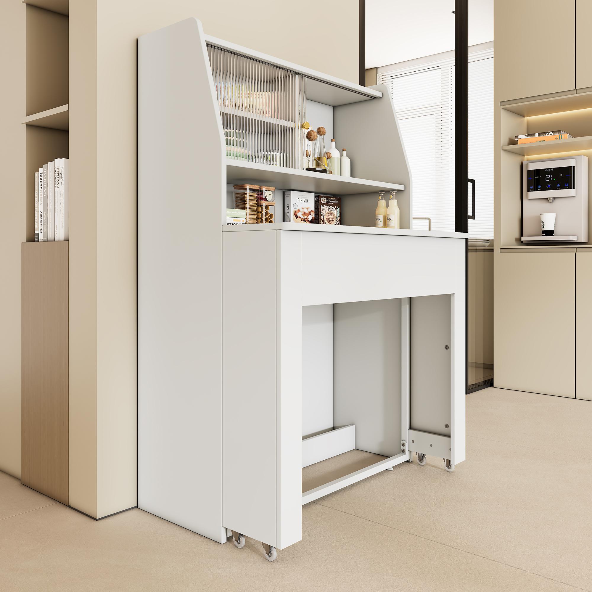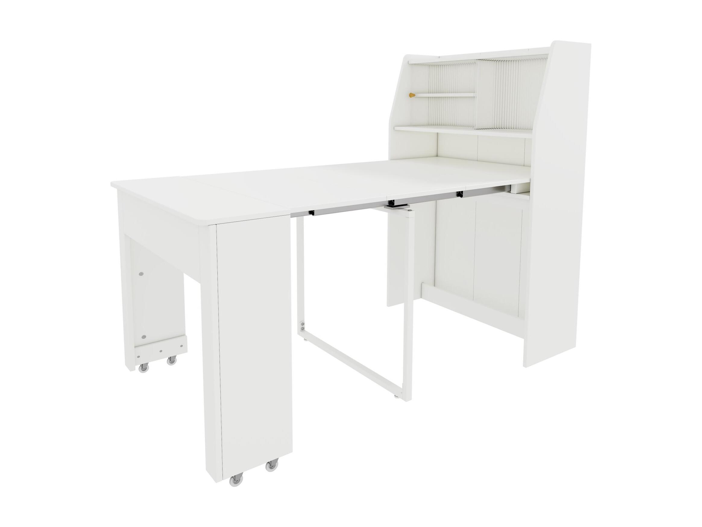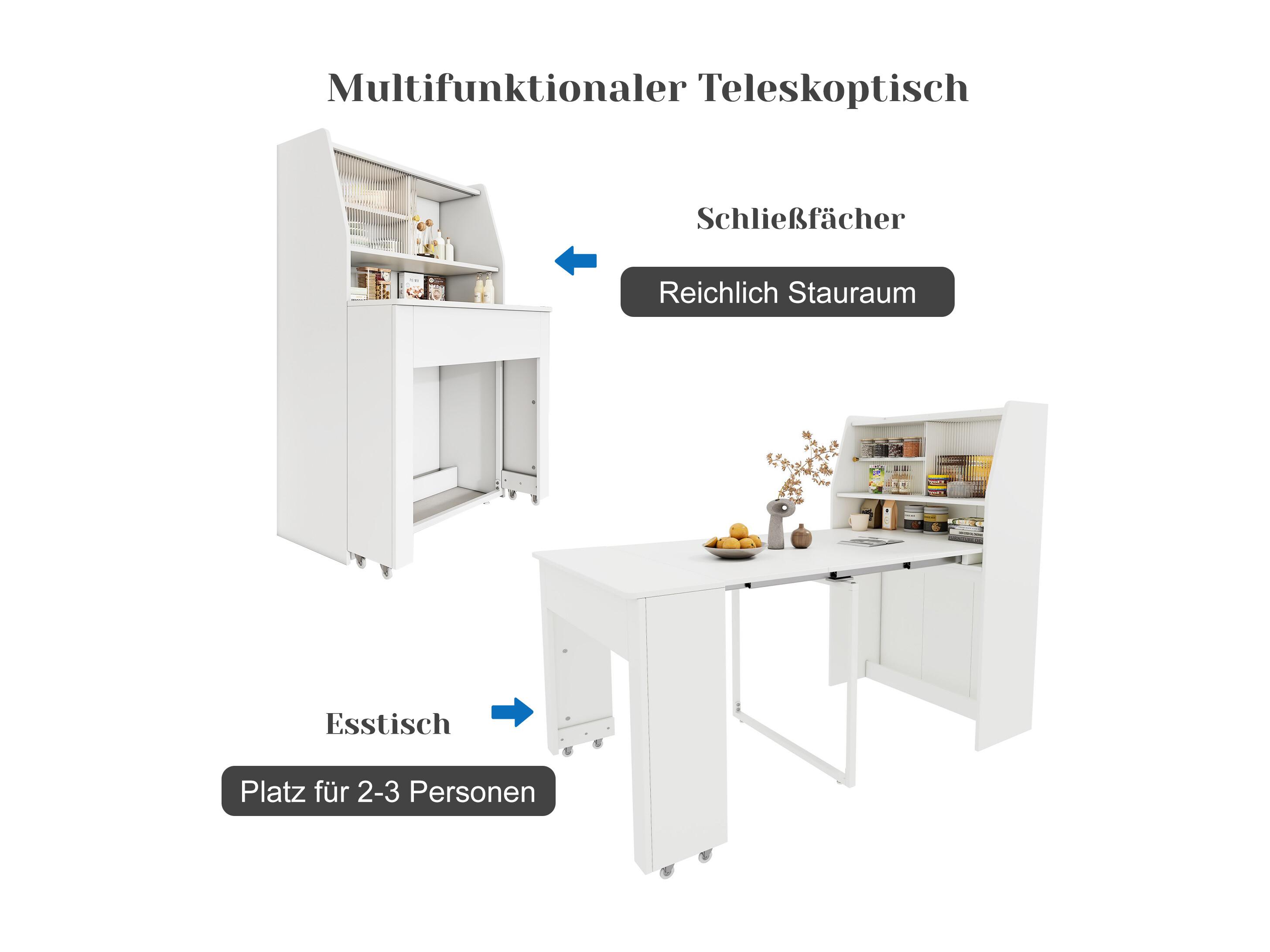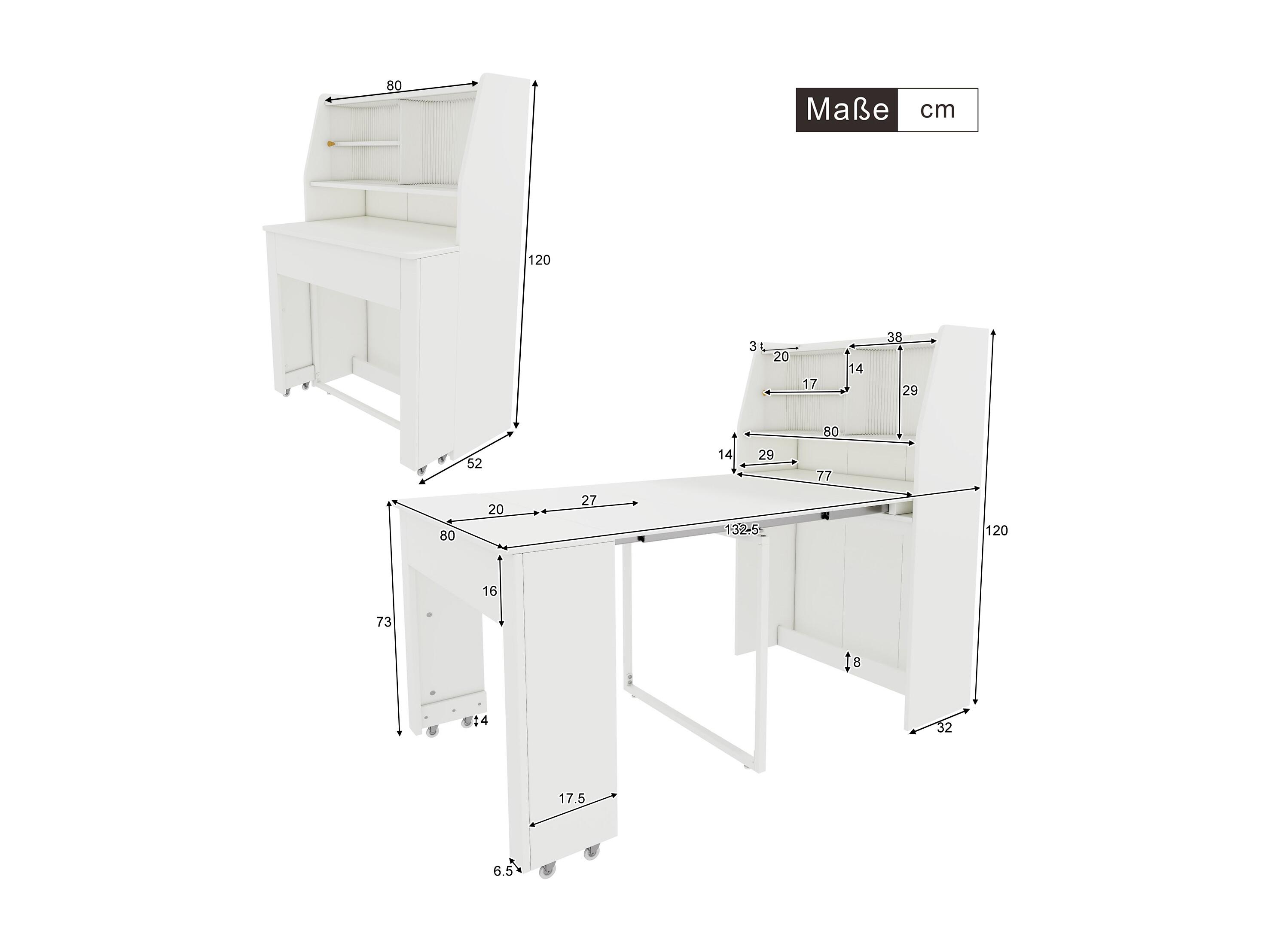Table à manger extensible avec rangement, panneau de particules, blanc (52/132.5x80x76 cm)