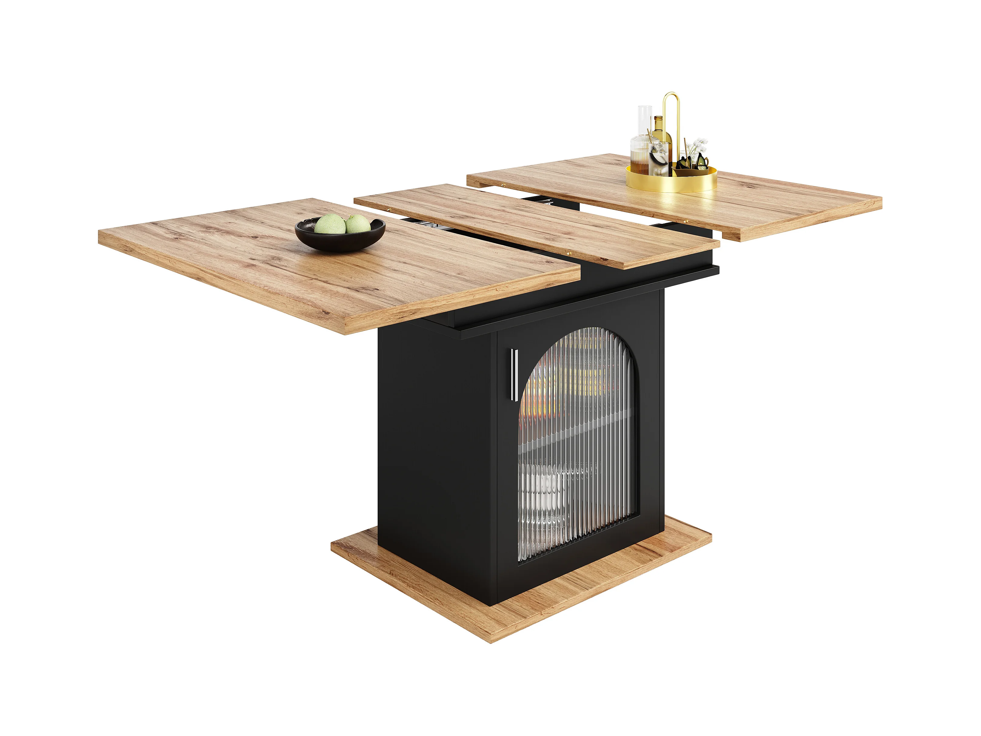 Table à manger extensible noir - Table à manger avec 2 portes - plateau en bois - rangement ouvert