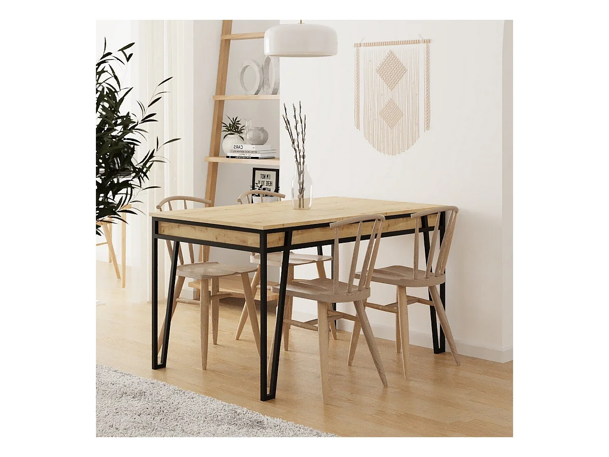 Table à manger extensible 120/160x80 cm, pour 4 à 6 personnes, pieds en métal noir, design minimaliste (dimensions : 120/160 x 80 x 75 cm)