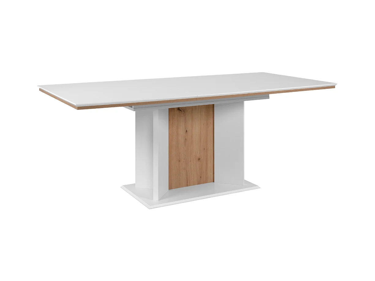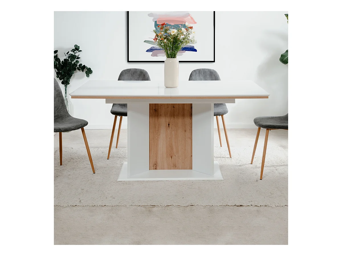Table statuaire en bois, finition blanche, piètement blanc, à rallonge 140x90-220x90 - LIPARI