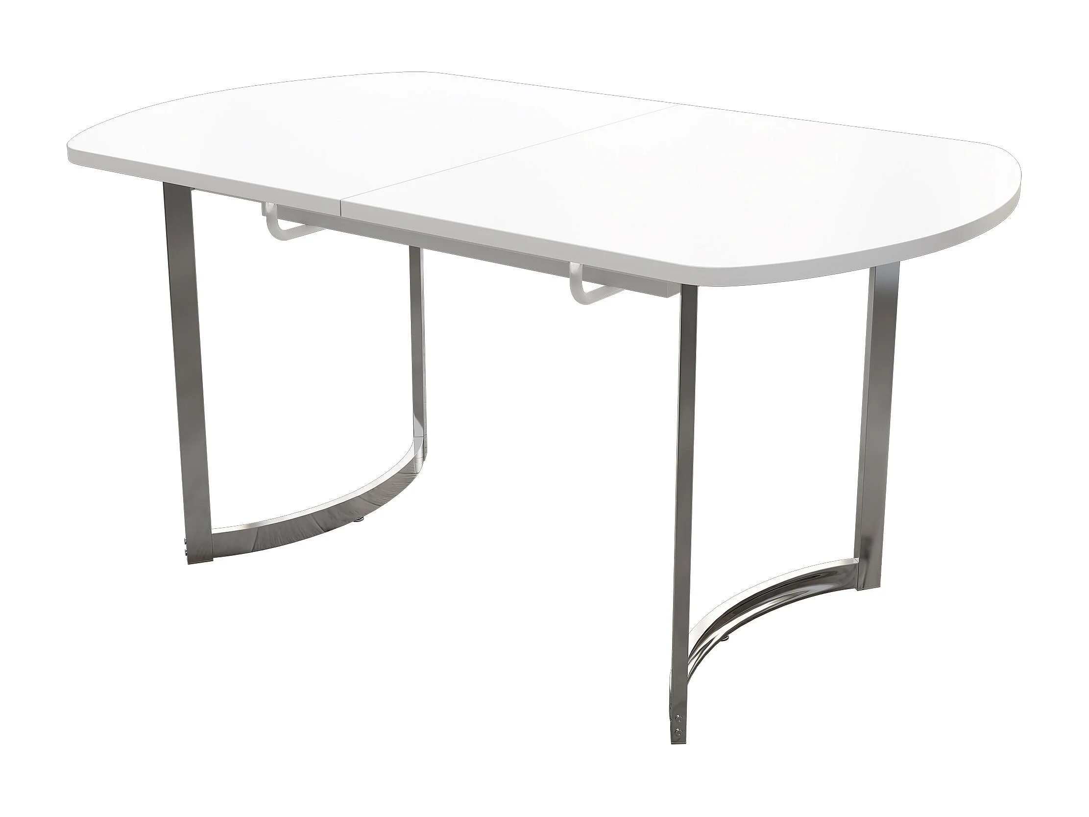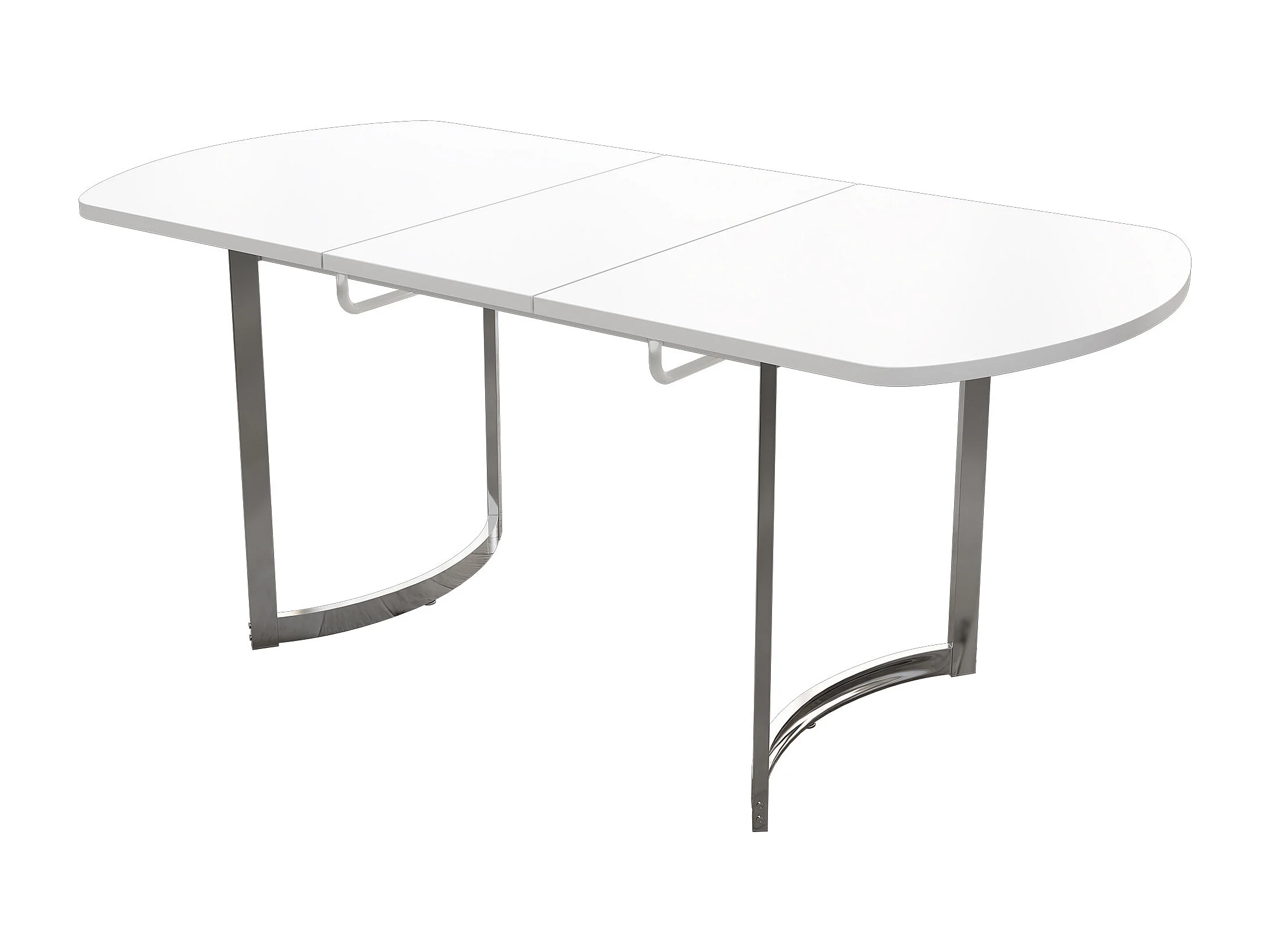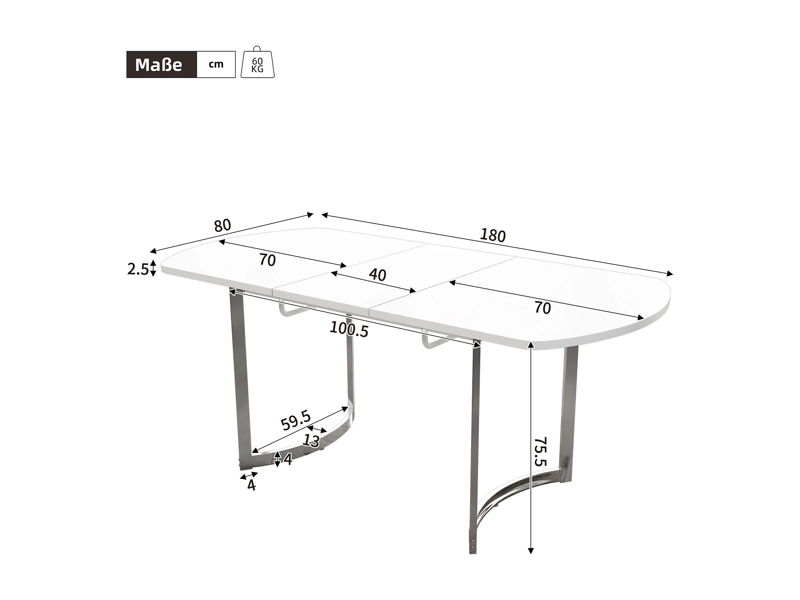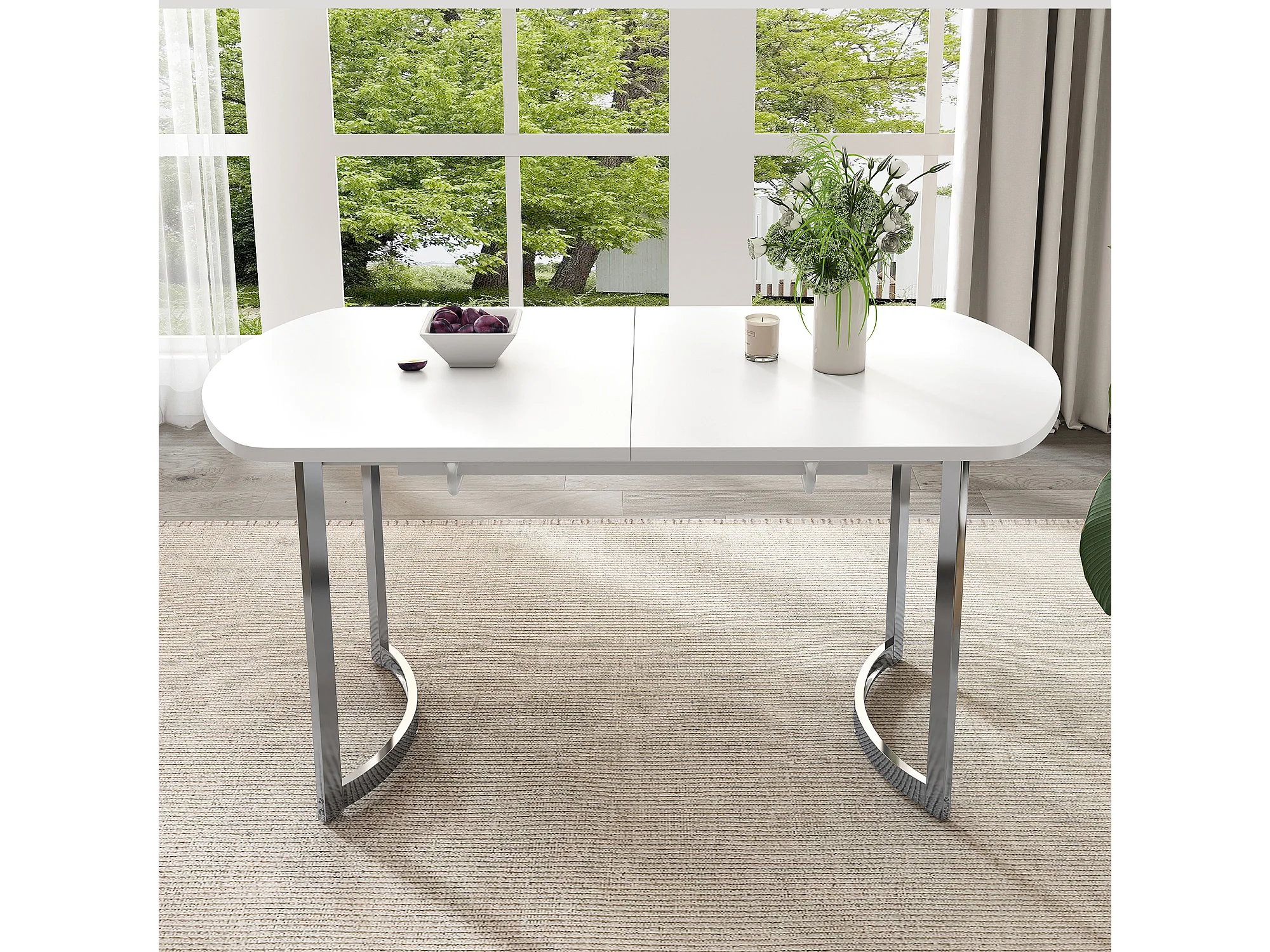 Table à manger extensible, design moderne, MDF, blanc, pieds métalliques argentés (L140-180 x P80 x H75 cm)