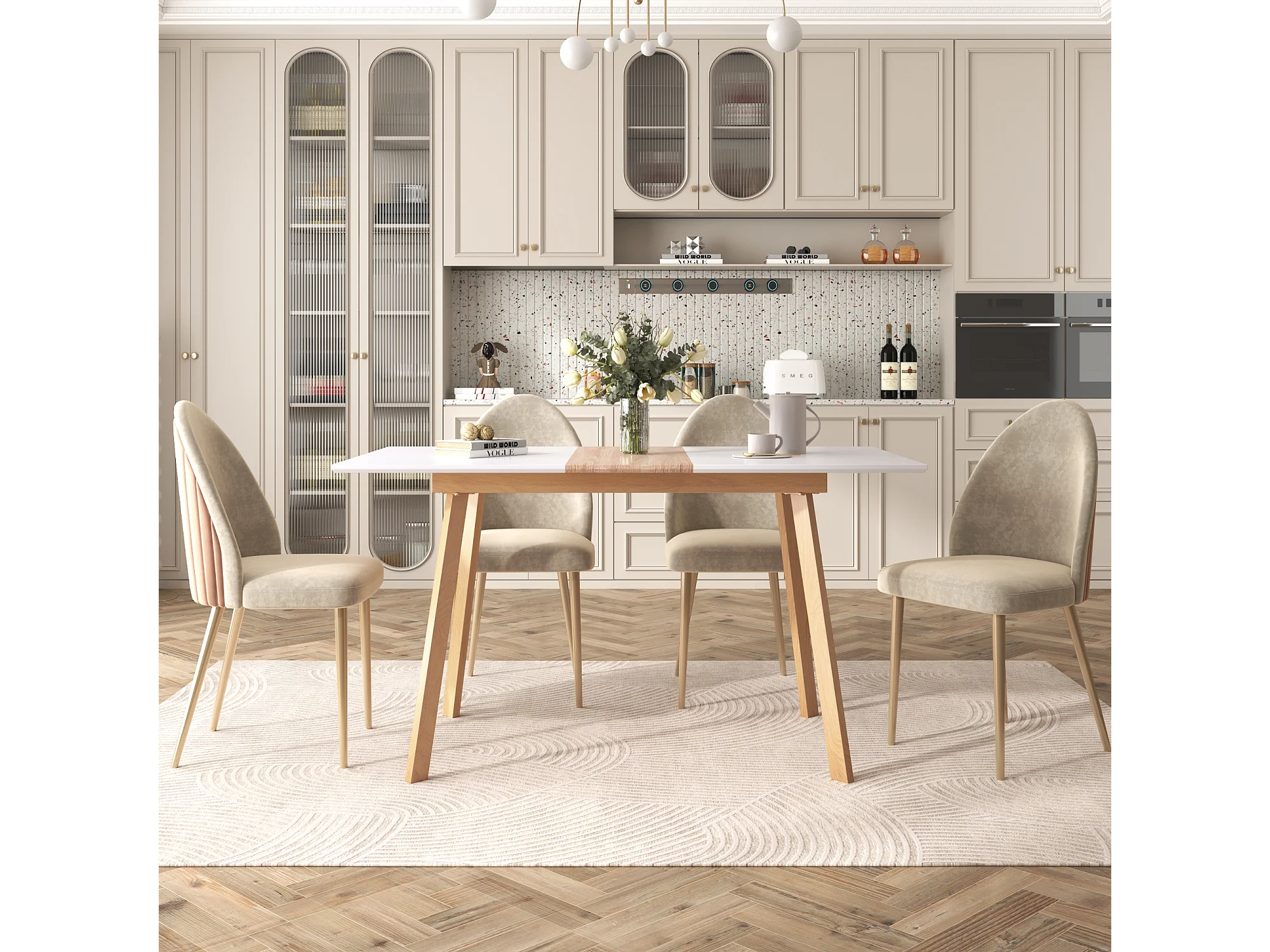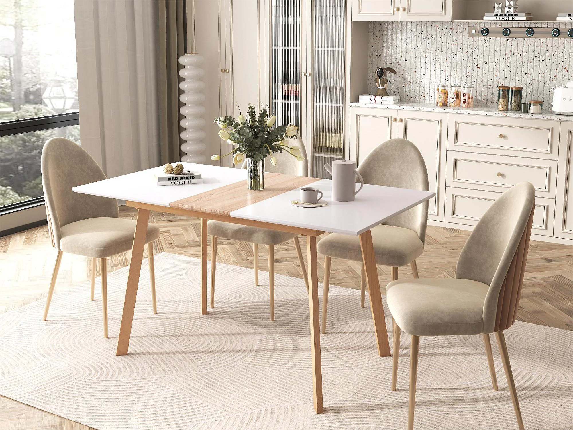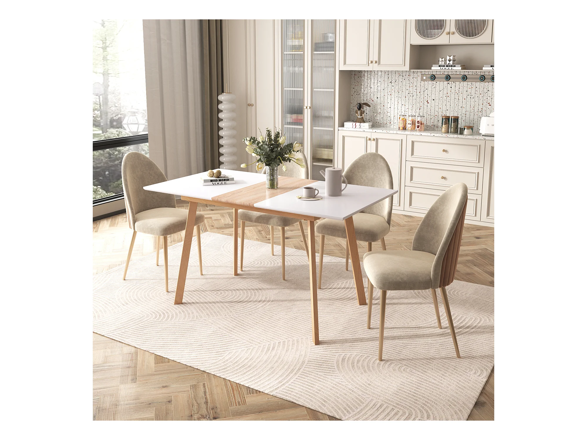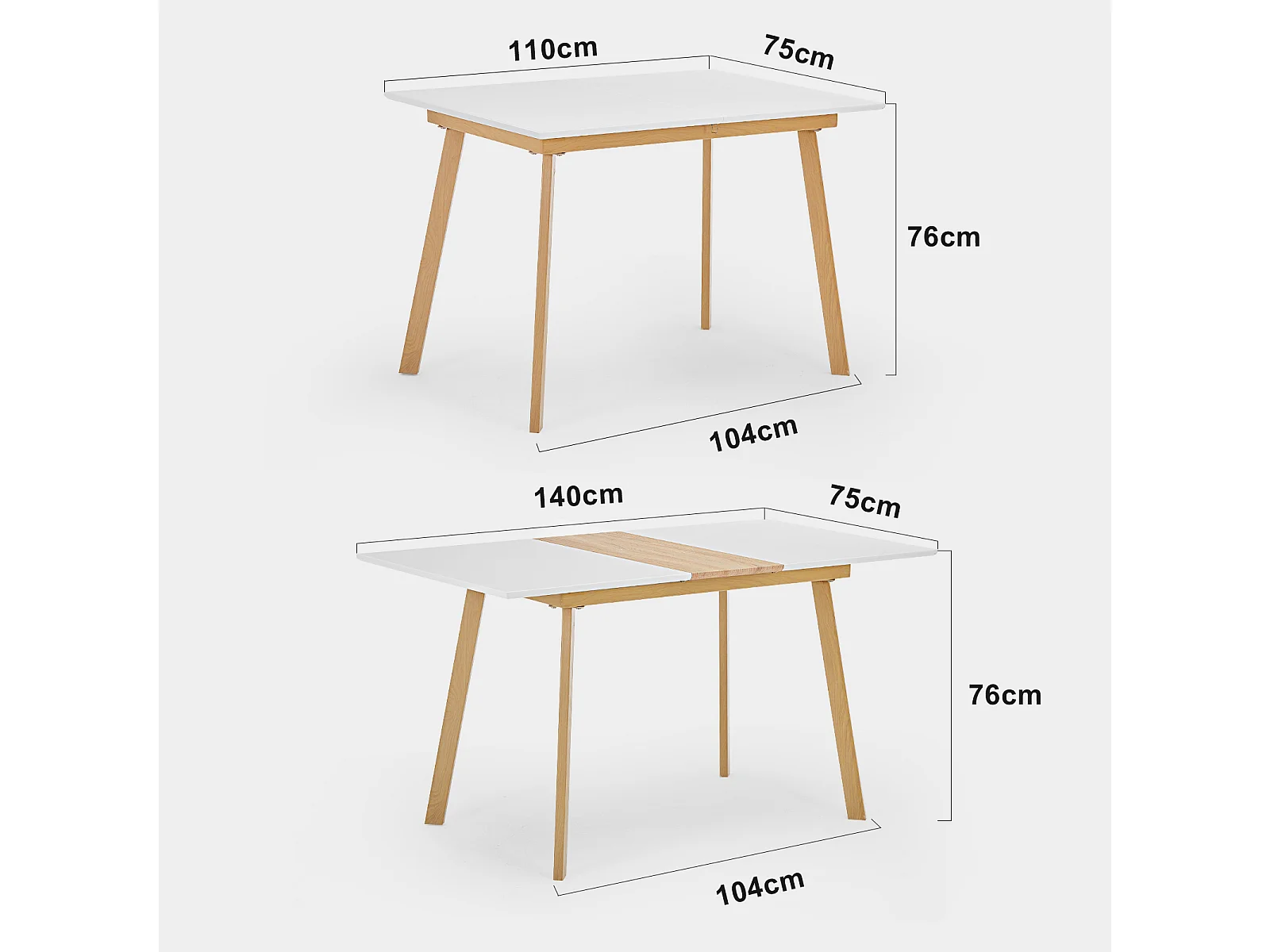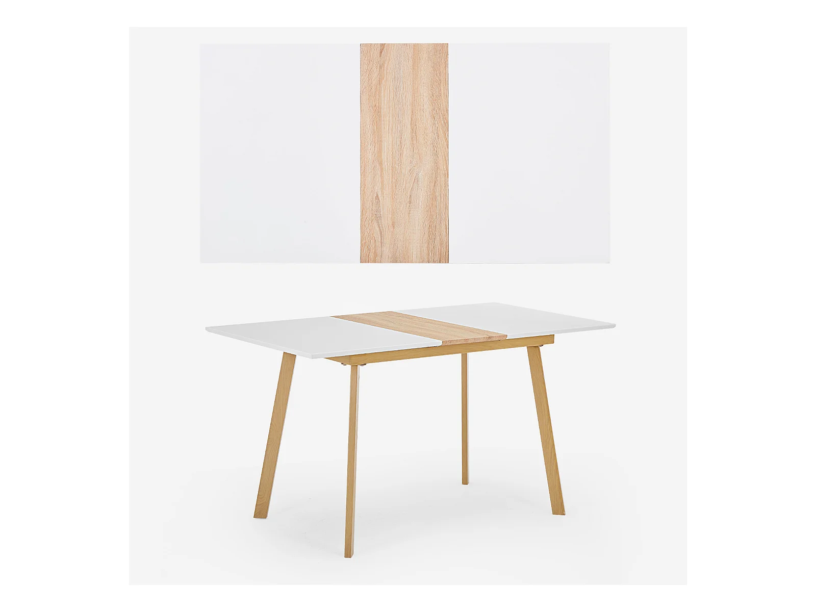 Table à manger extensible en bois massif - 4 à 6 couverts - naturel et blanc