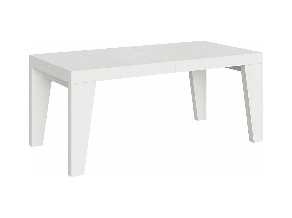 Table à manger extensible bois Naxo-Couleur Blanc-4 pieds-2 rallonges épaisses-160 à 264cm