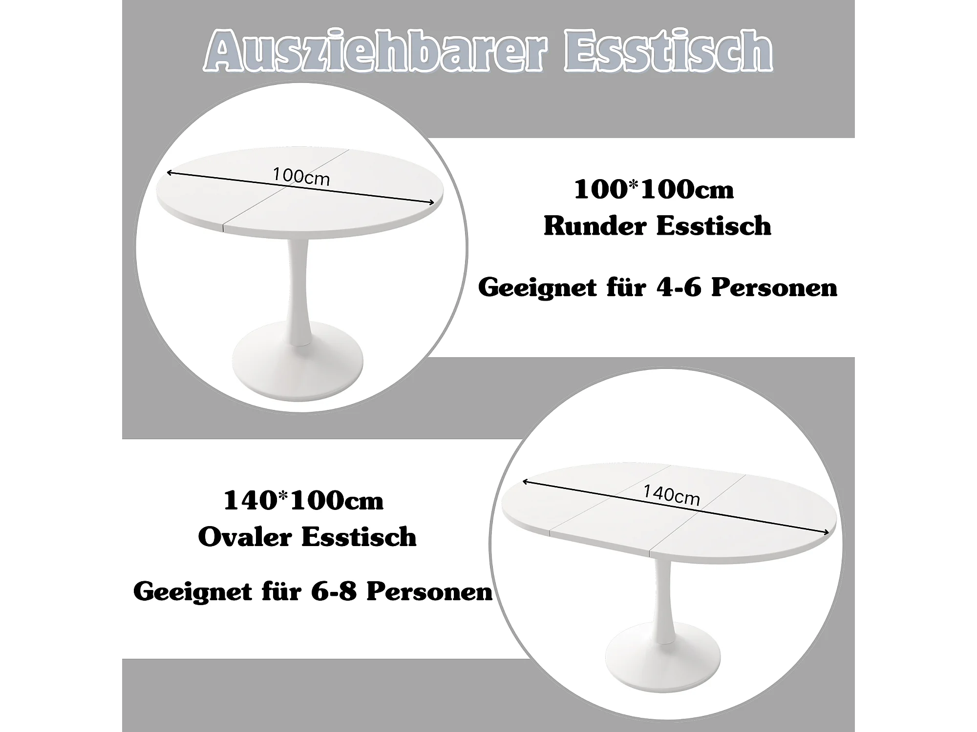 Table à manger extensible ovale 4 à 6 couverts - L 100/140 x l 100 x H 75 cm - Bois MDF - Blanc